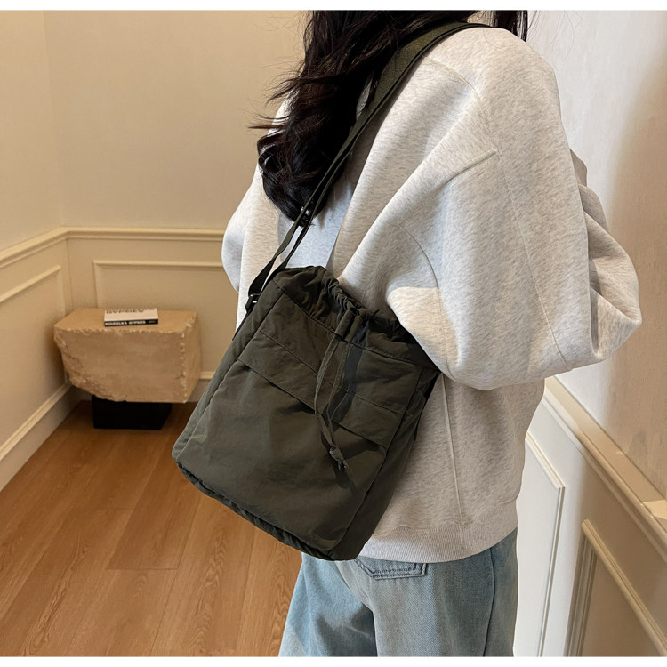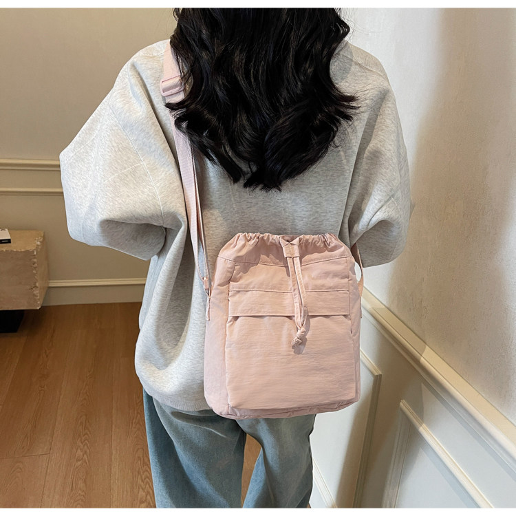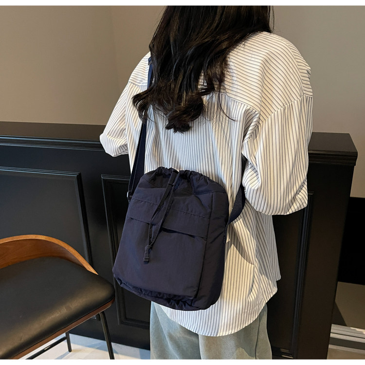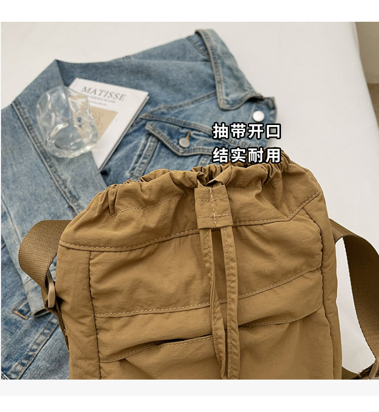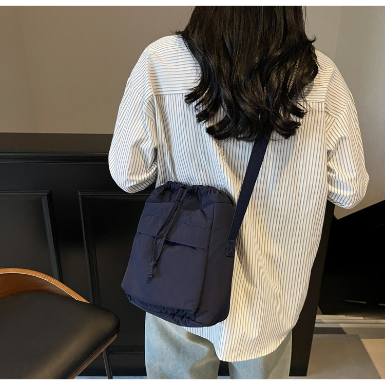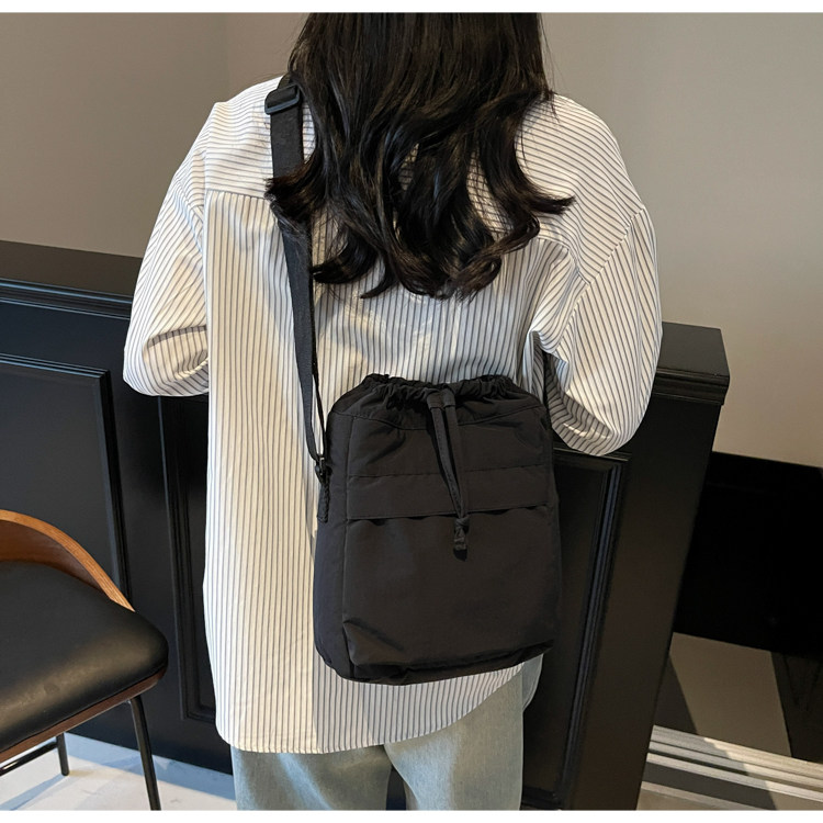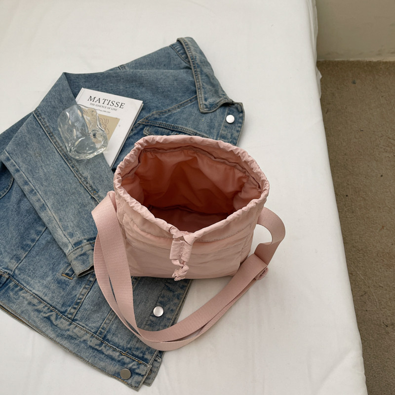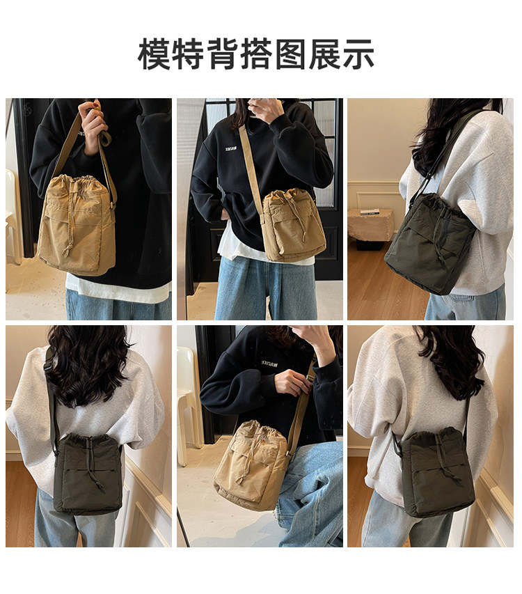 韓國chic小布包女斜背抽帶水桶包 日韓系文藝休閒百搭斜背小包