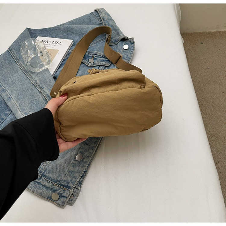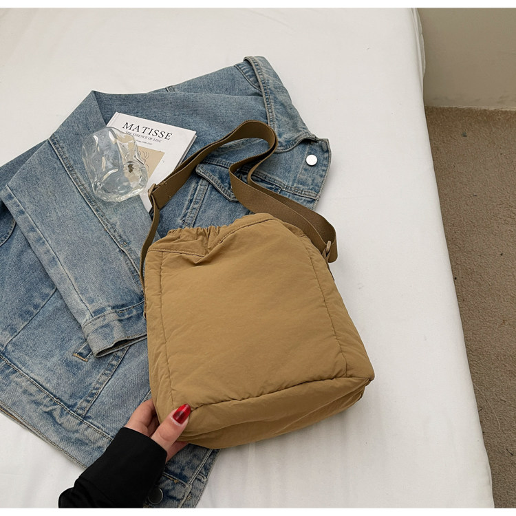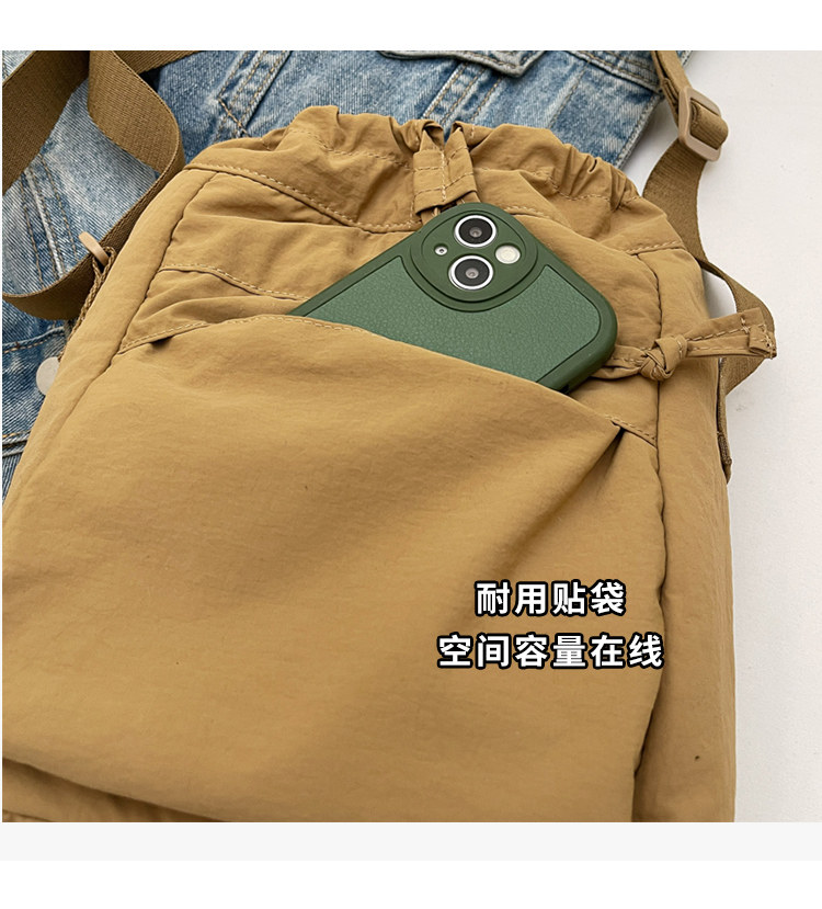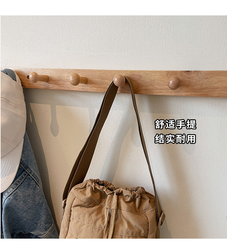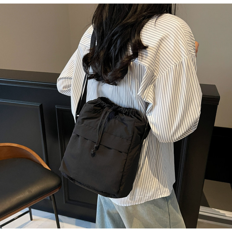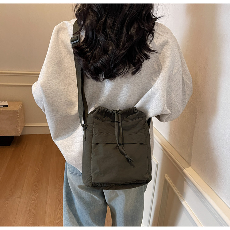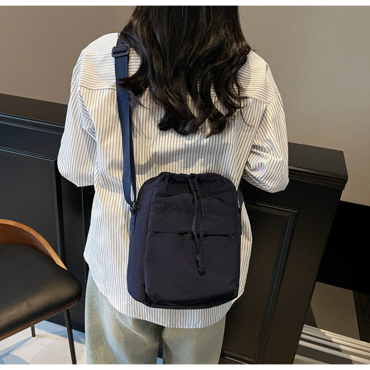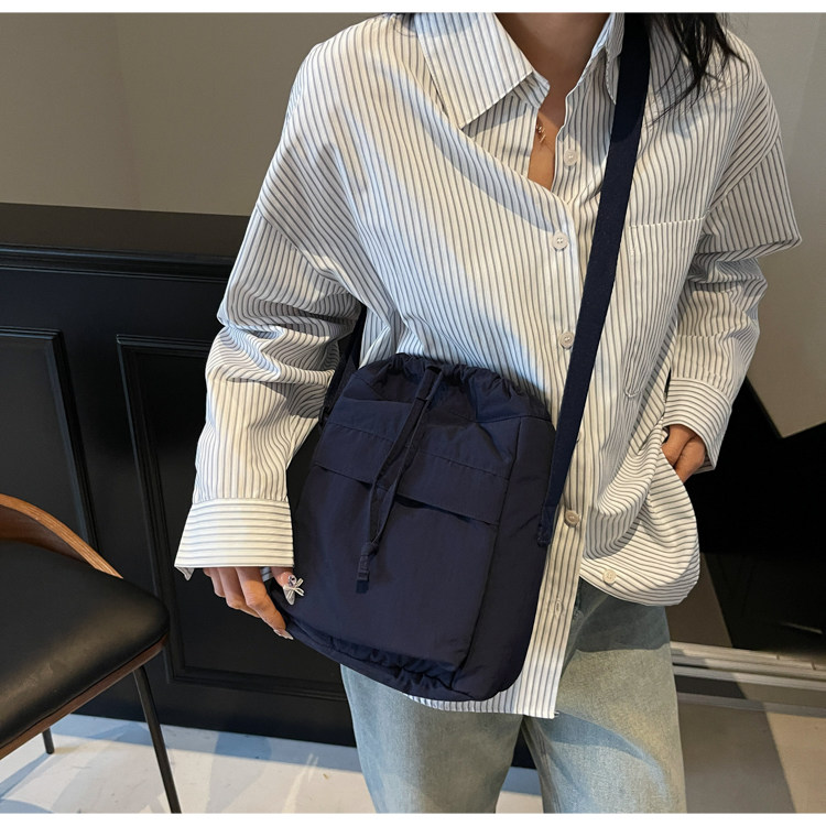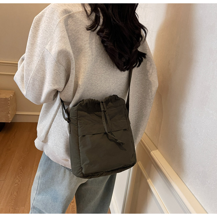韓國chic小布包女斜背抽帶水桶包 日韓系文藝休閒百搭斜背小包