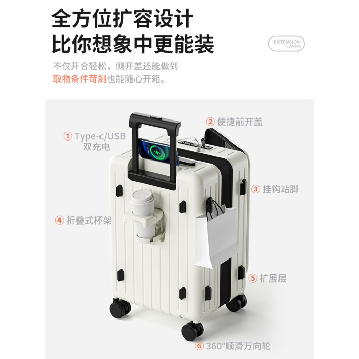 行李箱2026新款側開蓋旅行箱20寸兒童結實耐用拉桿箱高顔值密碼女