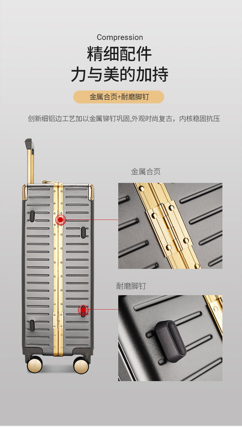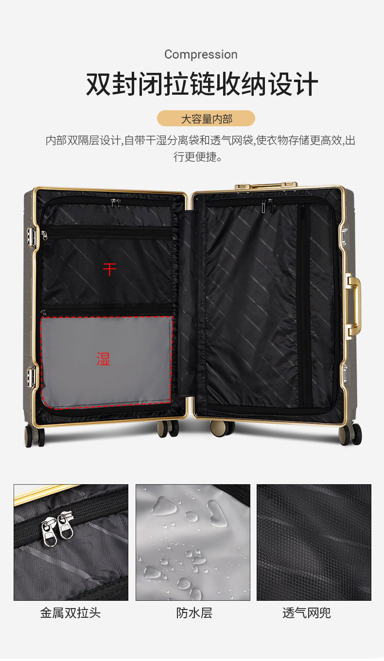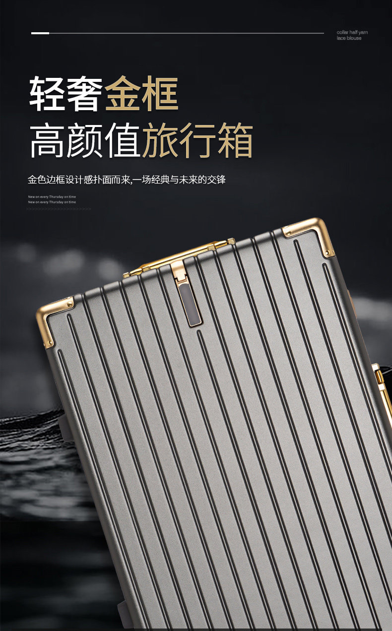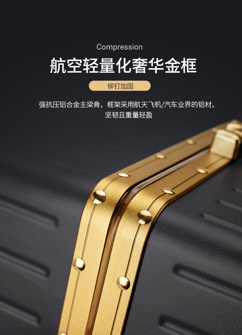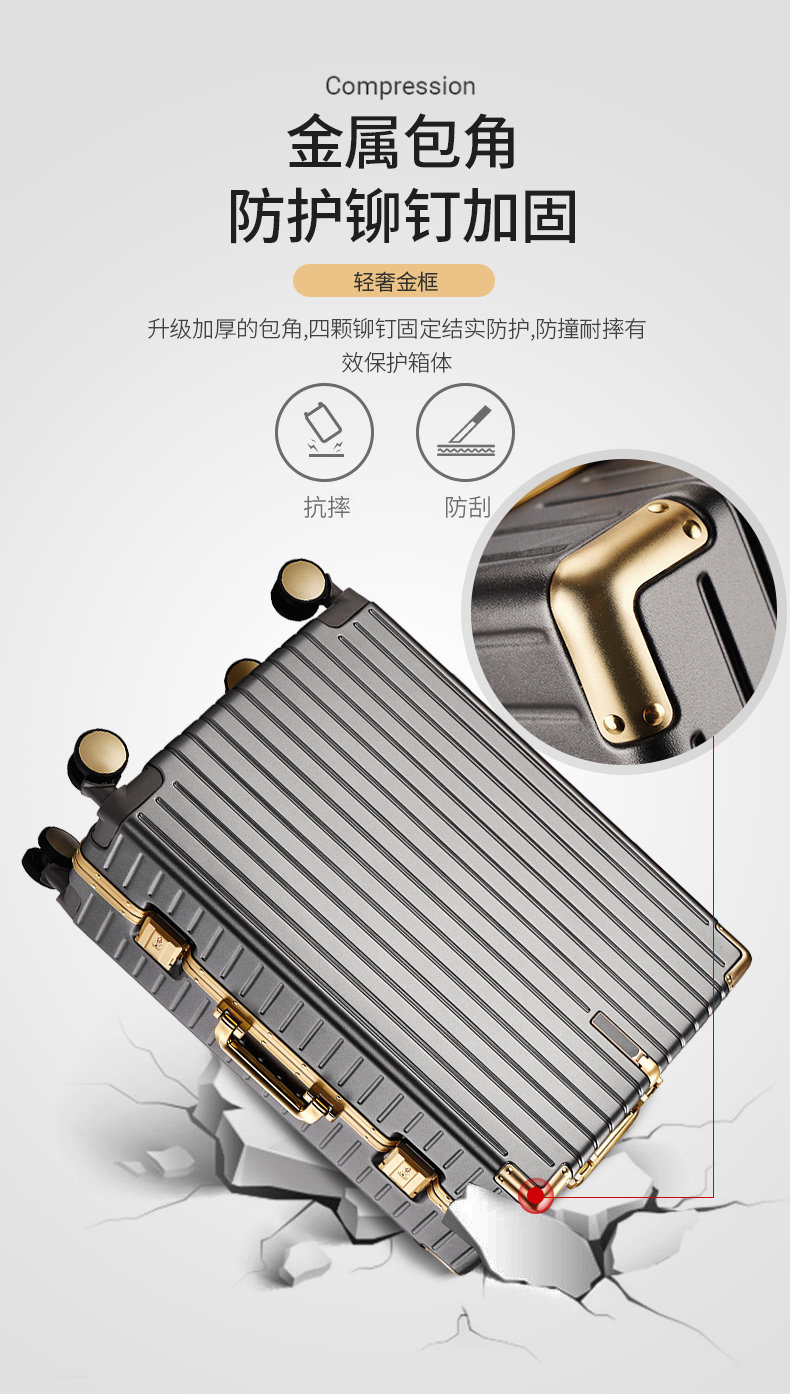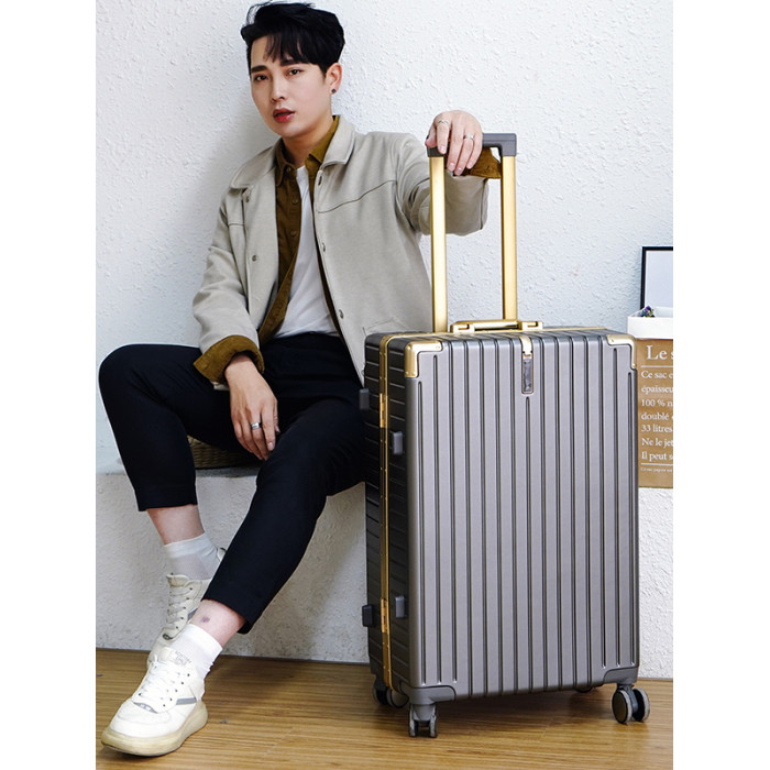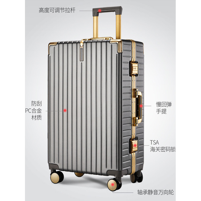 漫旅仕金色鋁框行李箱男女萬向輪大容量結實耐用密碼拉桿箱旅行箱