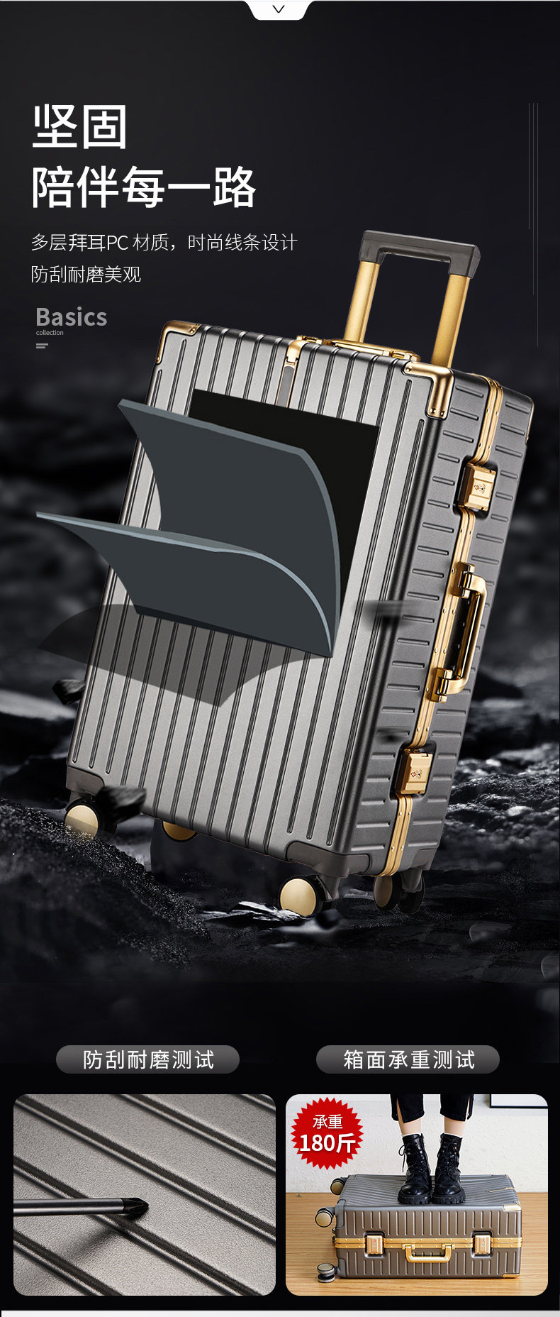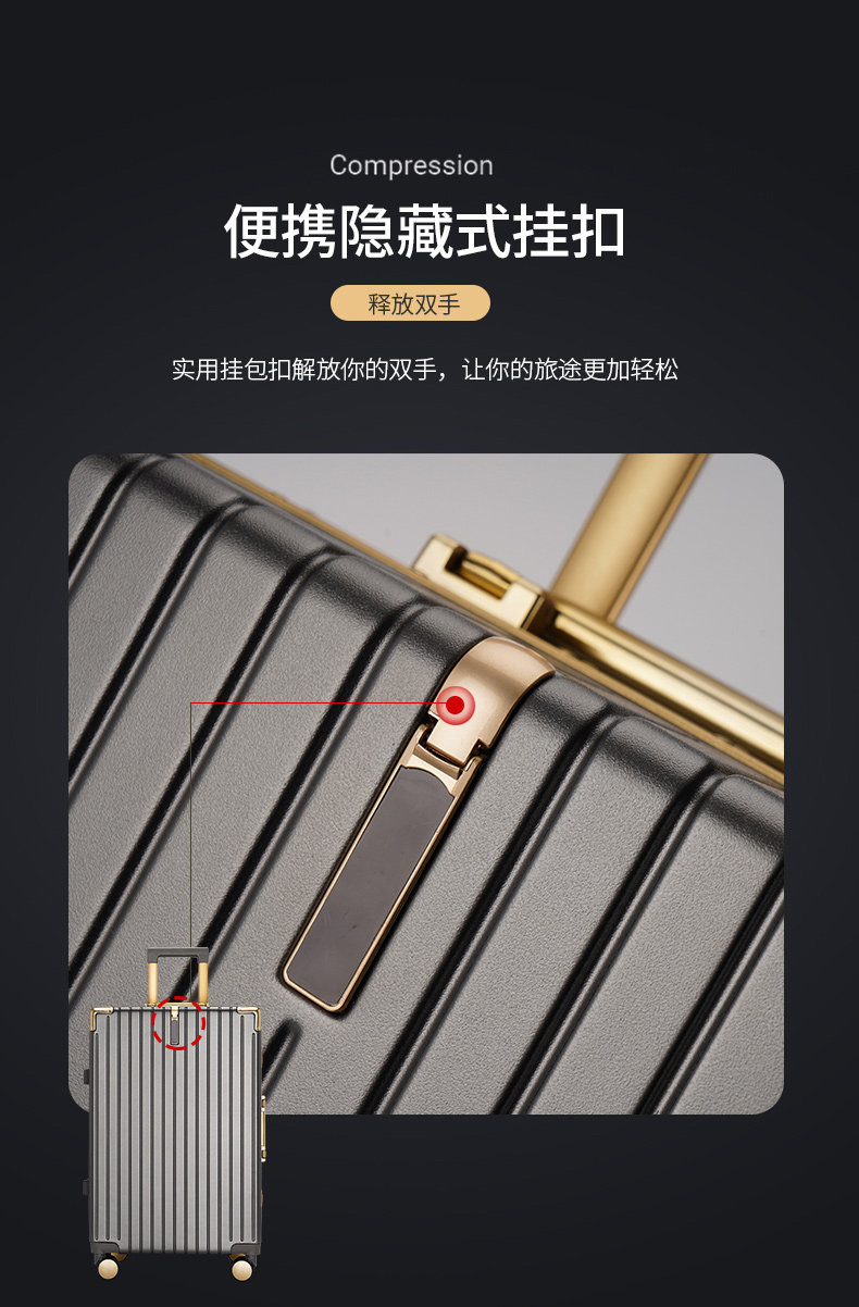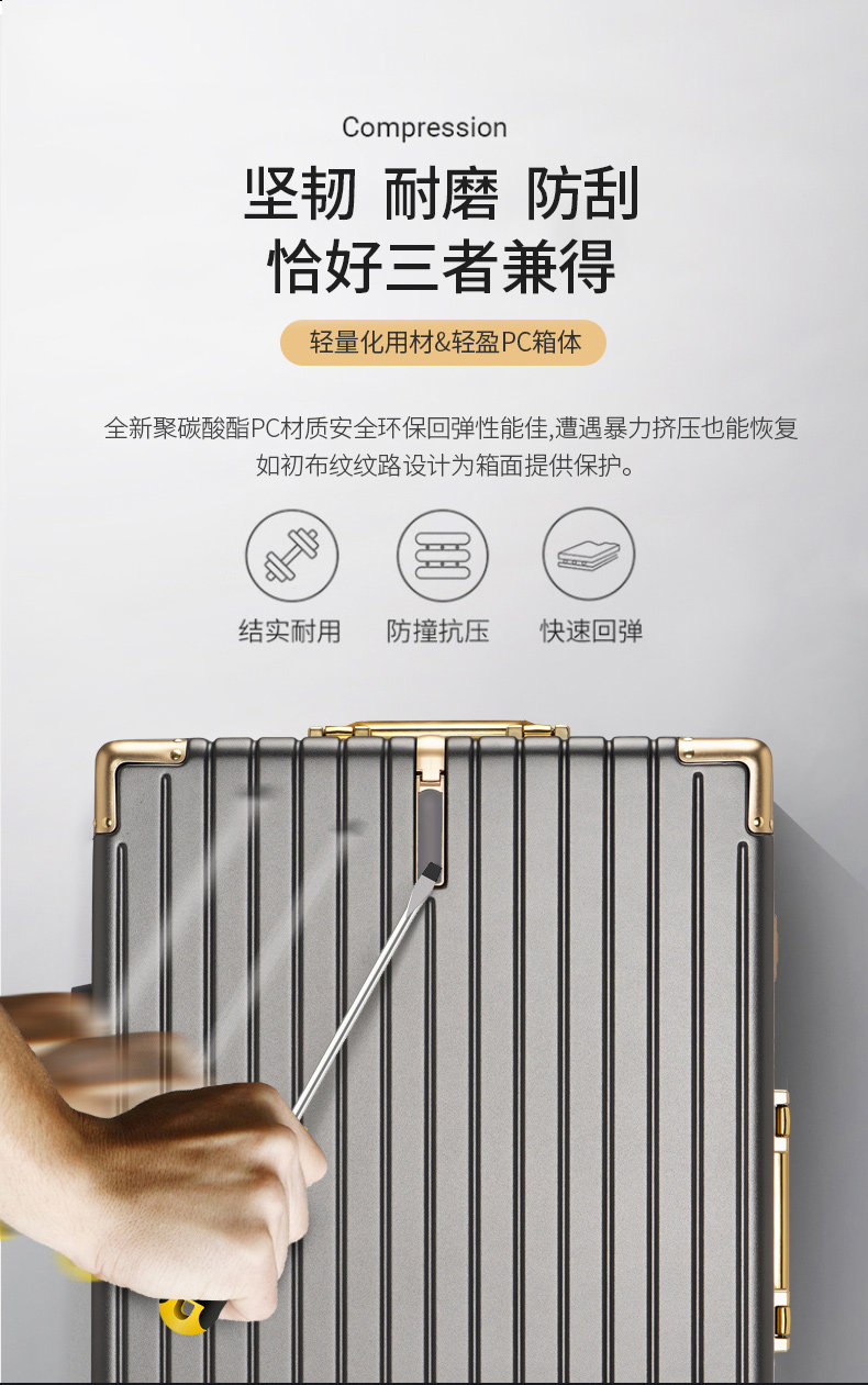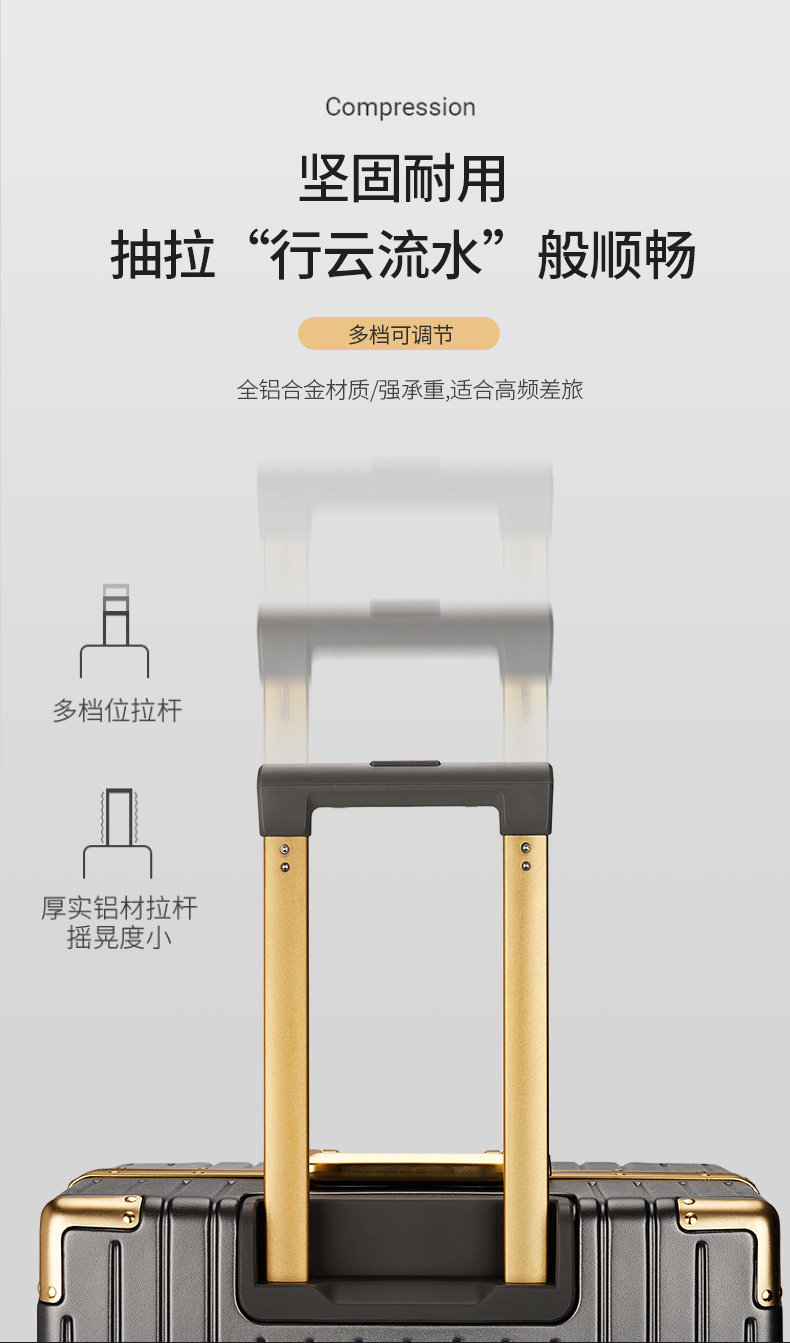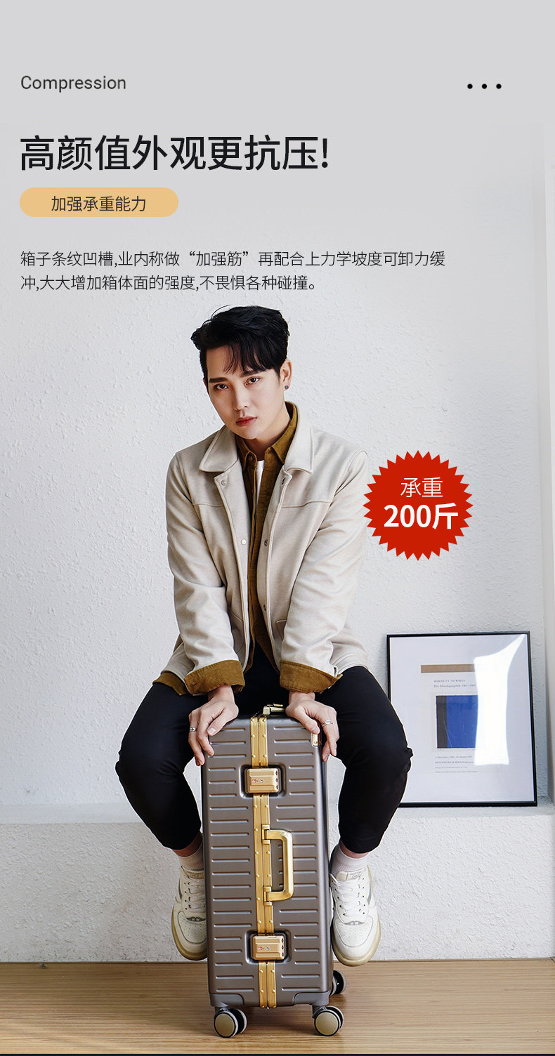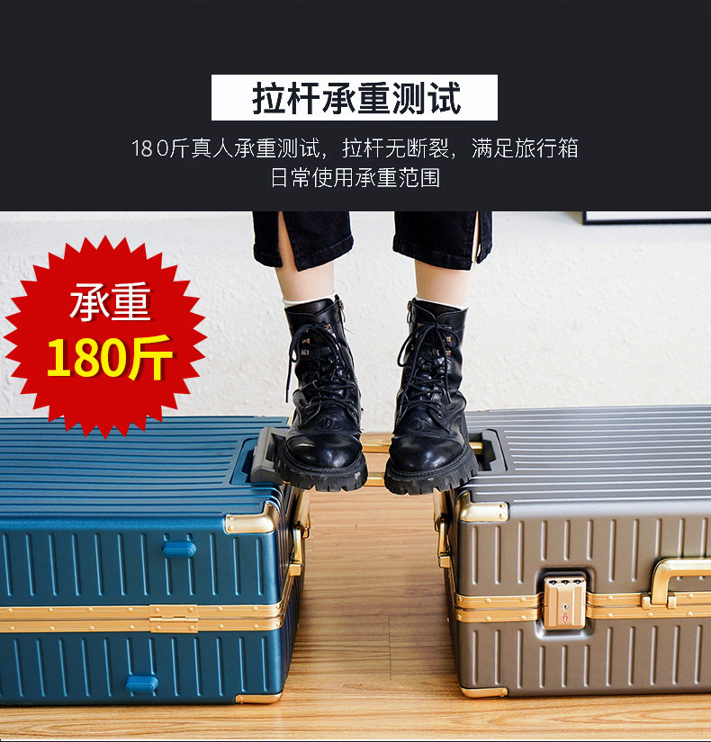 漫旅仕金色鋁框行李箱男女萬向輪大容量結實耐用密碼拉桿箱旅行箱