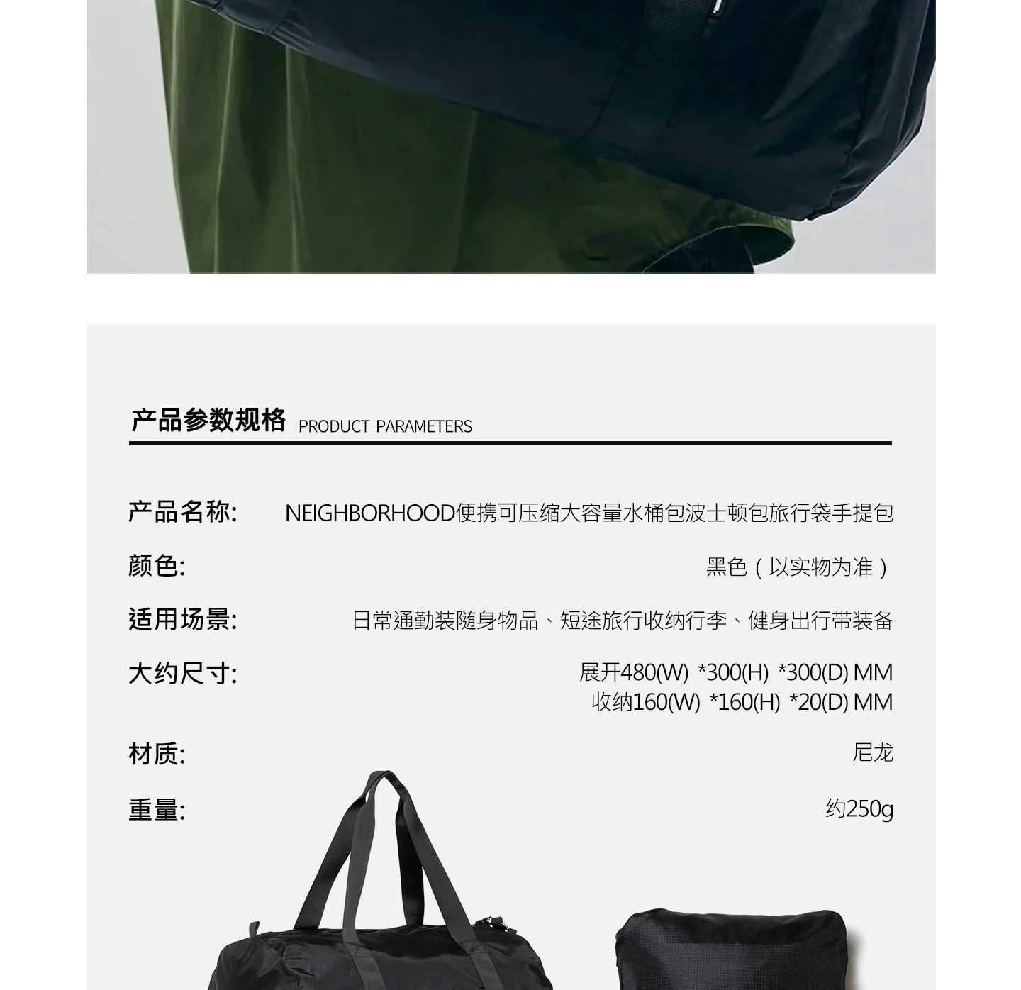 NEIGHBORHOOD NBHD可攜式可壓縮大容量水桶包波士頓包旅行袋手提包