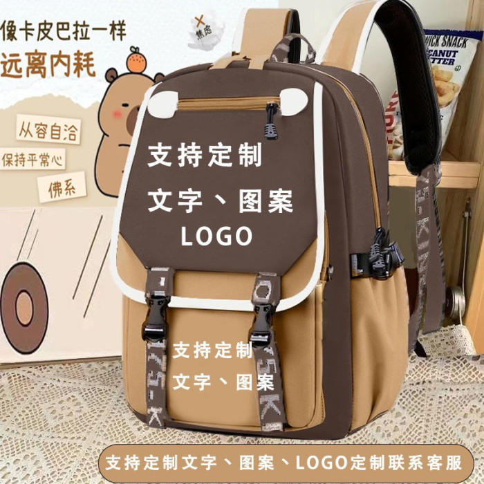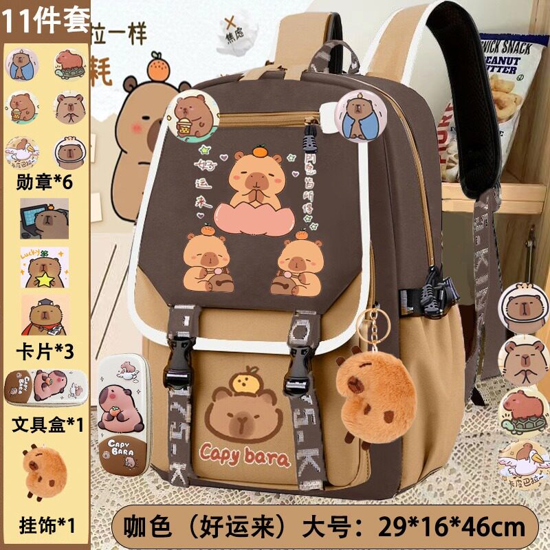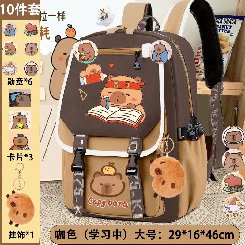 個性創意少女心水豚大容量雙肩包卡通可愛小清新卡皮巴拉雙肩書包