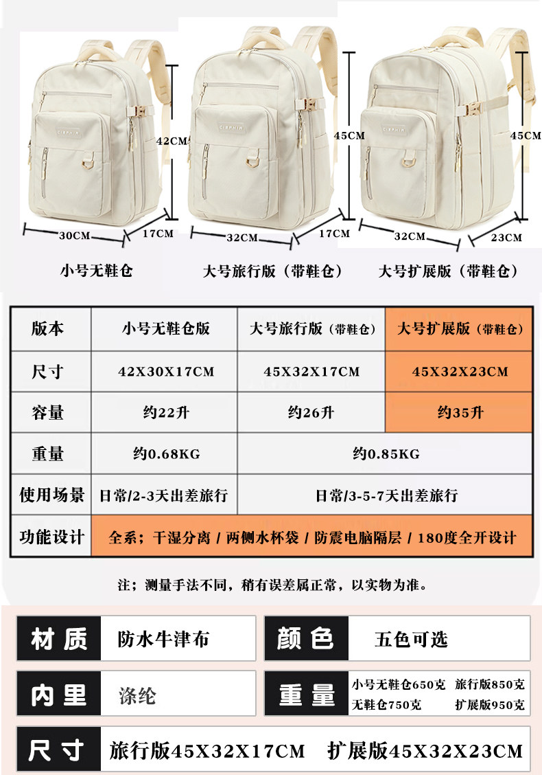 優王旅行雙肩包女旅遊輕便多功能大容量外出差行李包短途旅行後後背包
