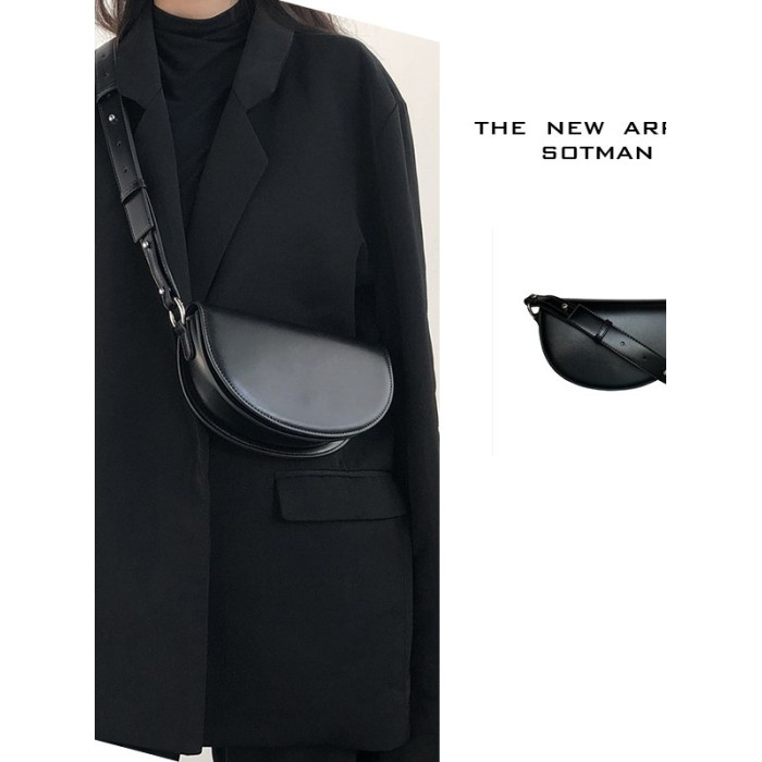 春夏新款黑色高級感包包女式半圓馬鞍包小衆百搭質感單肩斜後後背包女
