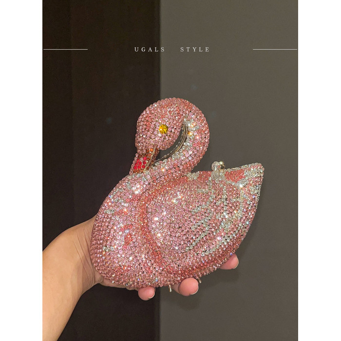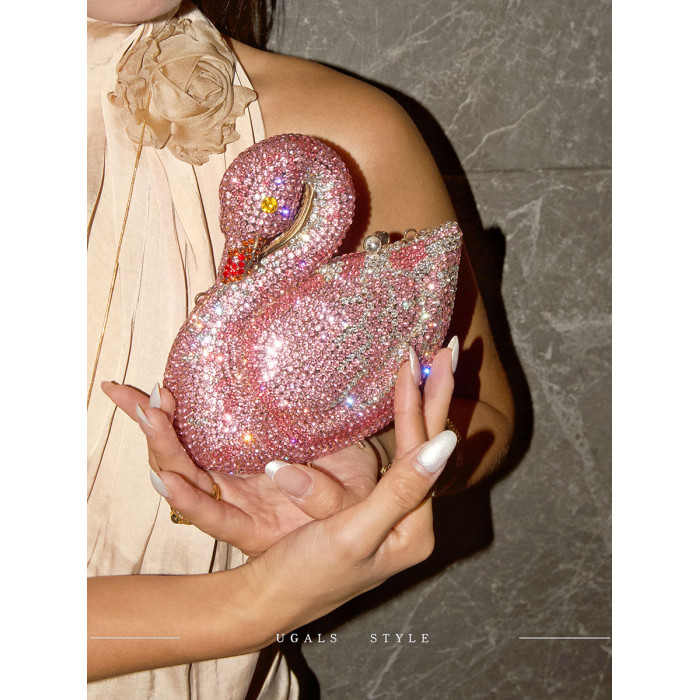 UGALS法式復古重工天鵞盒子水鑽仙女迷你閃亮不靈手拿斜背小包包