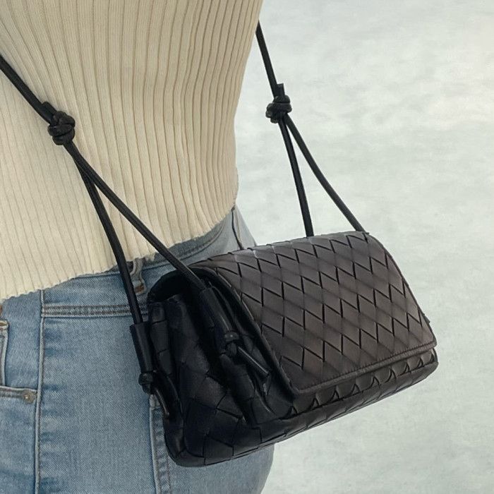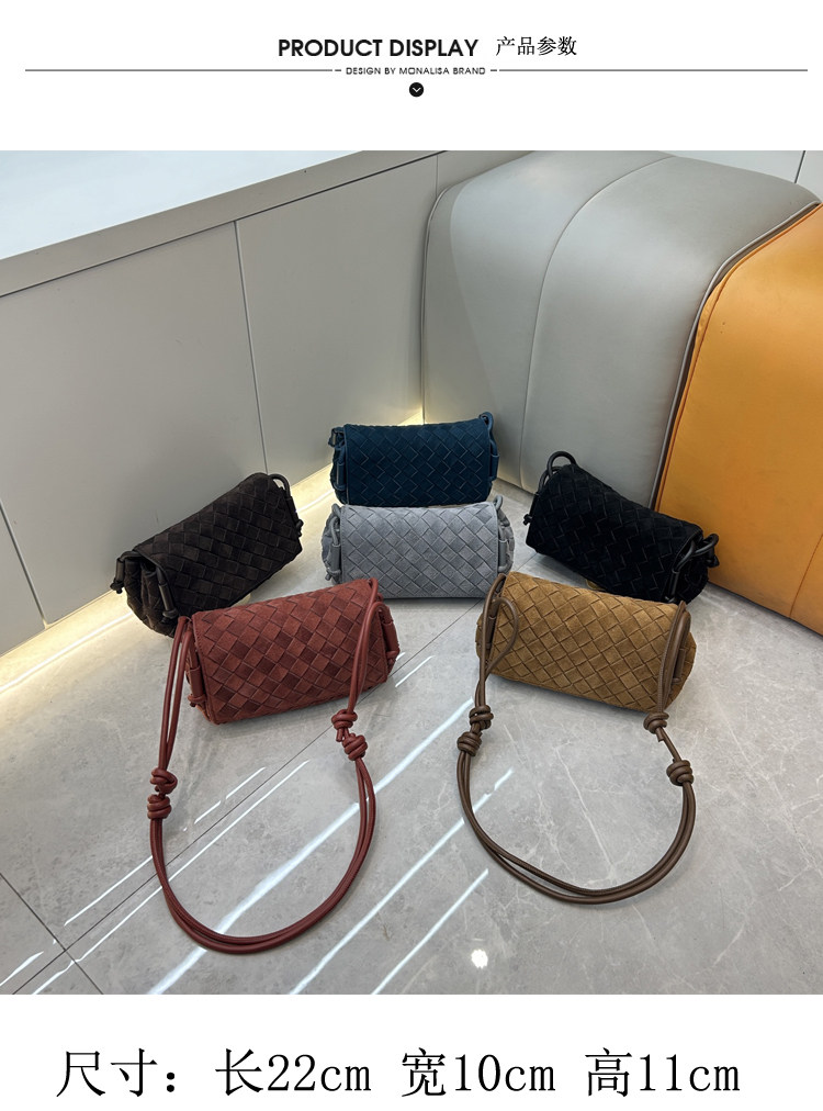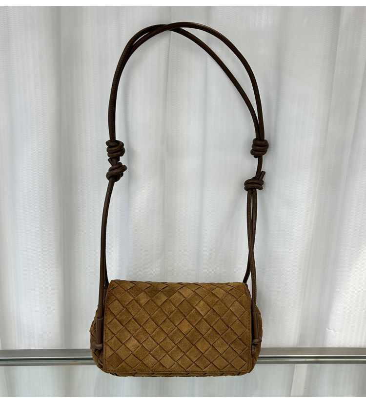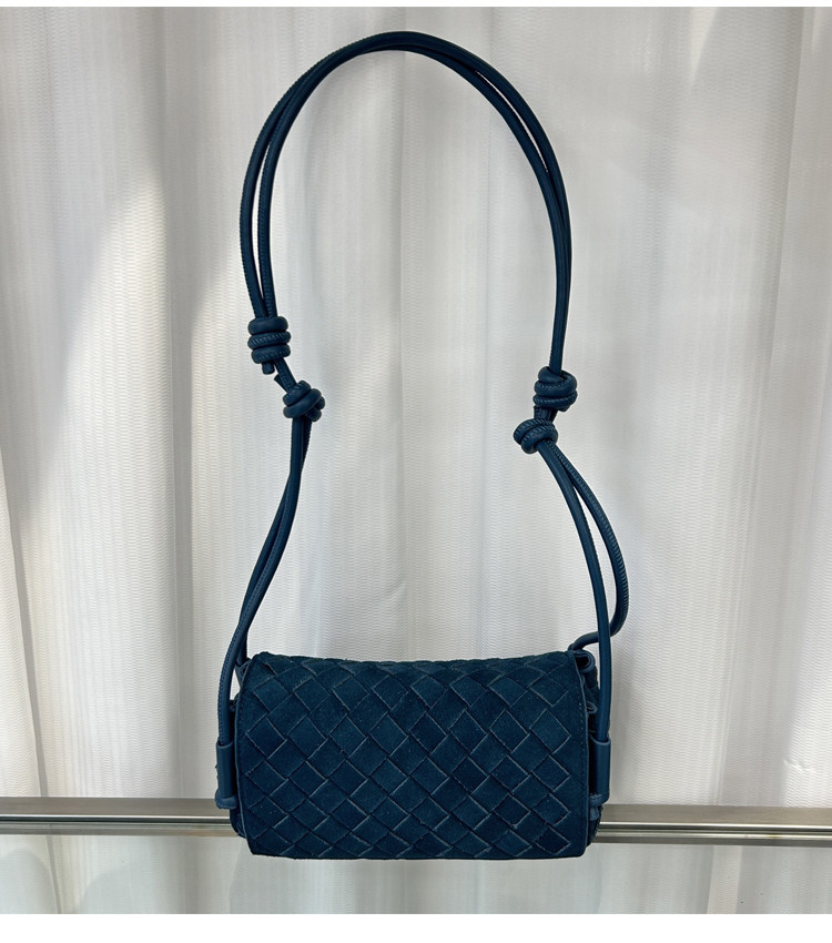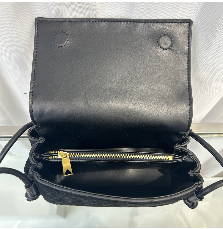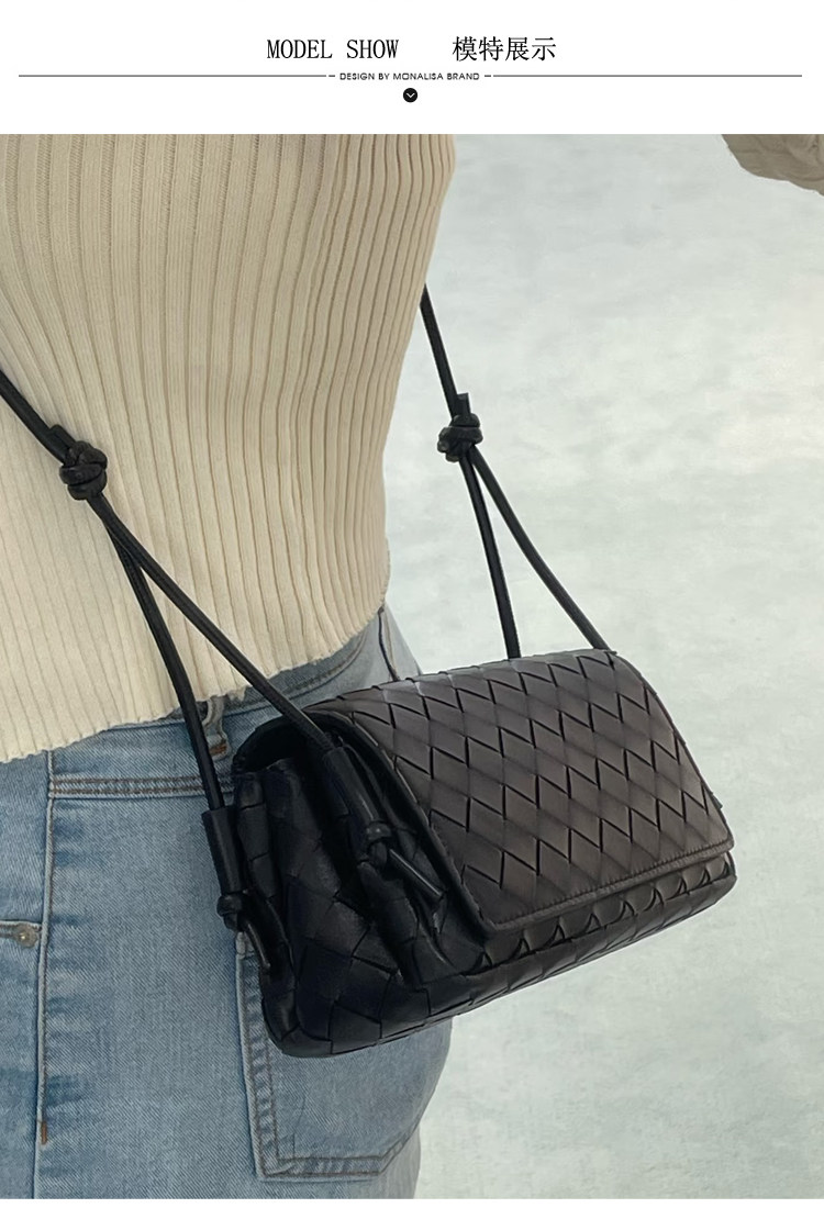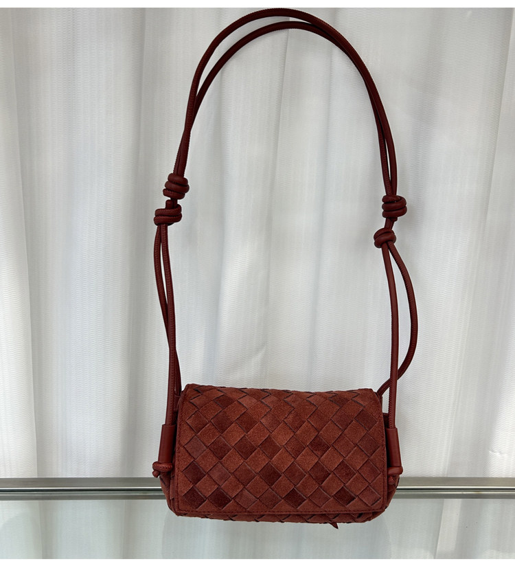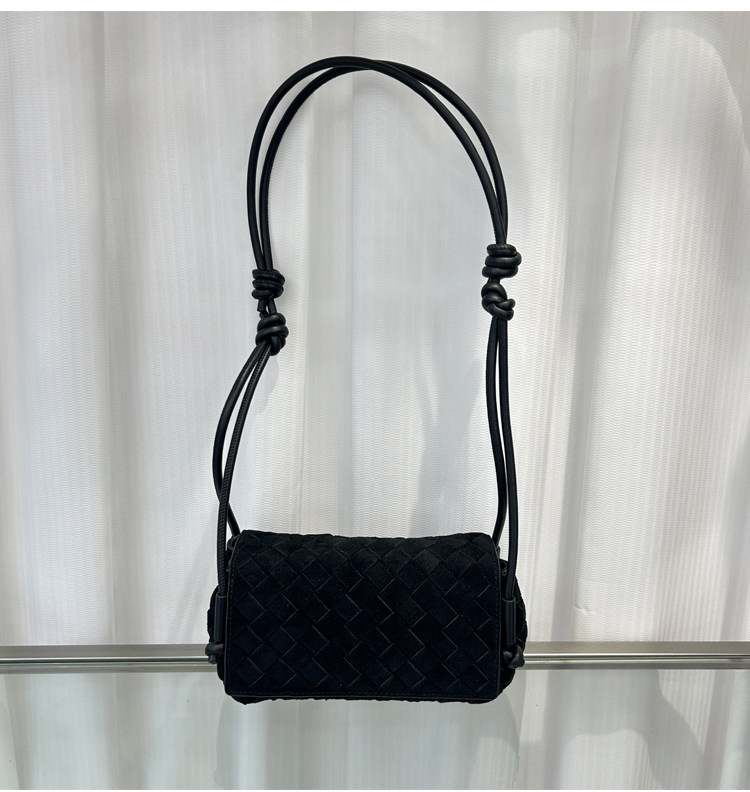 B家麂皮絨手工牛皮編織真皮女包單肩斜背繙蓋小方包簡約相機小包