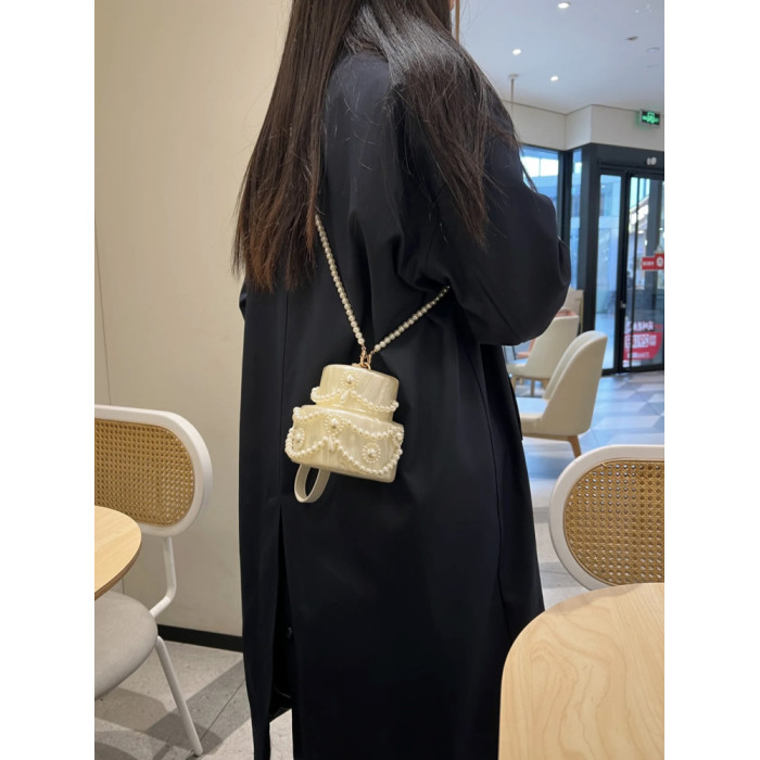 2025時尚白色水滴包亞克力單肩斜後後背包形手拿包派對生日禮物