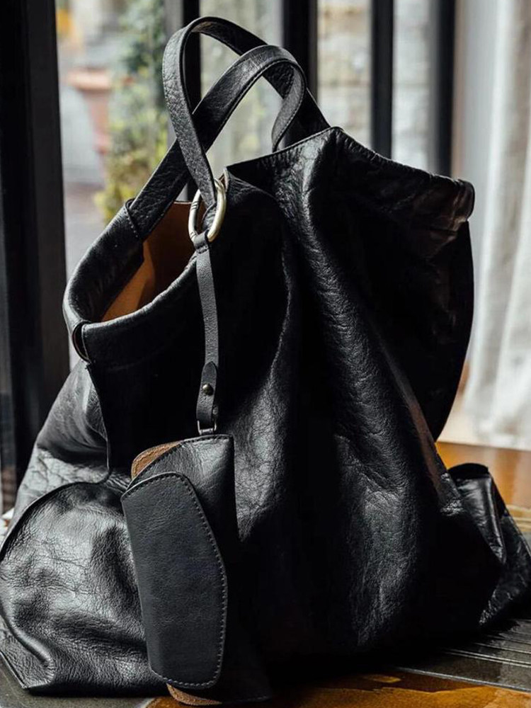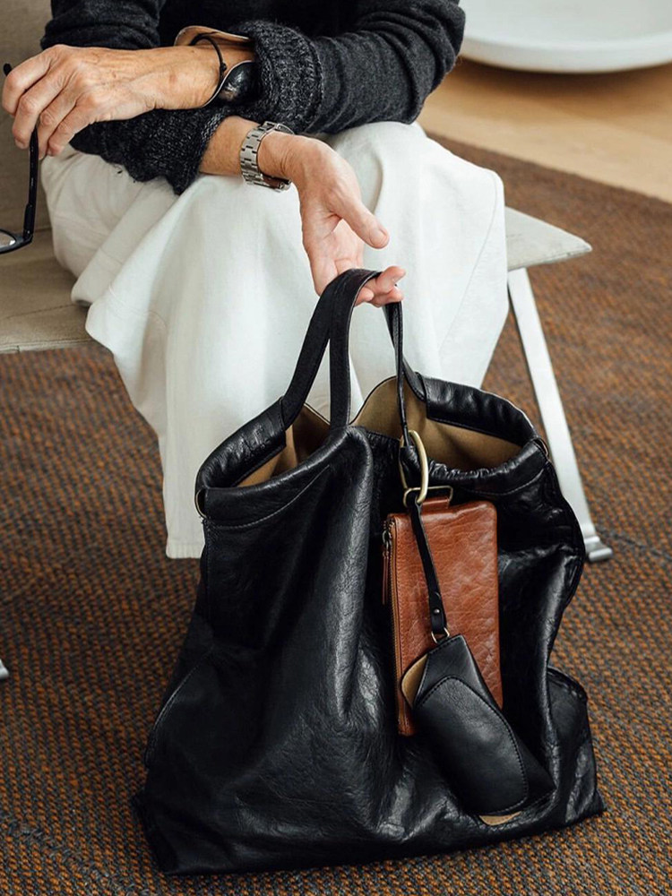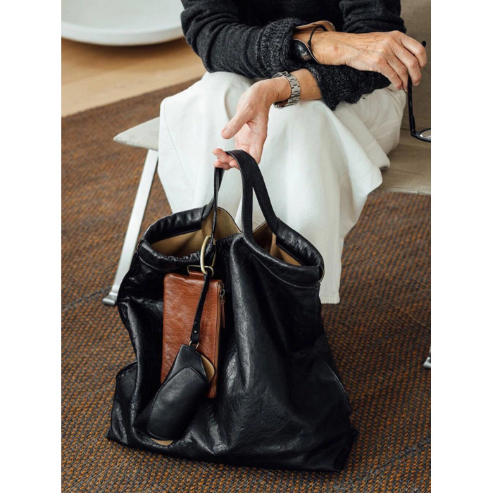 黑色真皮大容量托特包包女式2026新款輕奢小衆高級感手提通勤大包