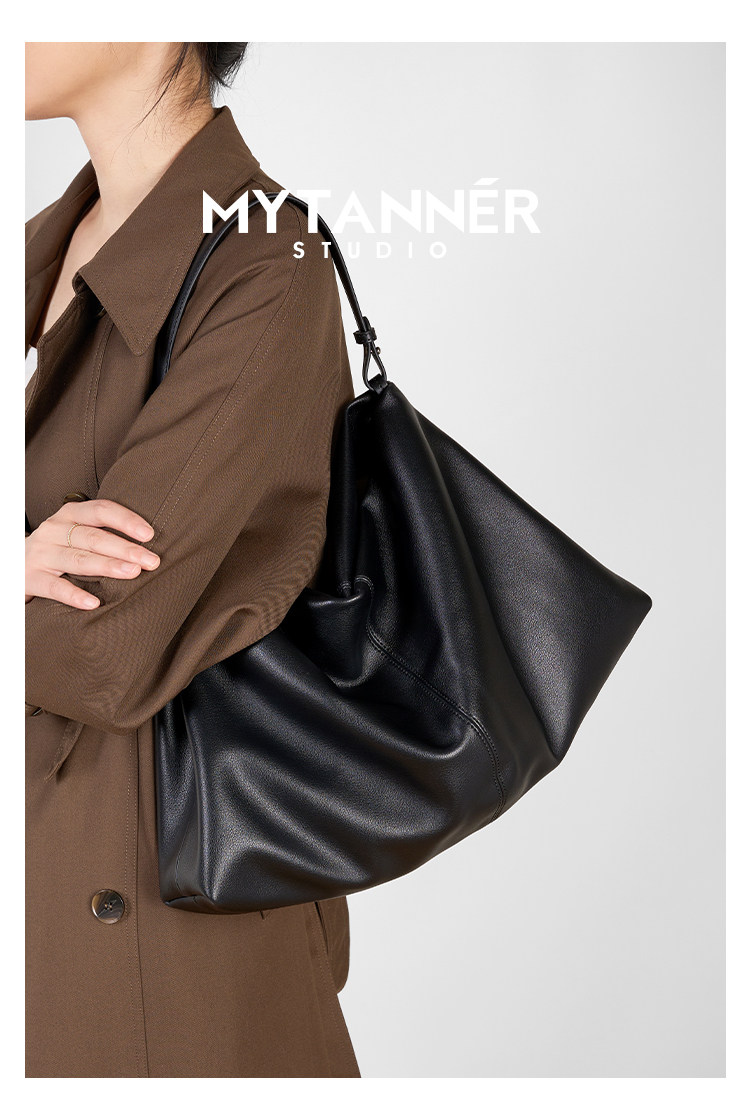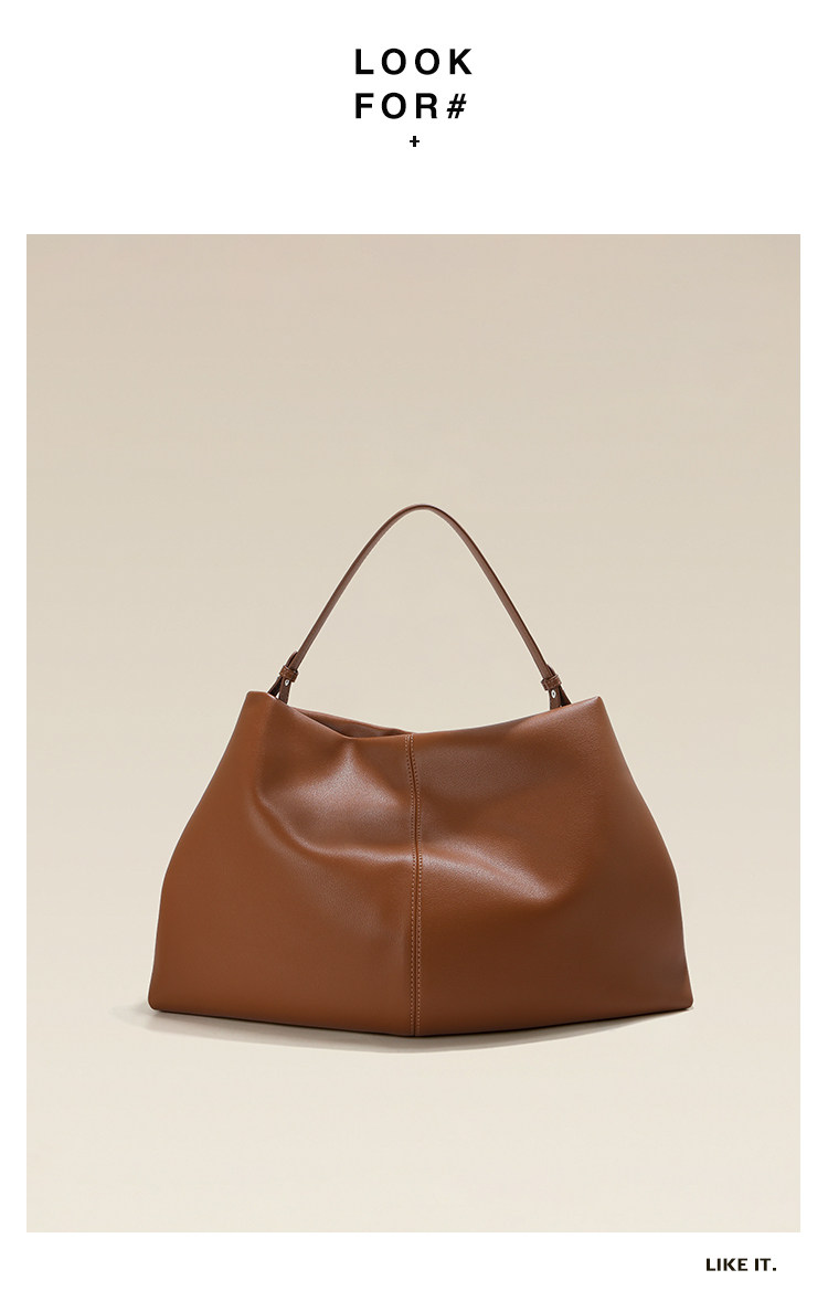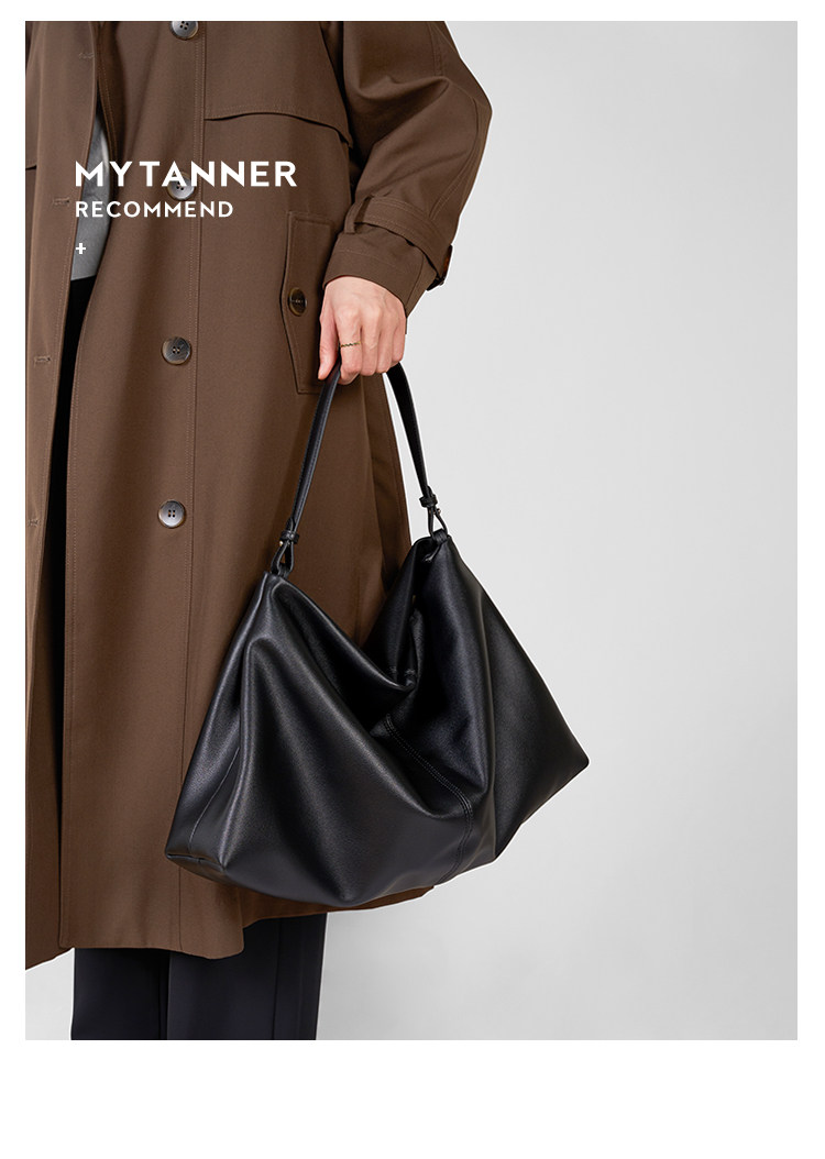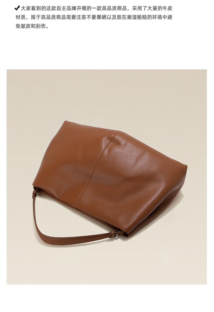 【麥田人】慵懶松弛感牛皮托特包女大容量通勤秋冬軟皮單肩斜後後背包