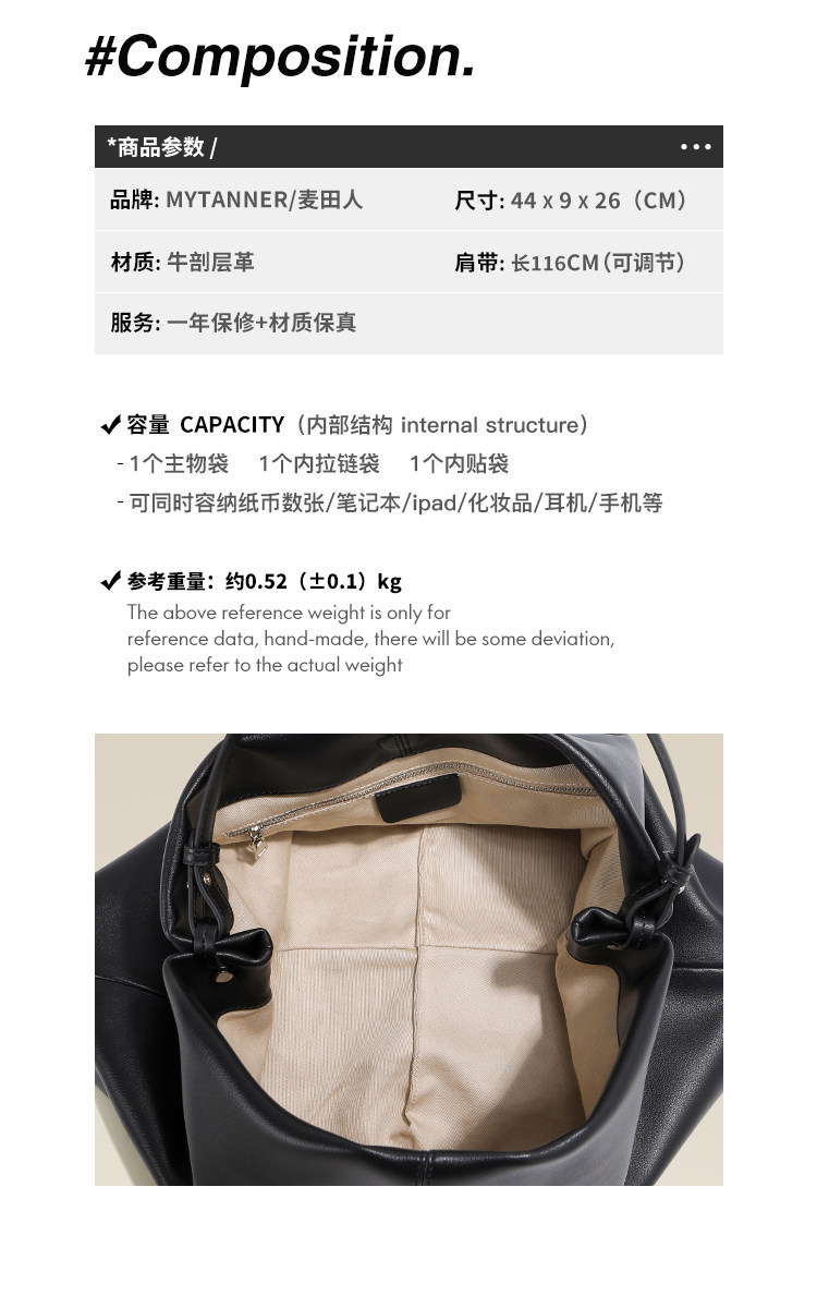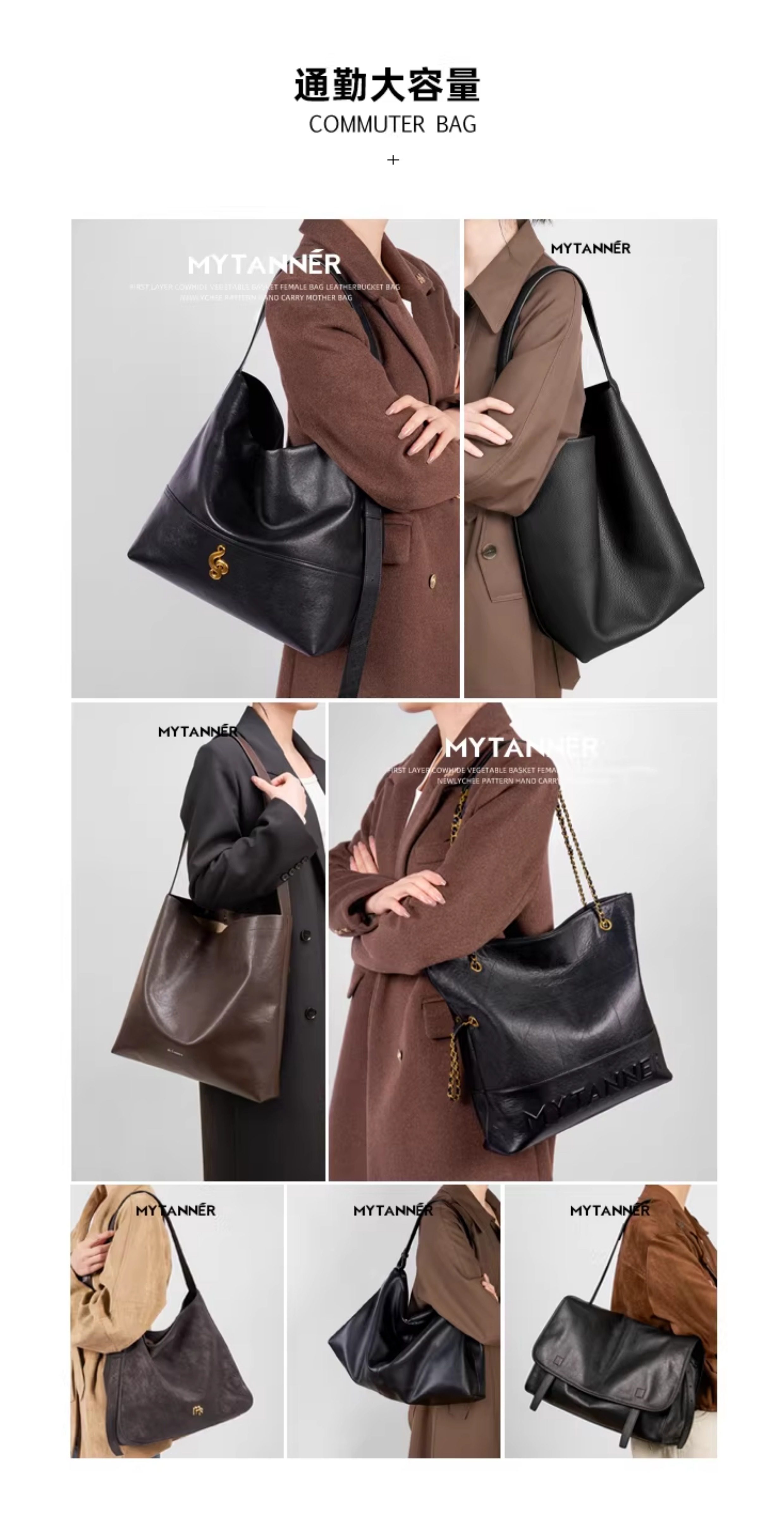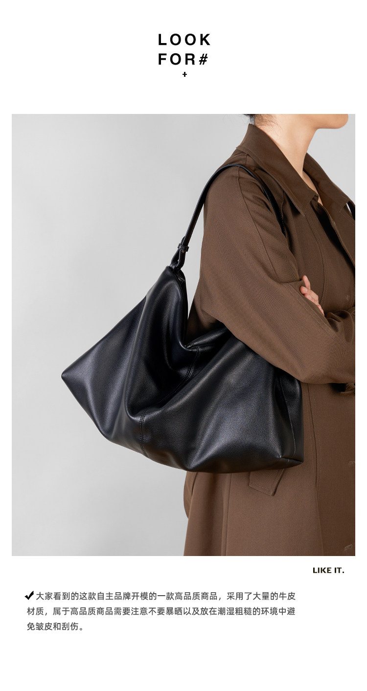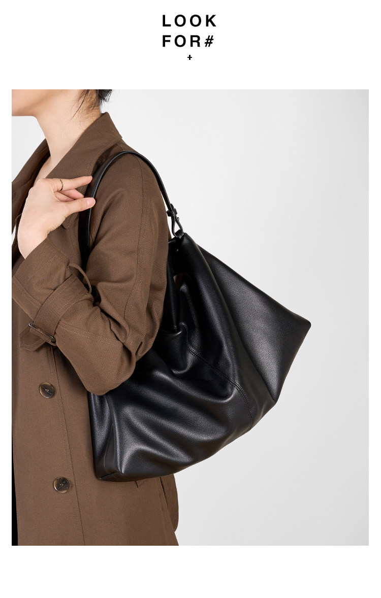 【麥田人】慵懶松弛感牛皮托特包女大容量通勤秋冬軟皮單肩斜後後背包