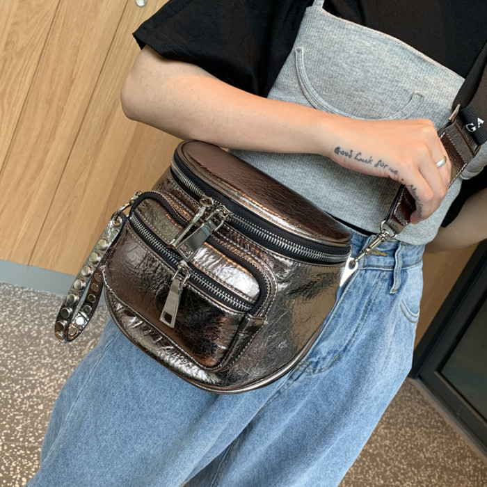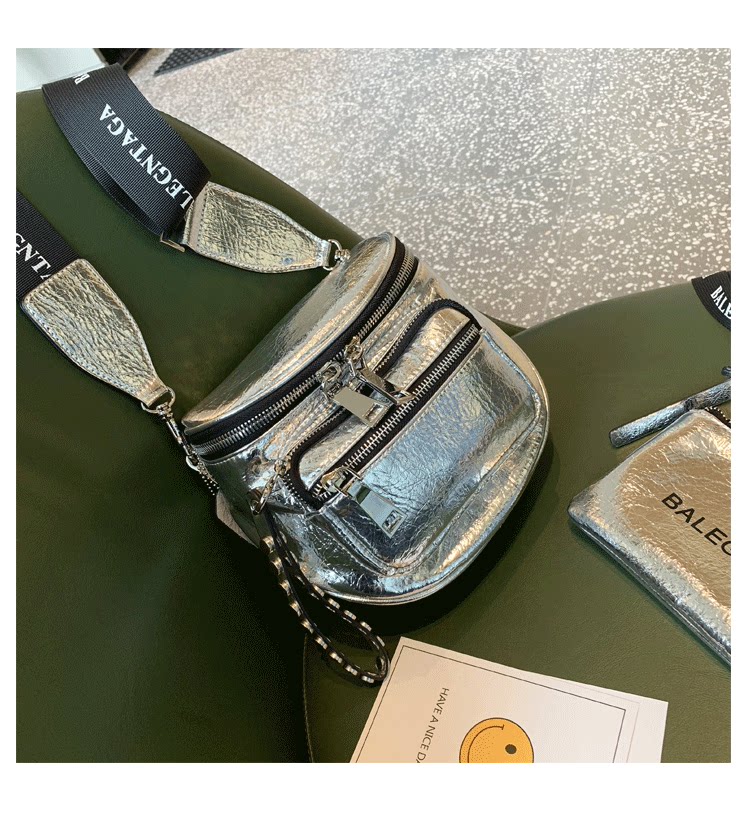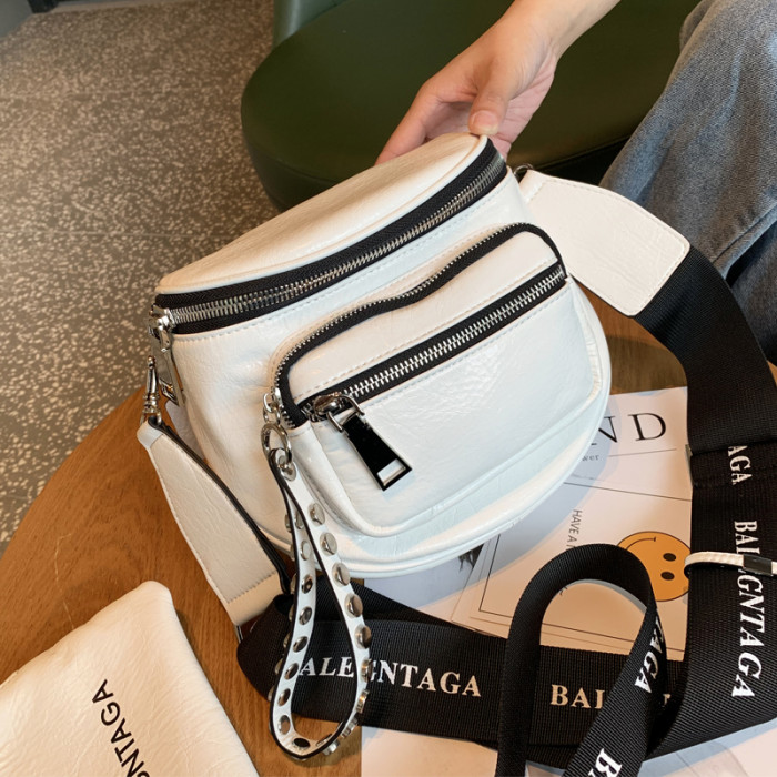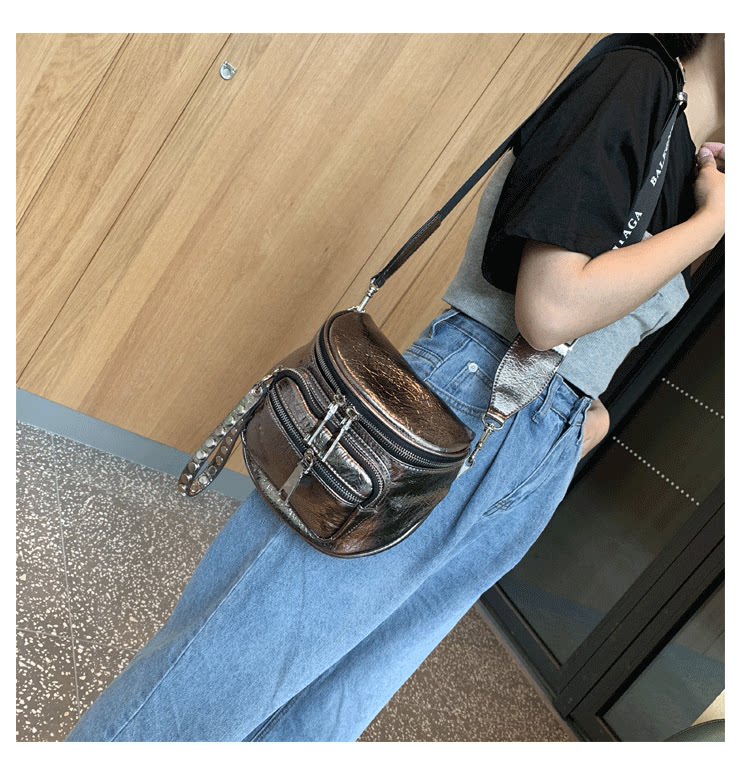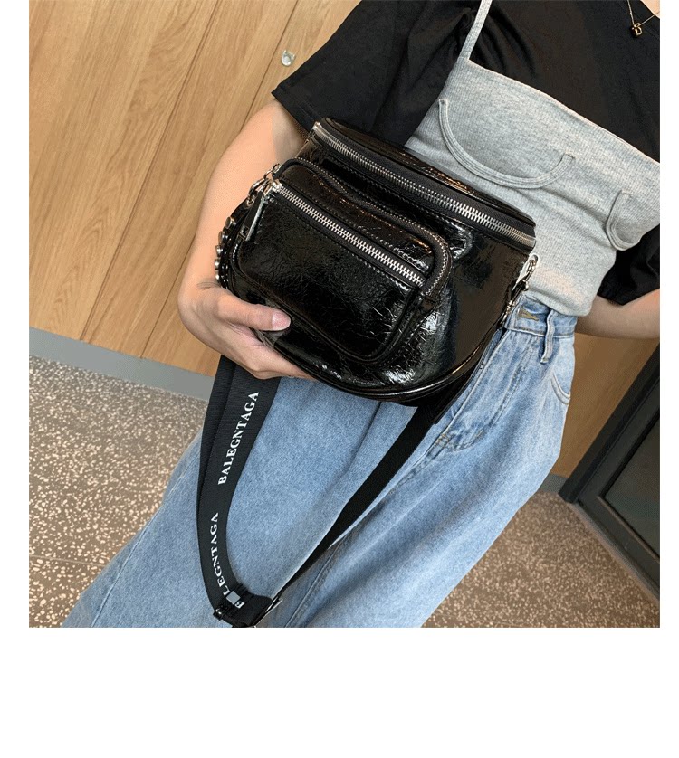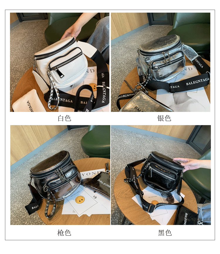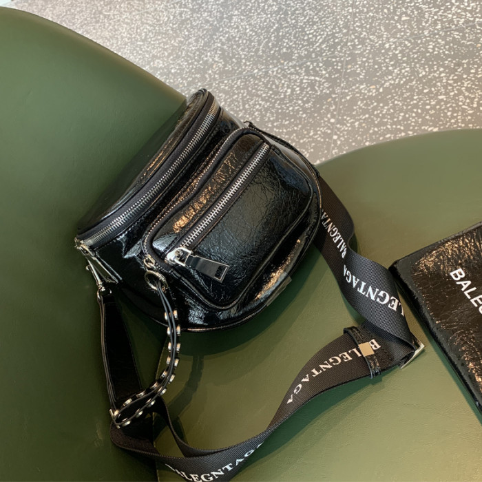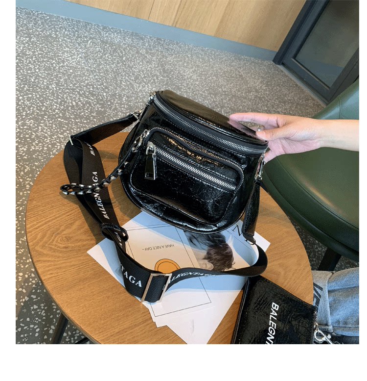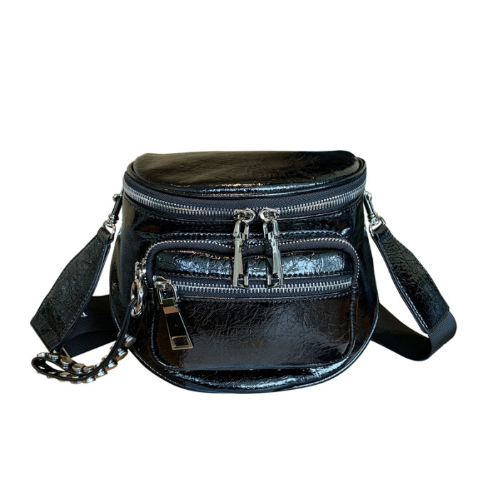 歐美亮面女包包2026新款百搭軟皮馬鞍包時尚寬帶單肩包半圓斜後後背包