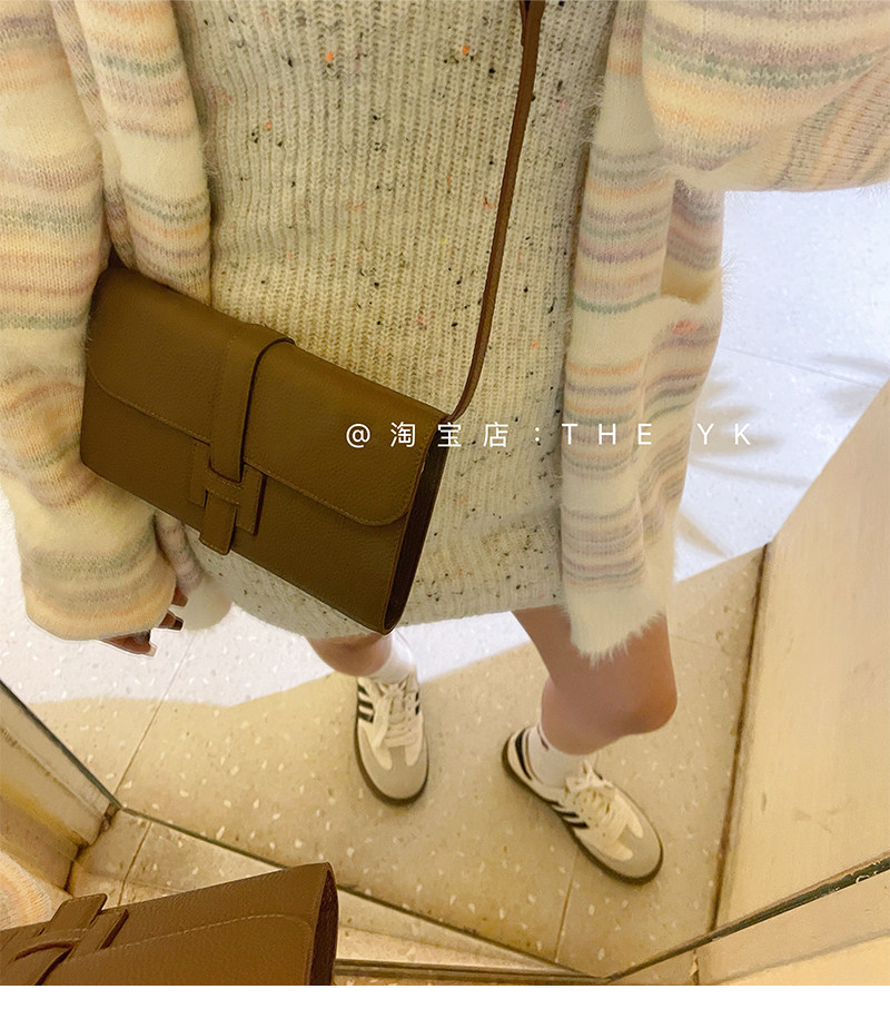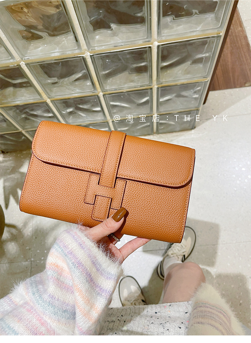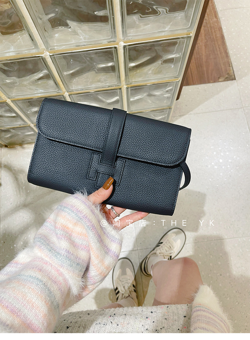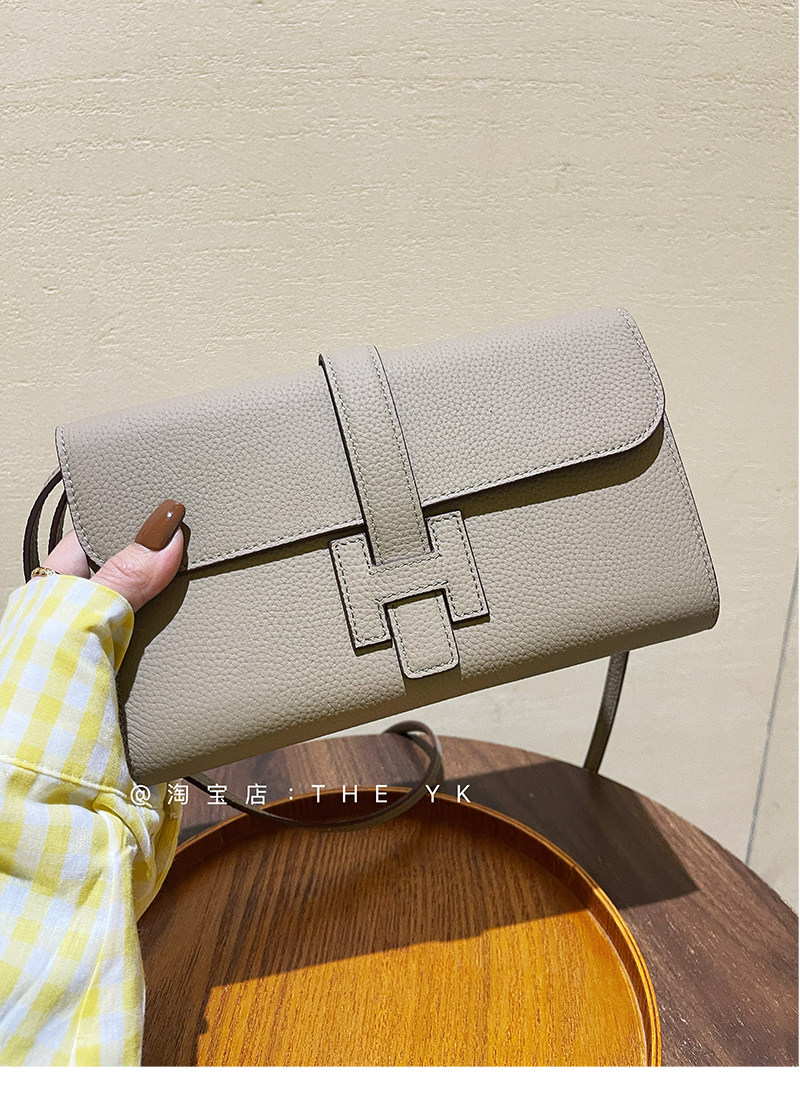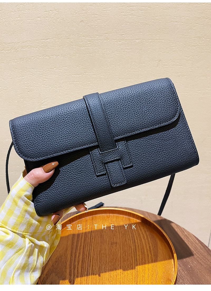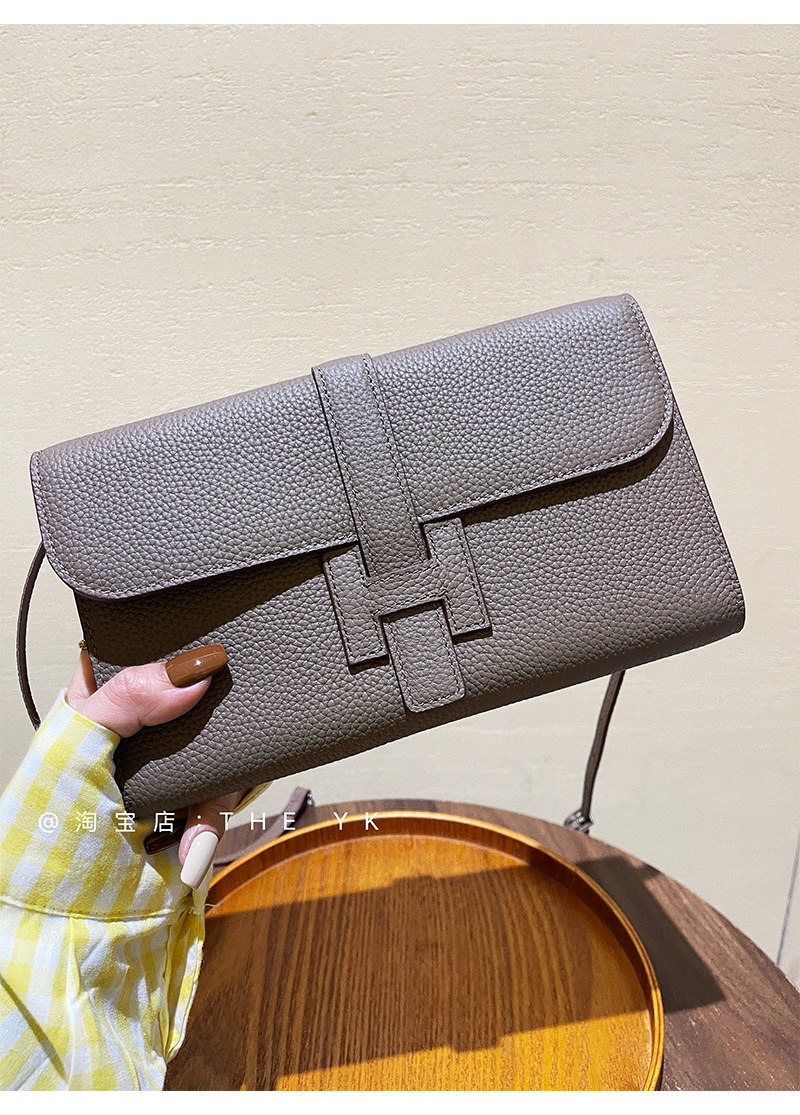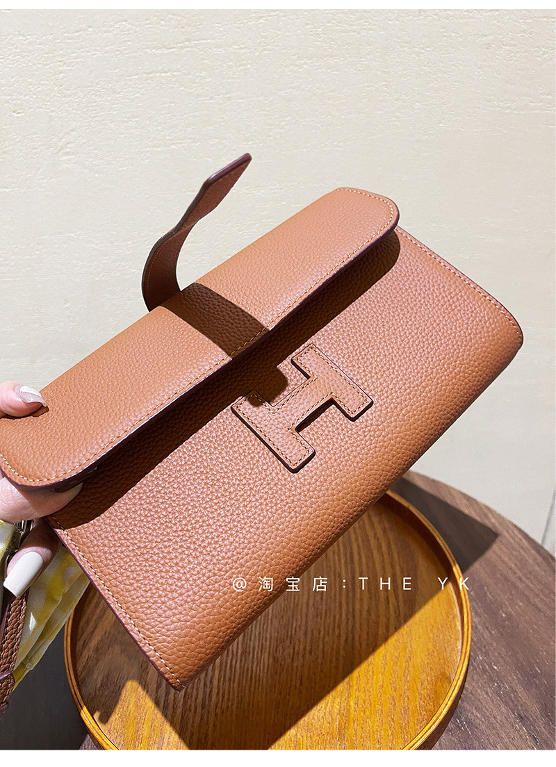 真皮H單肩斜背小包經典抽帶手拿包晚宴包時尚手機包信封包小方包