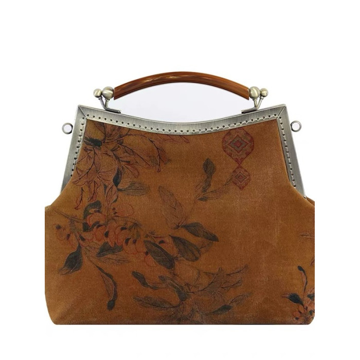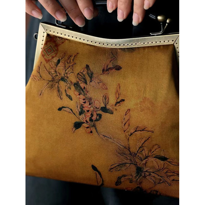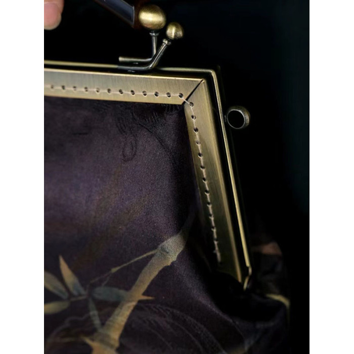原創國風復古新款香雲紗旗袍手拎包可斜背中式手工手提包媽媽包包