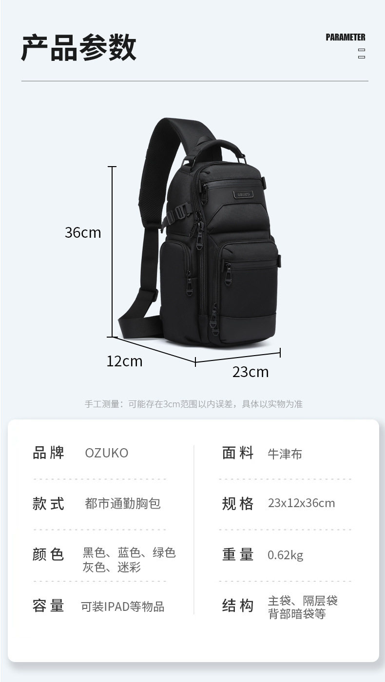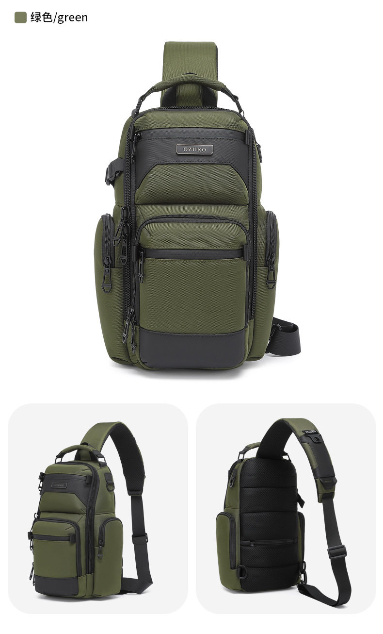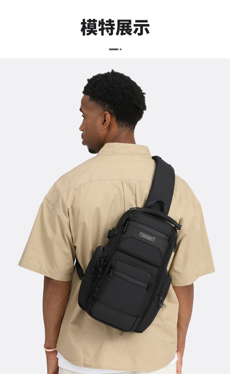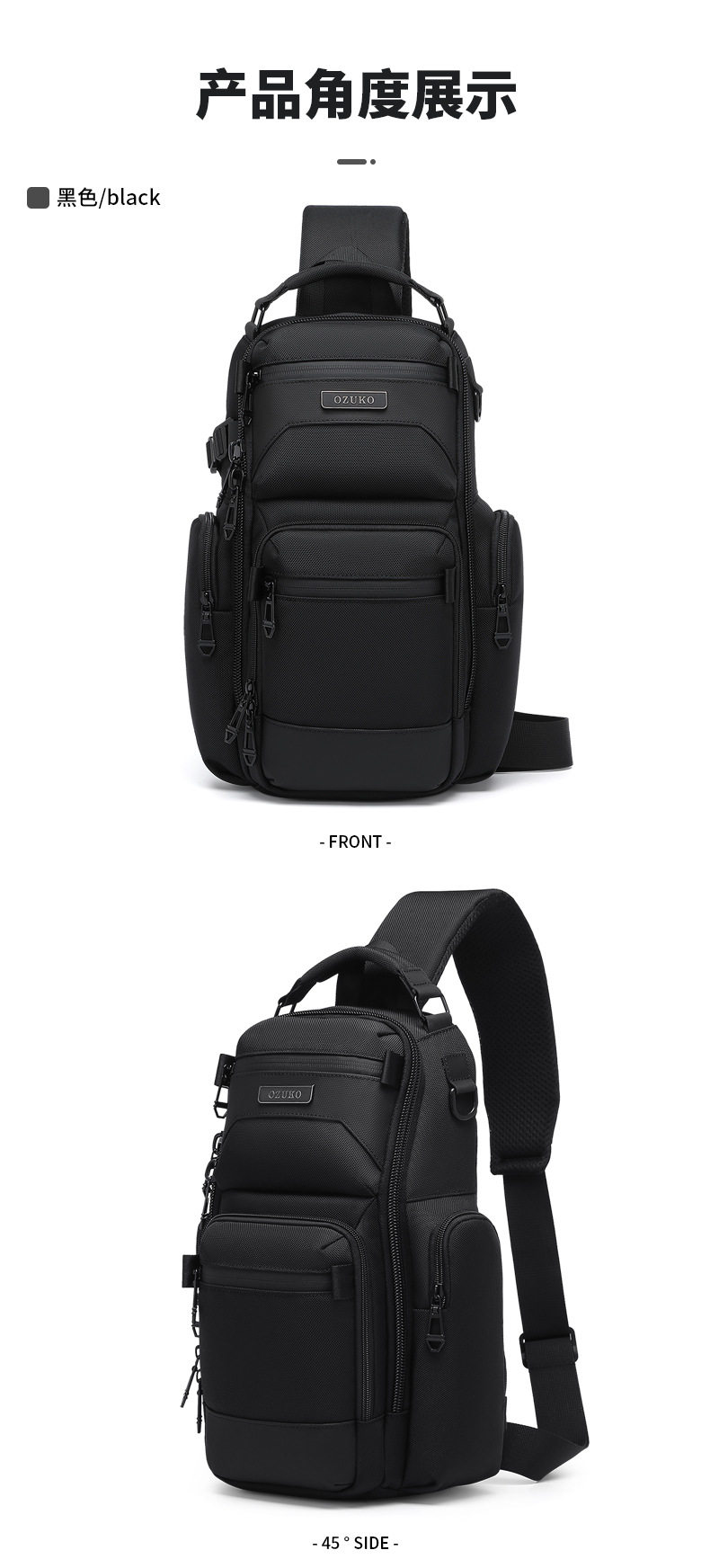 ozuko男士胸包運動防潑水斜後後背包 戰術多功能包包款斜後後背包騎行男包