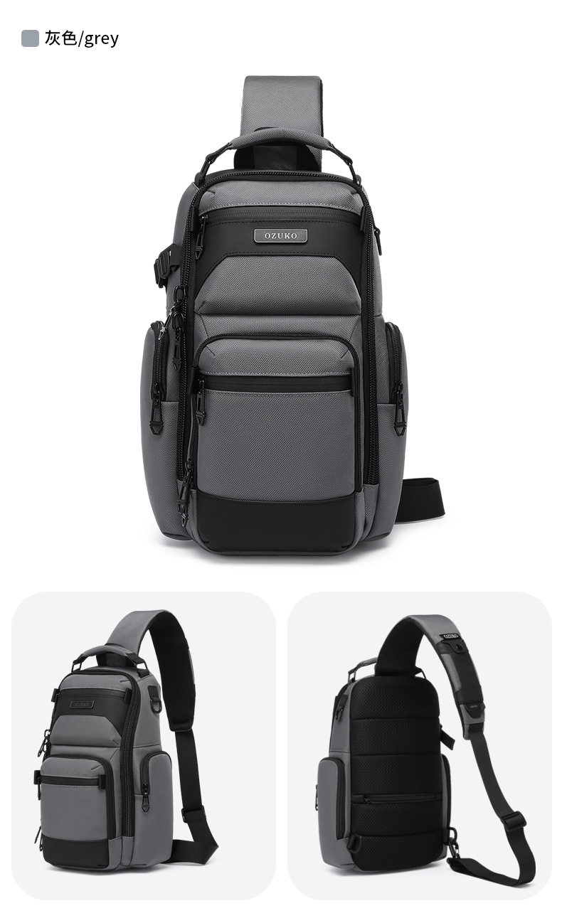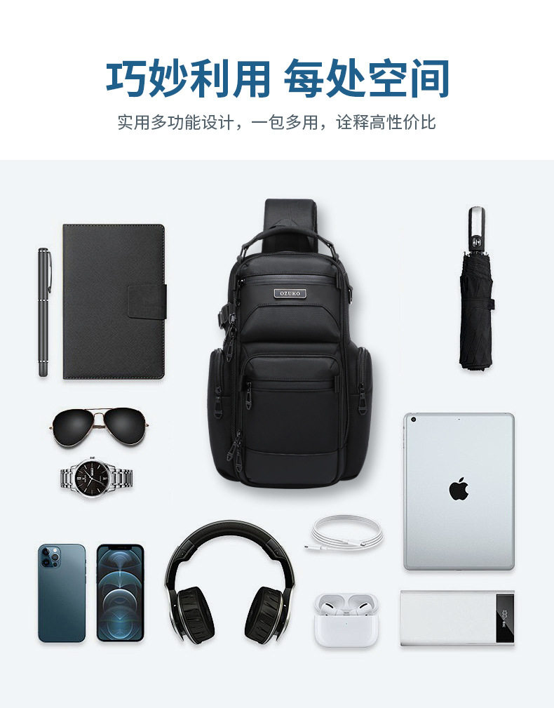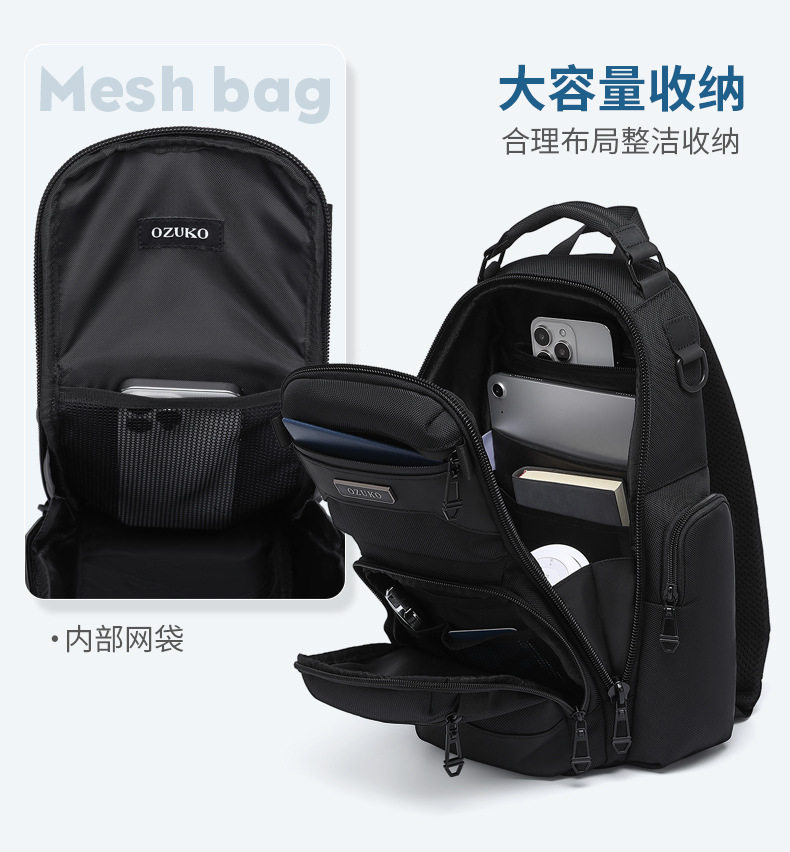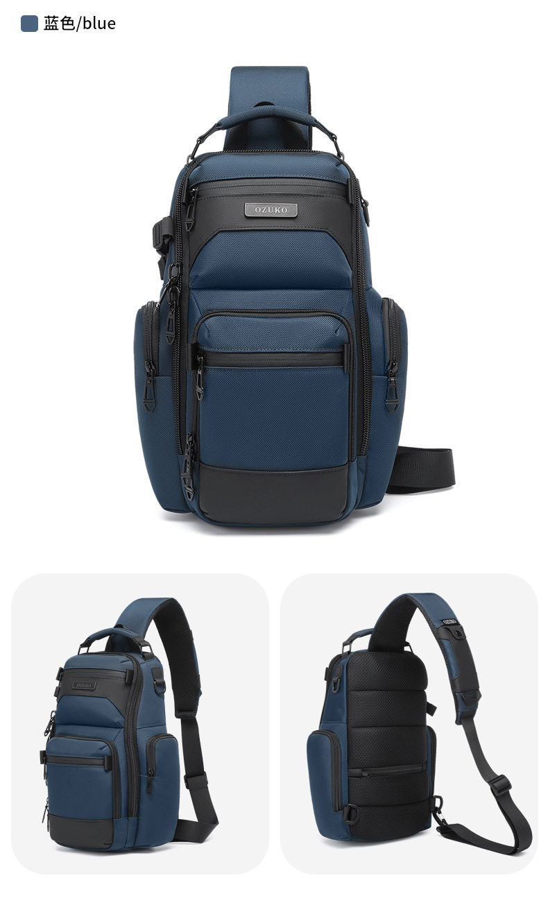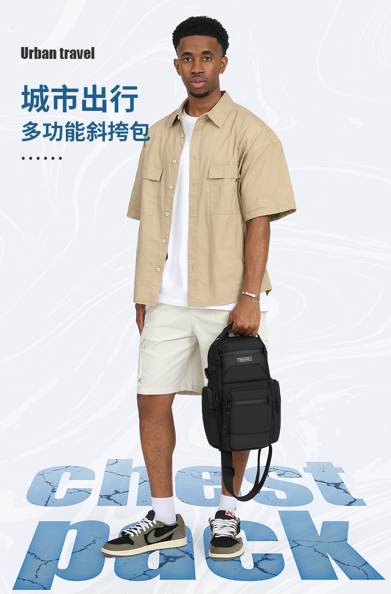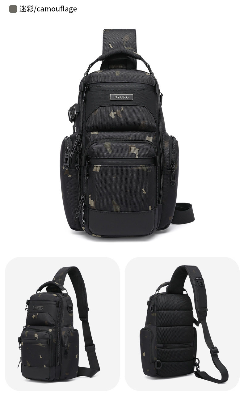 ozuko男士胸包運動防潑水斜後後背包 戰術多功能包包款斜後後背包騎行男包