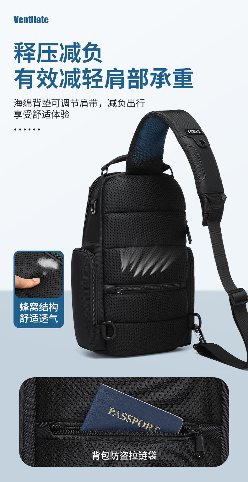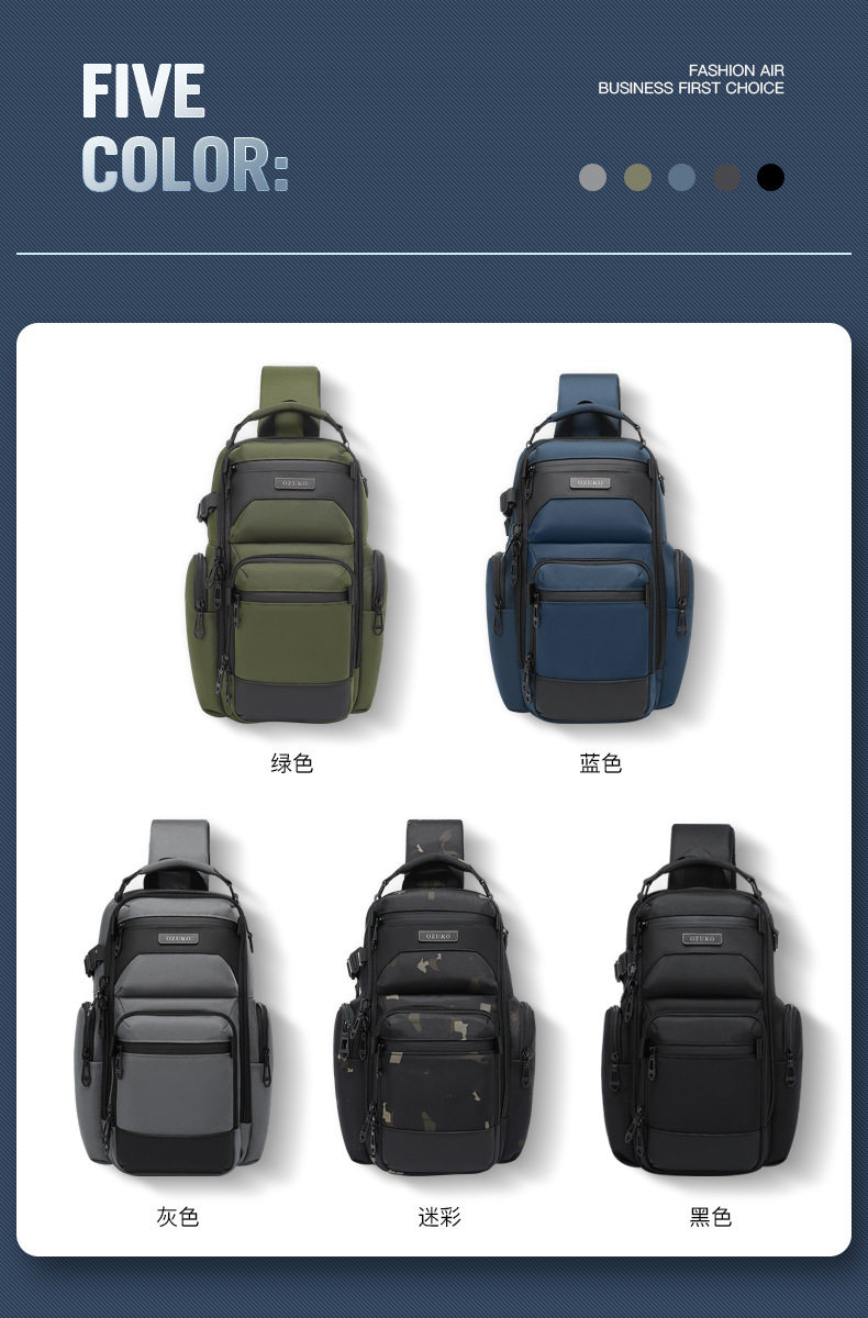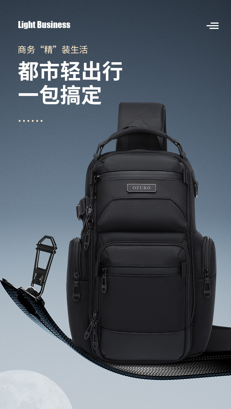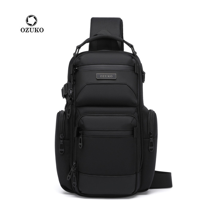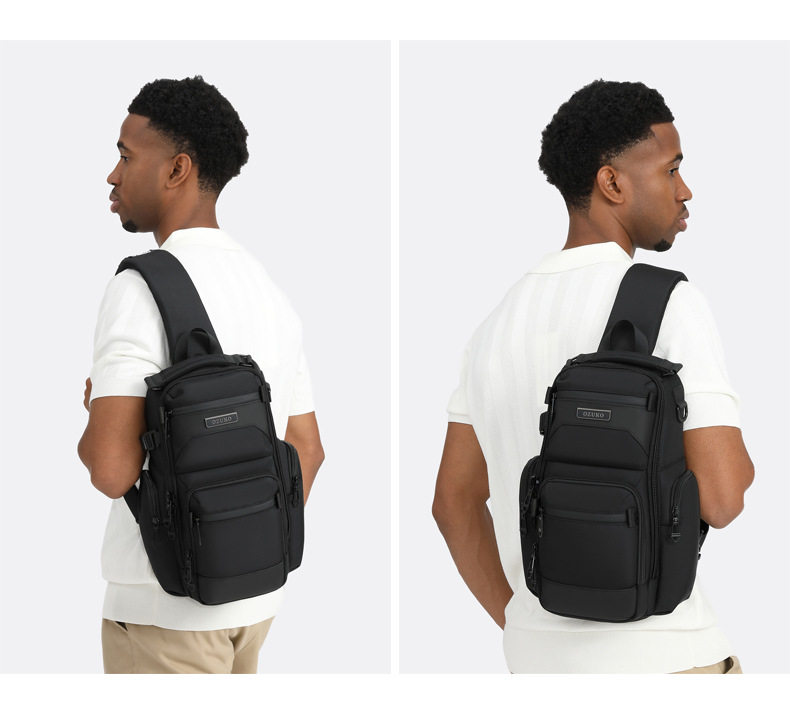 ozuko男士胸包運動防潑水斜後後背包 戰術多功能包包款斜後後背包騎行男包