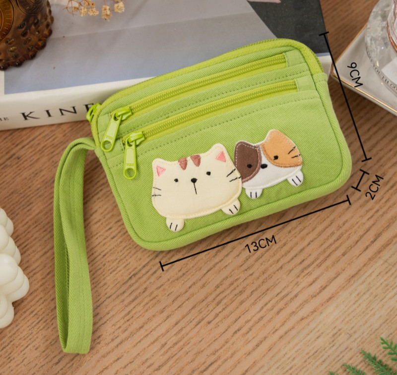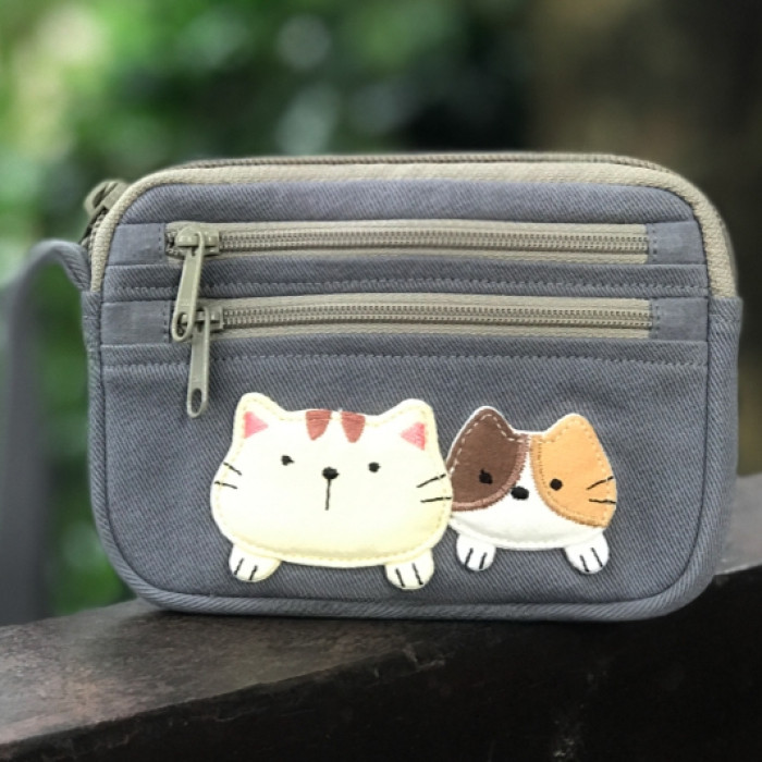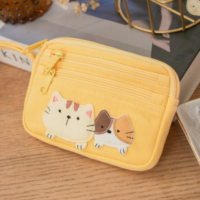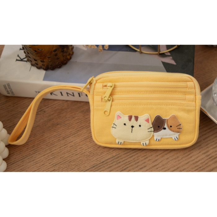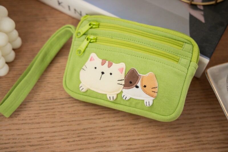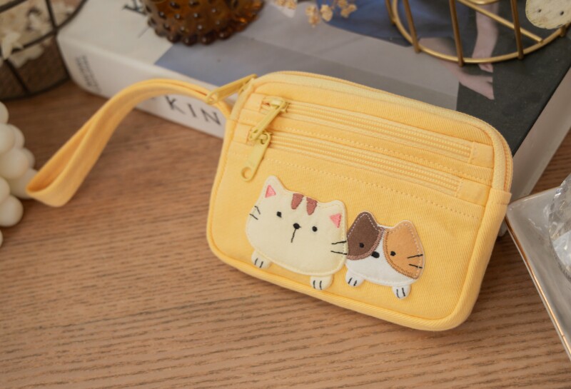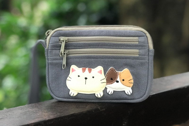 可愛啵啵貓咪 LB25-014 小零錢包多口袋收納包純棉布帆布卡片包