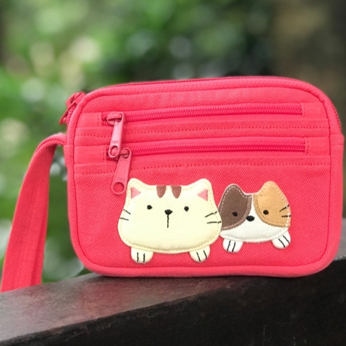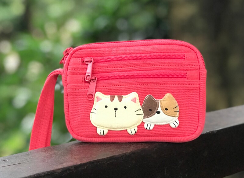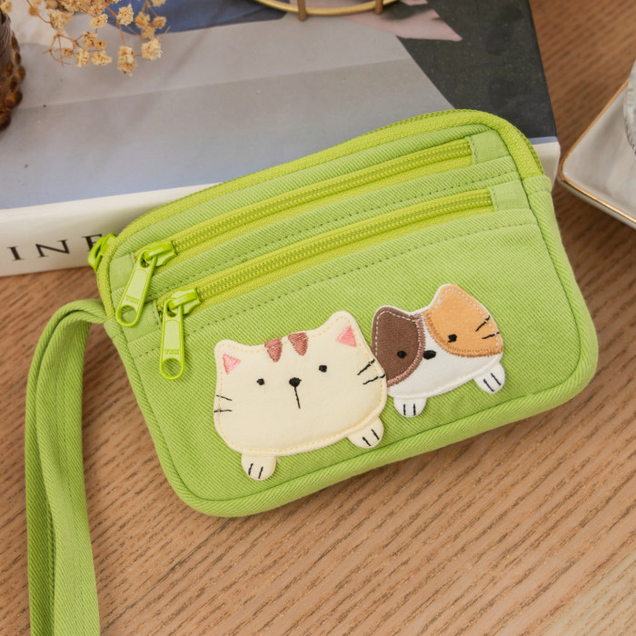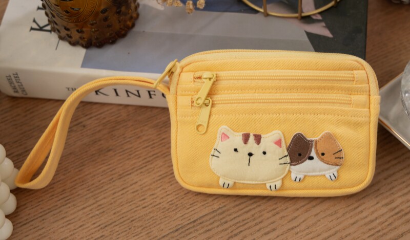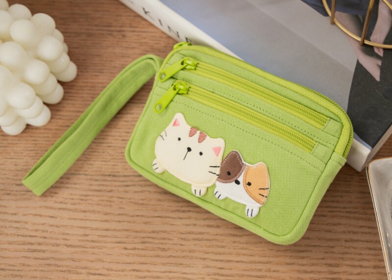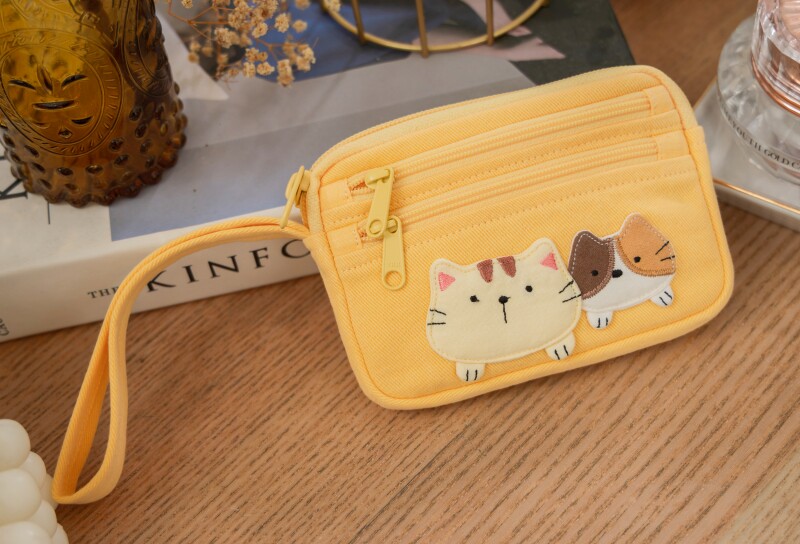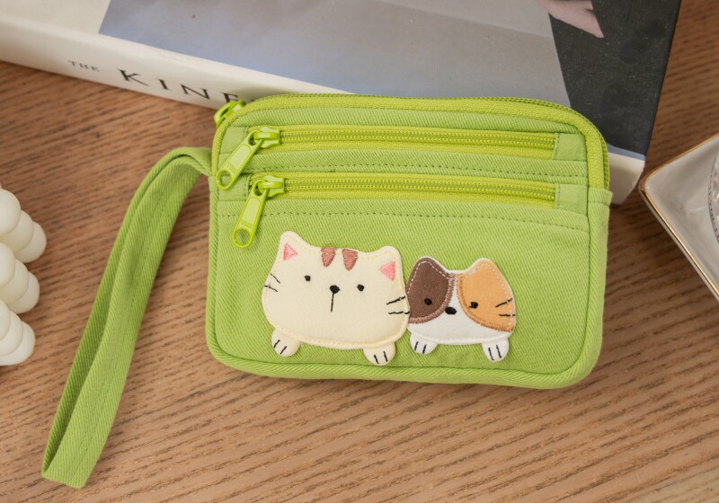 可愛啵啵貓咪 LB25-014 小零錢包多口袋收納包純棉布帆布卡片包
