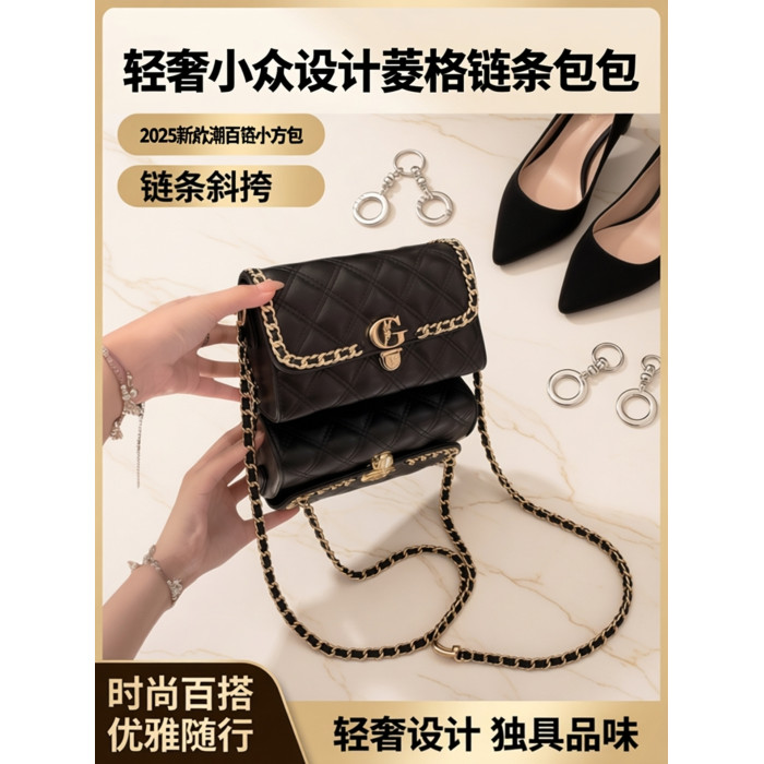 輕奢小衆設計菱格鏈條包包女2025新款潮時尚百搭小方包單肩斜後後背包