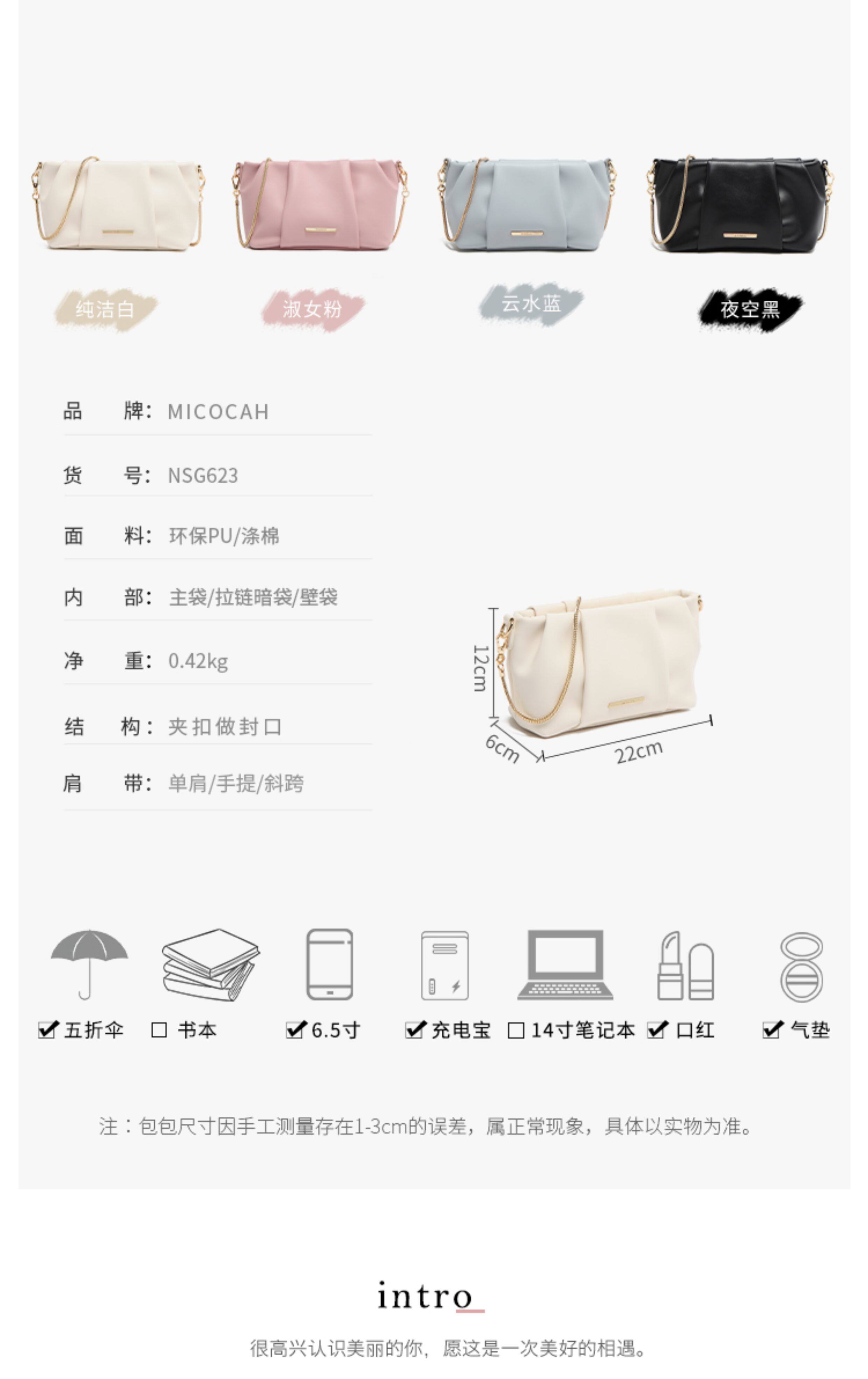 Micocah 包包女斜後後背包輕奢鏈條腋下包2025新款白色小方包小衆復古