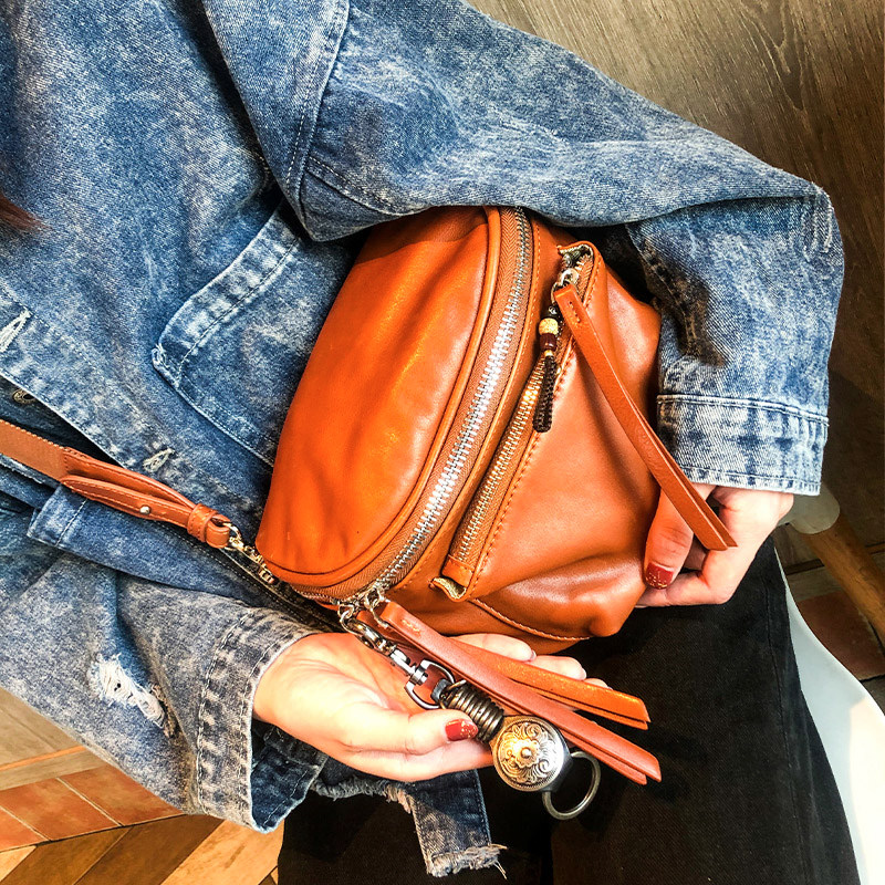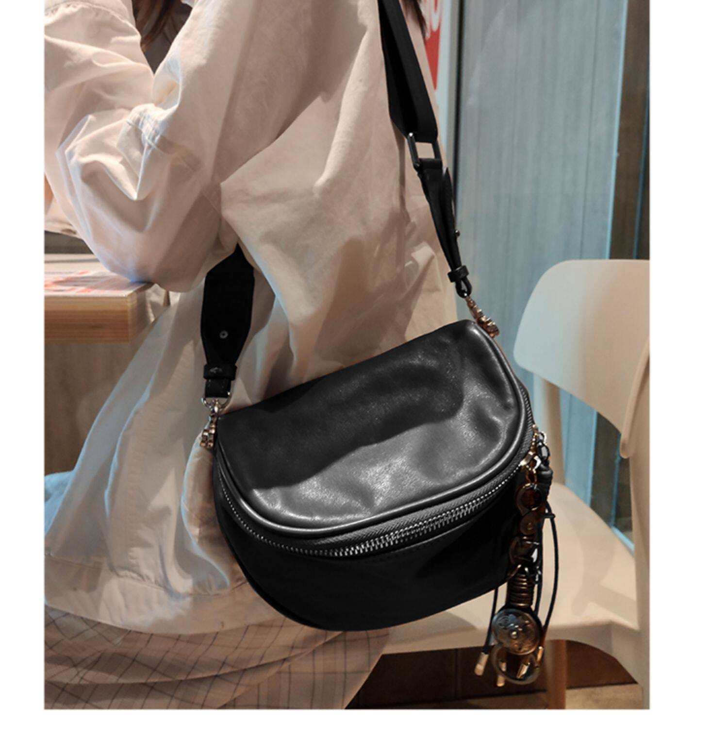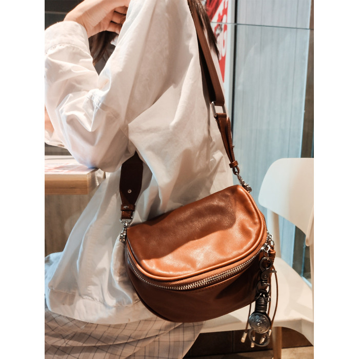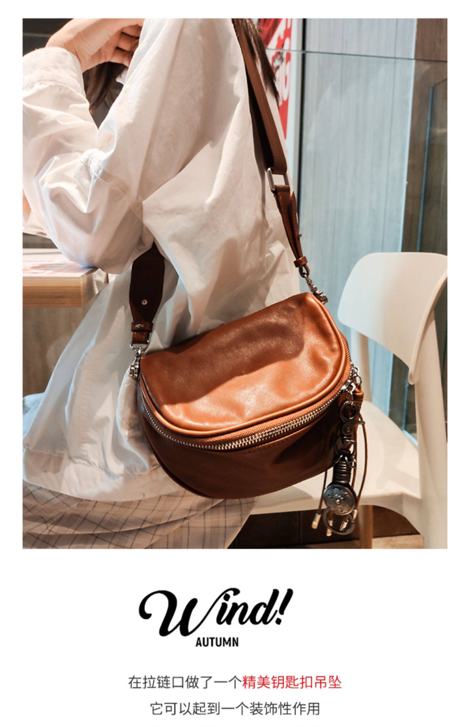 手工馬鞍包女斜後後背包大容量復古牛皮真皮女包2026新款機車包胸包潮