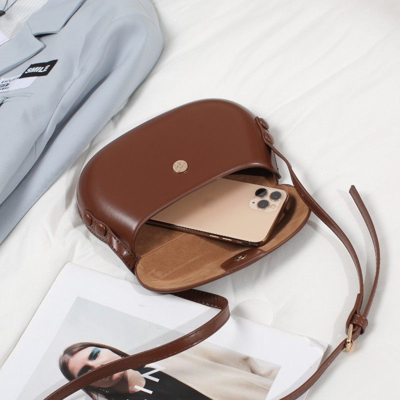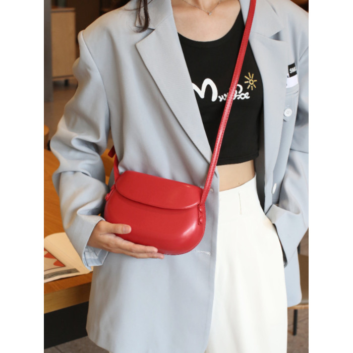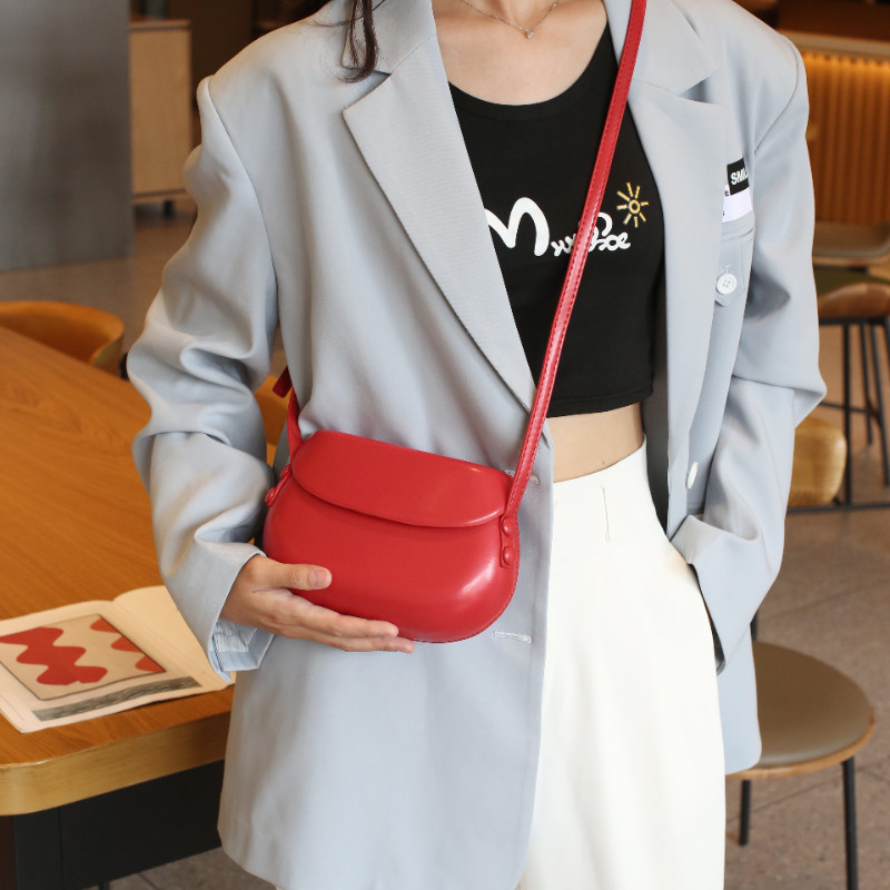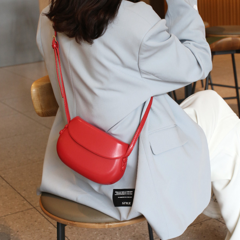 2025新款韓國復古紅色馬鞍包斜背小包包女簡約百搭ins單肩手機包