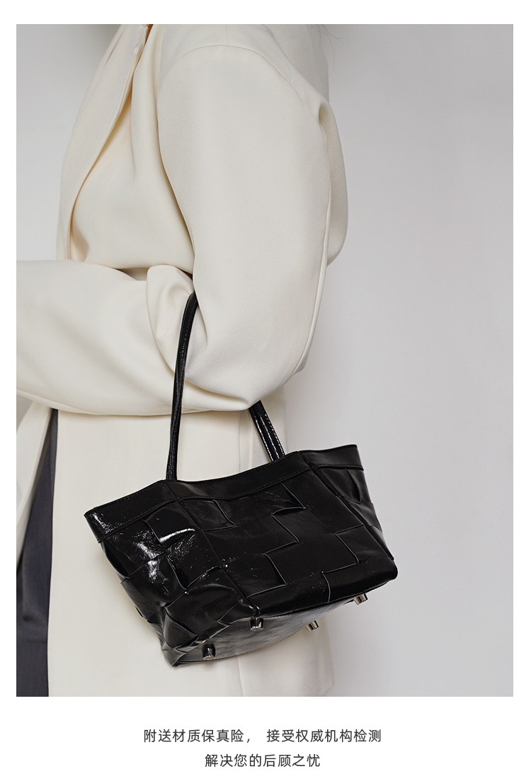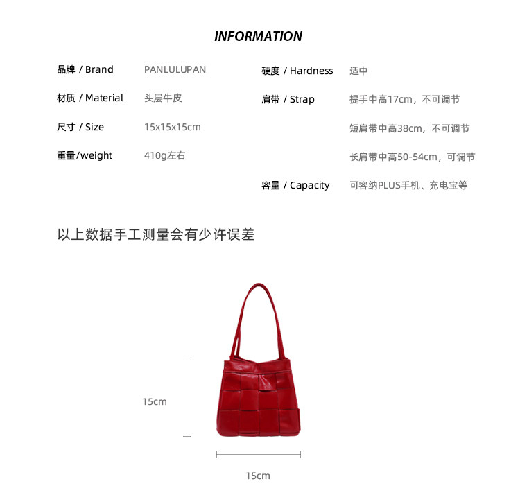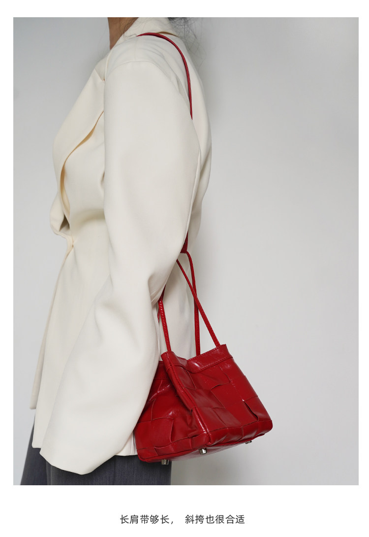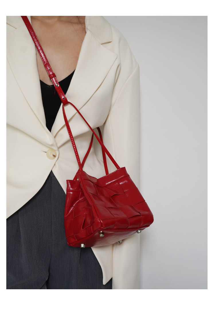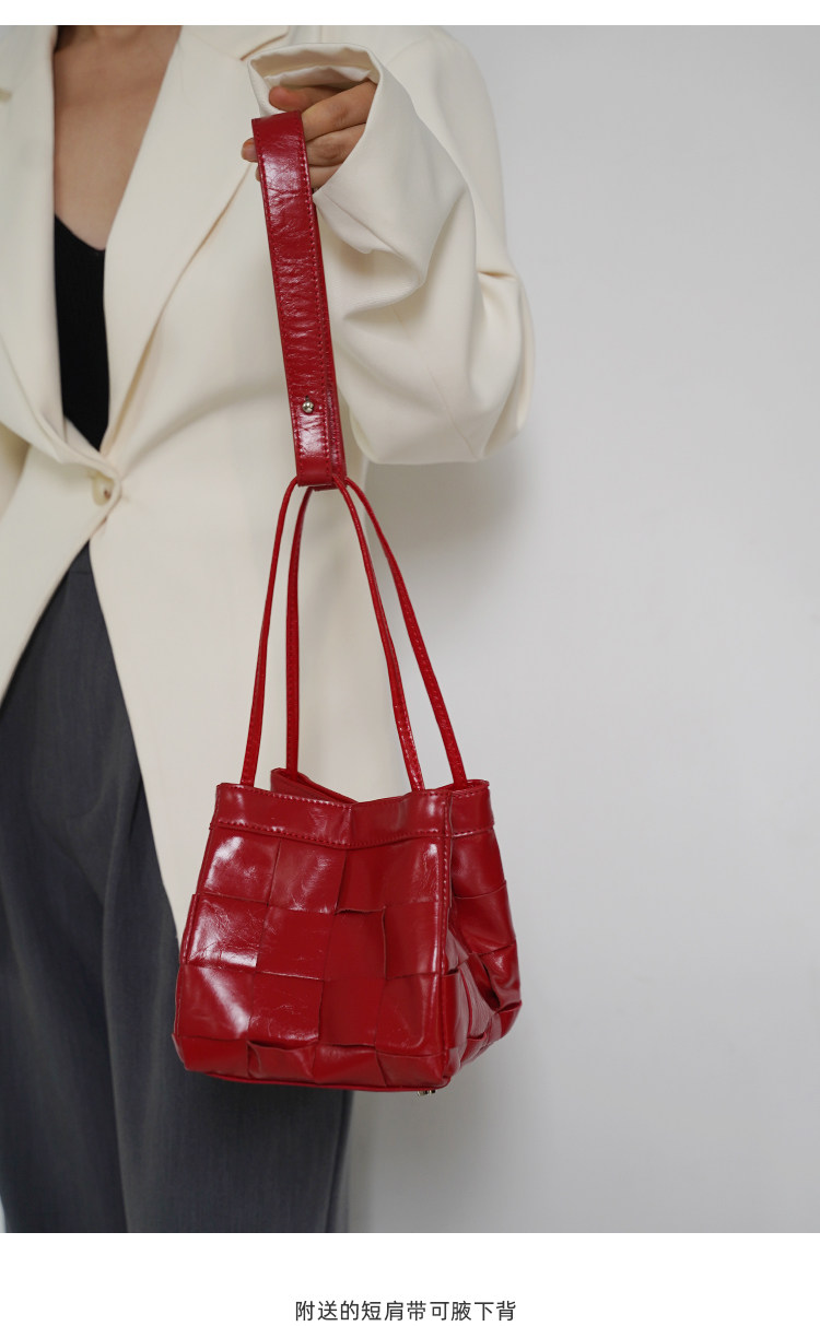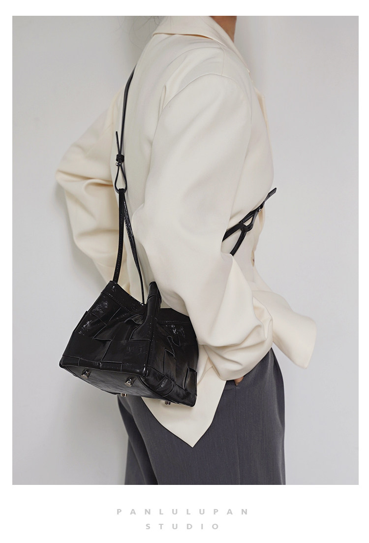 PANLULUPAN小衆設計頭層油蠟牛皮編織手提單肩斜背通勤女小方水桶