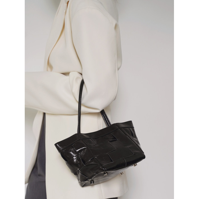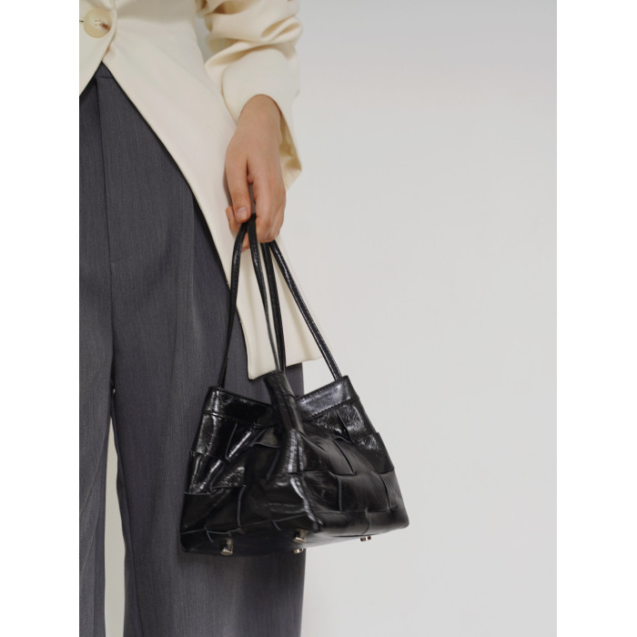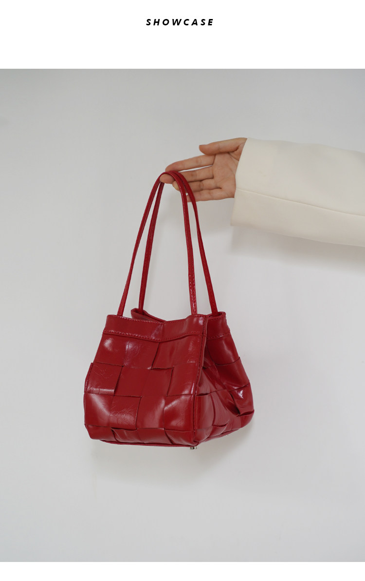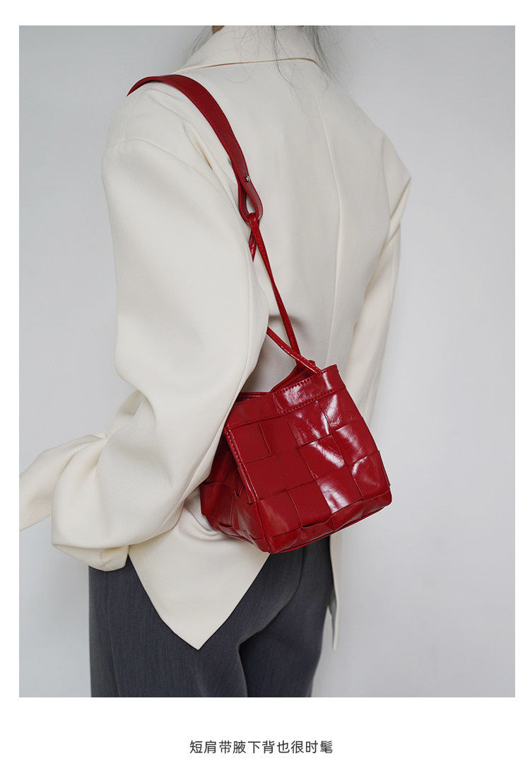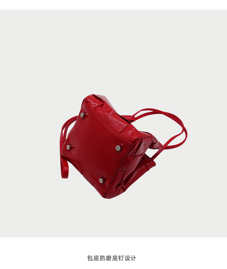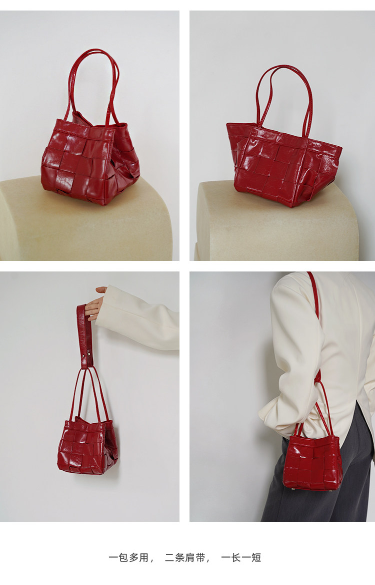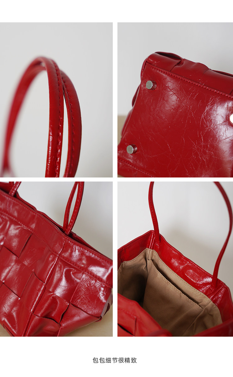 PANLULUPAN小衆設計頭層油蠟牛皮編織手提單肩斜背通勤女小方水桶