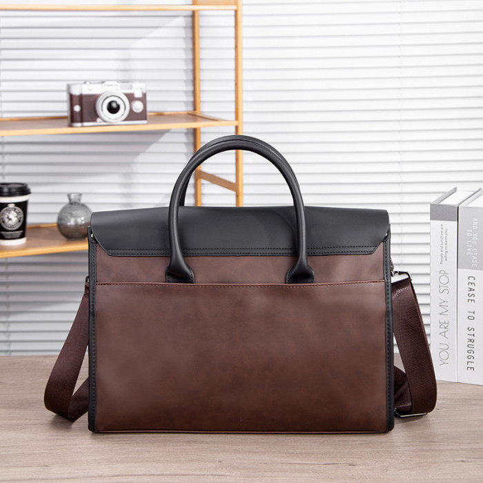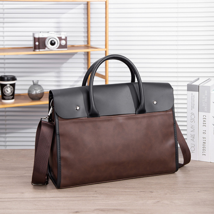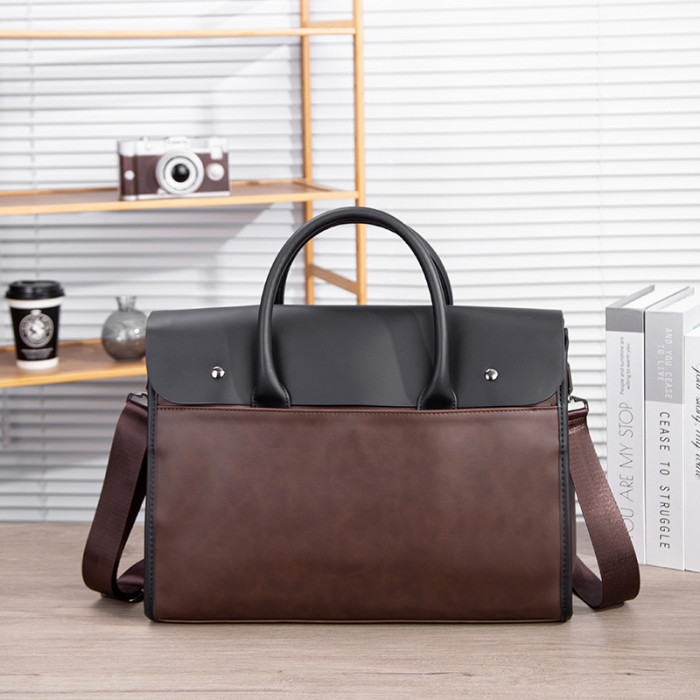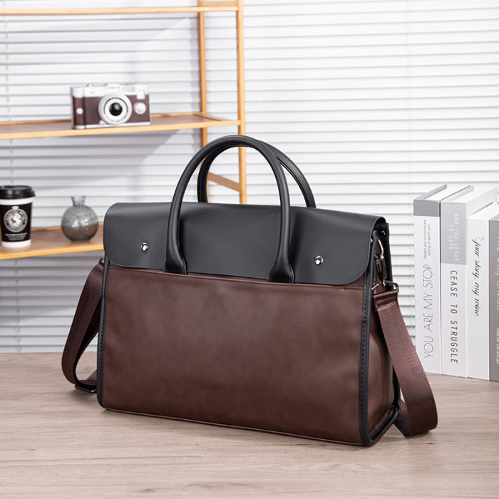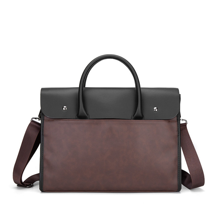 瘋馬皮男包 復古公文包 撞色商務男士手提包 橫款單肩斜背電腦包