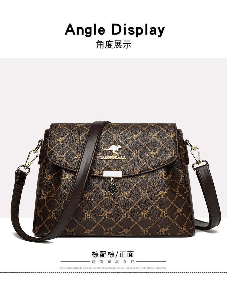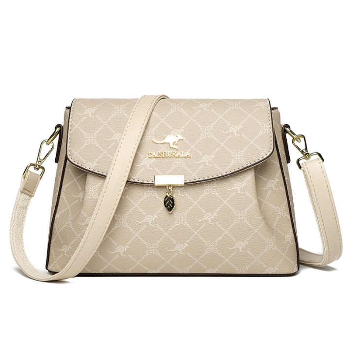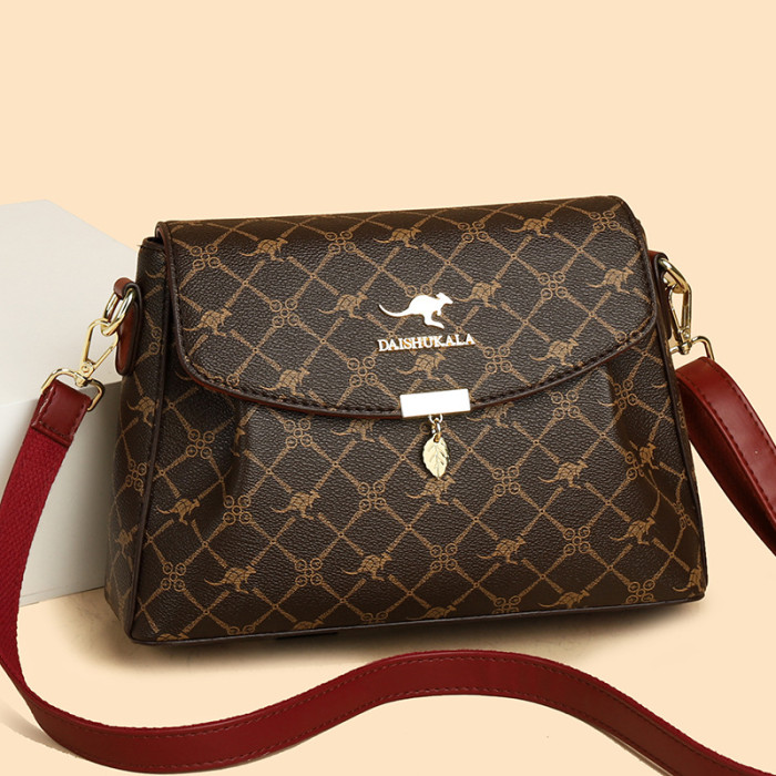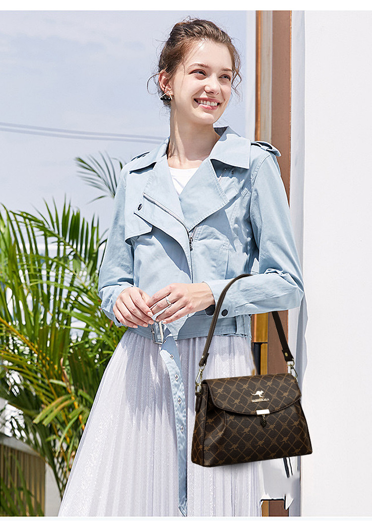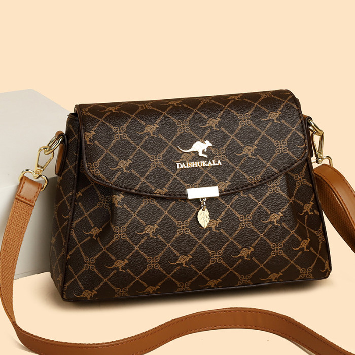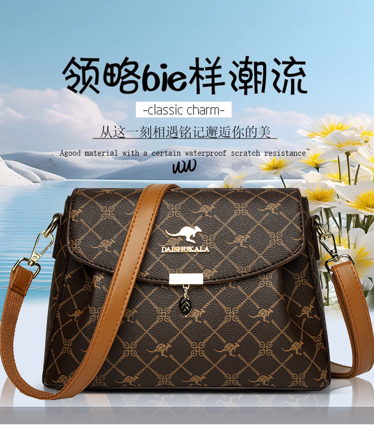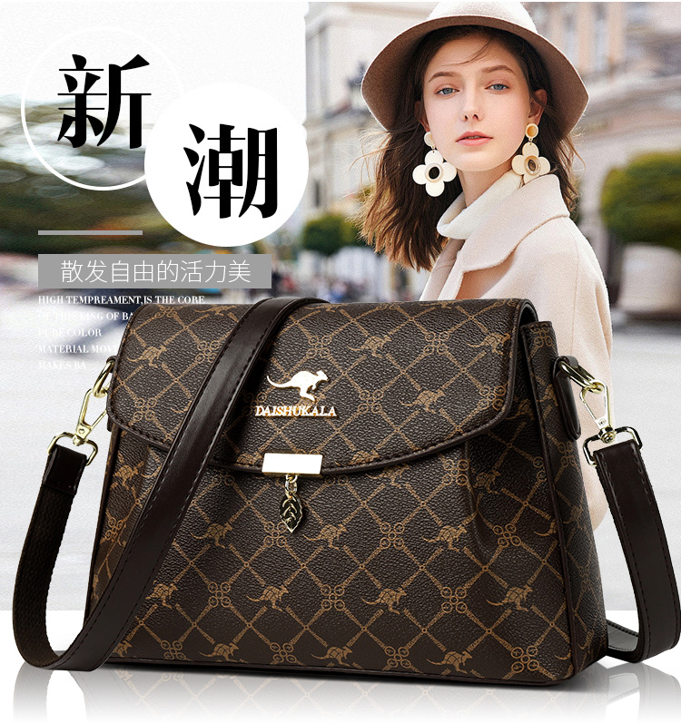 包包女包2025新款歐美時尚手提中年媽媽包百搭軟皮女士印花斜後後背包