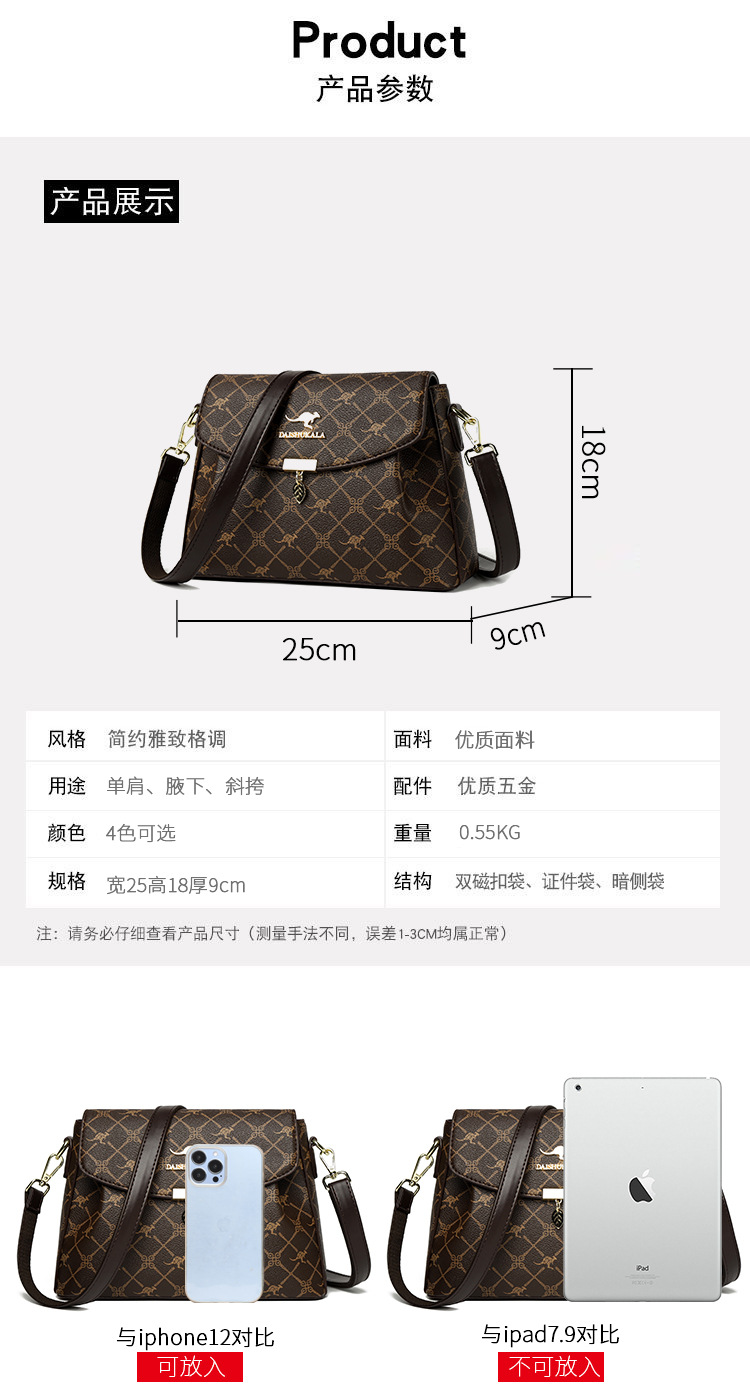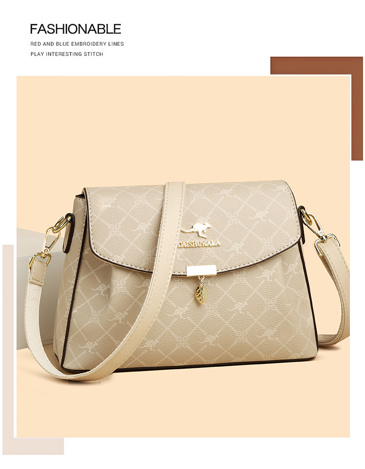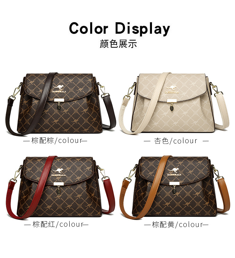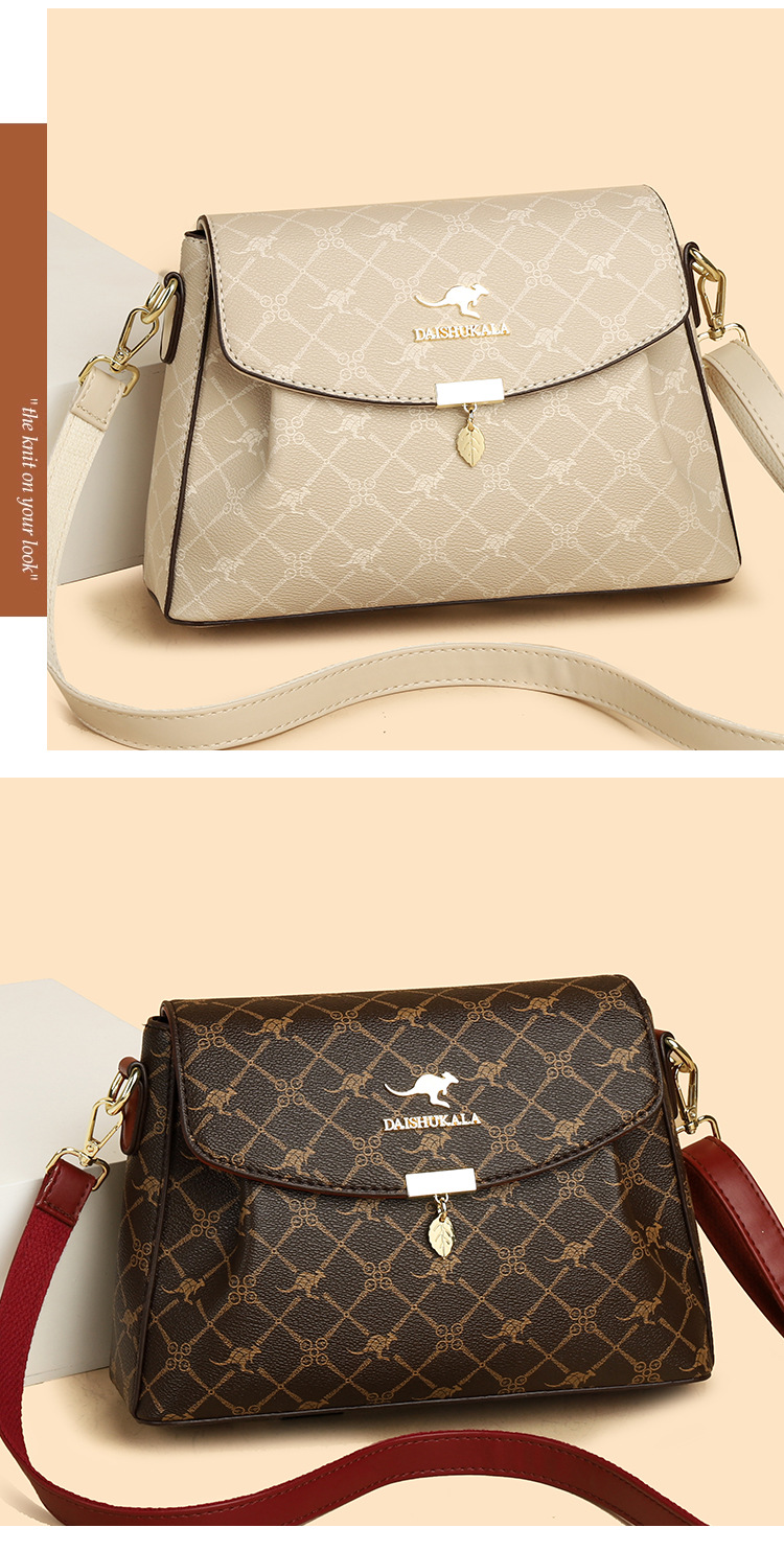 包包女包2025新款歐美時尚手提中年媽媽包百搭軟皮女士印花斜後後背包