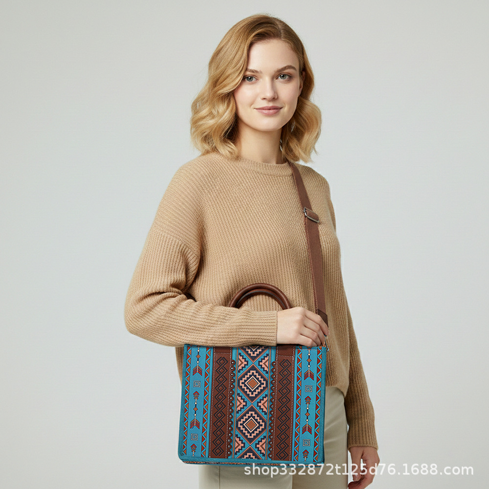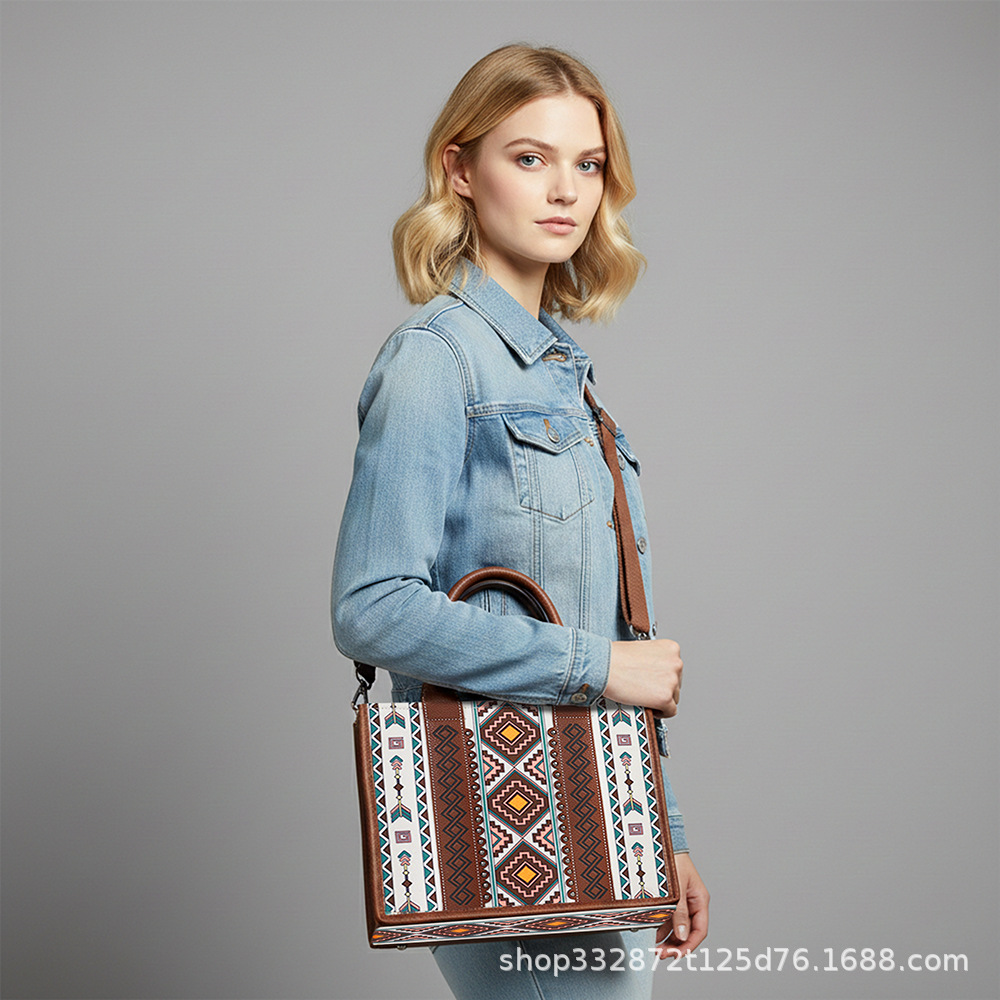 2025歐美波西米亞個性菱格大容量女包斜背托特包獅嶺包包