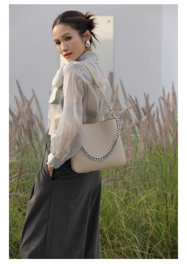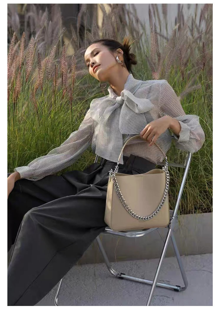 百豆水桶包2026新款牛皮鏈條通勤大容量單肩斜背腋下女包BD5743-1
