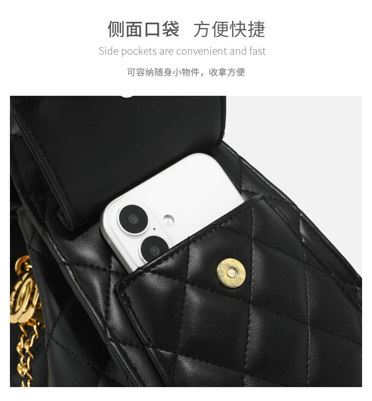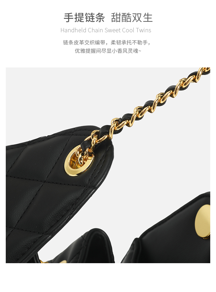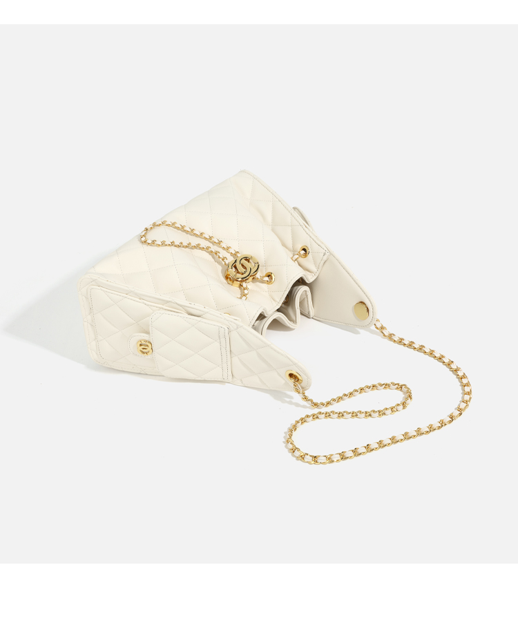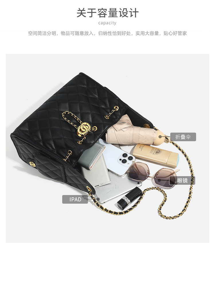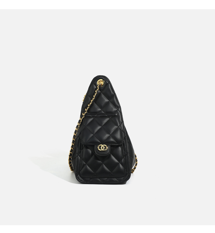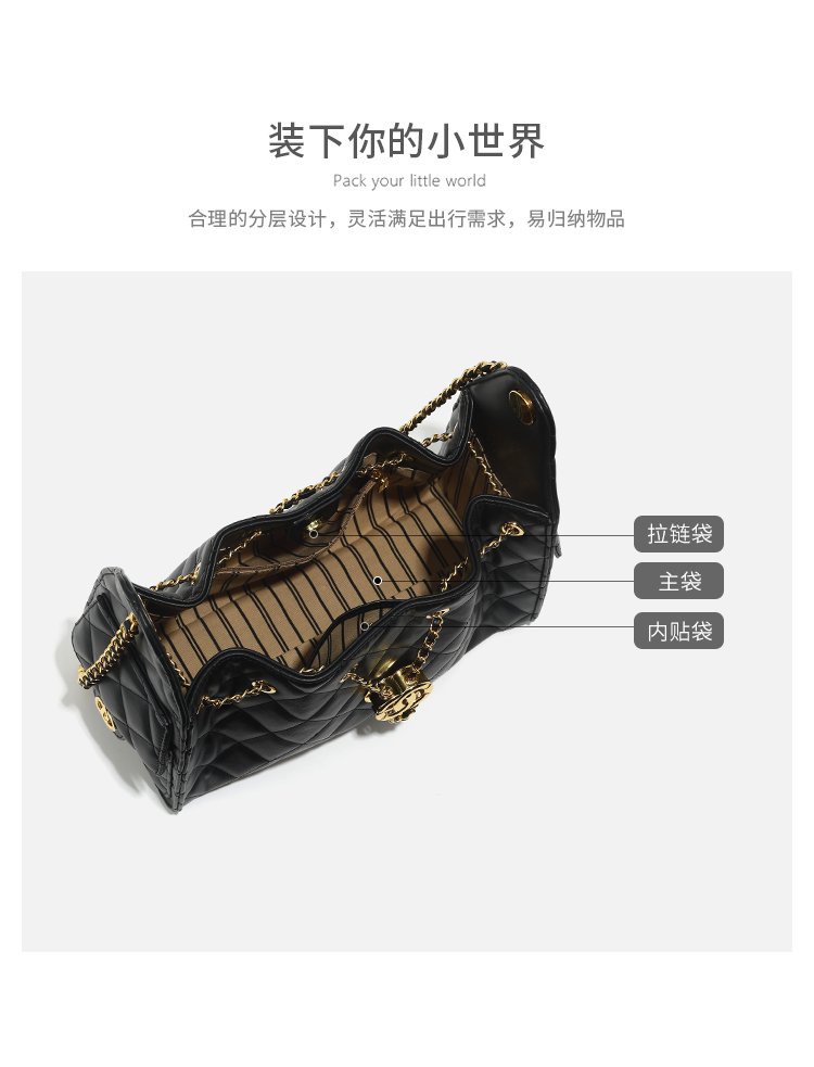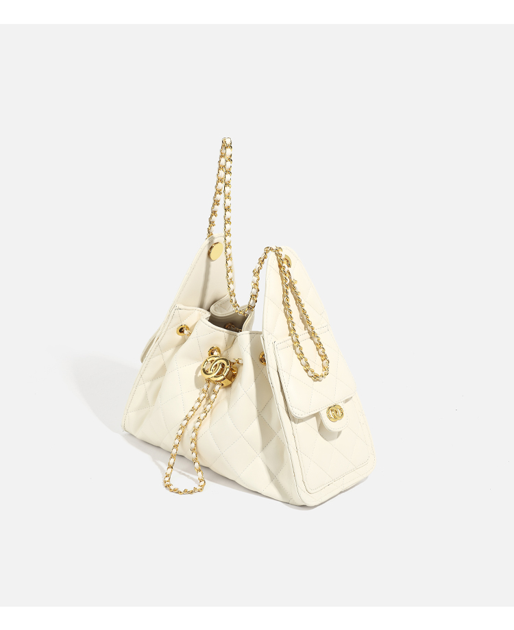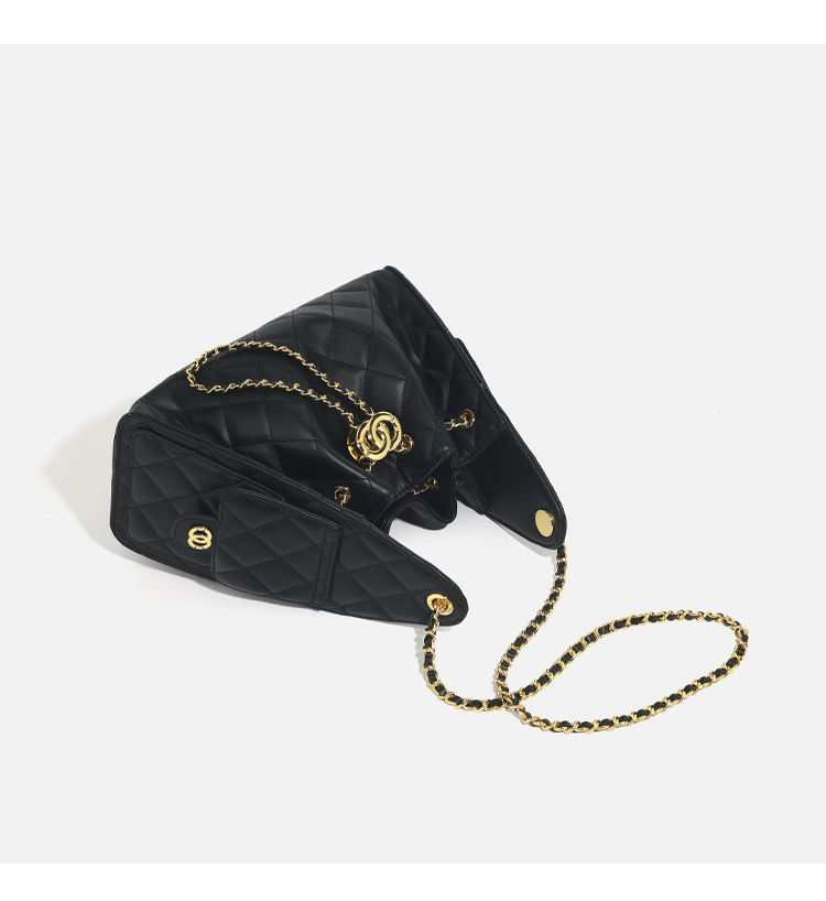 2025新款小香風女包bag黑金牛皮抽繩包hobo腋下包鏈條單肩托特包