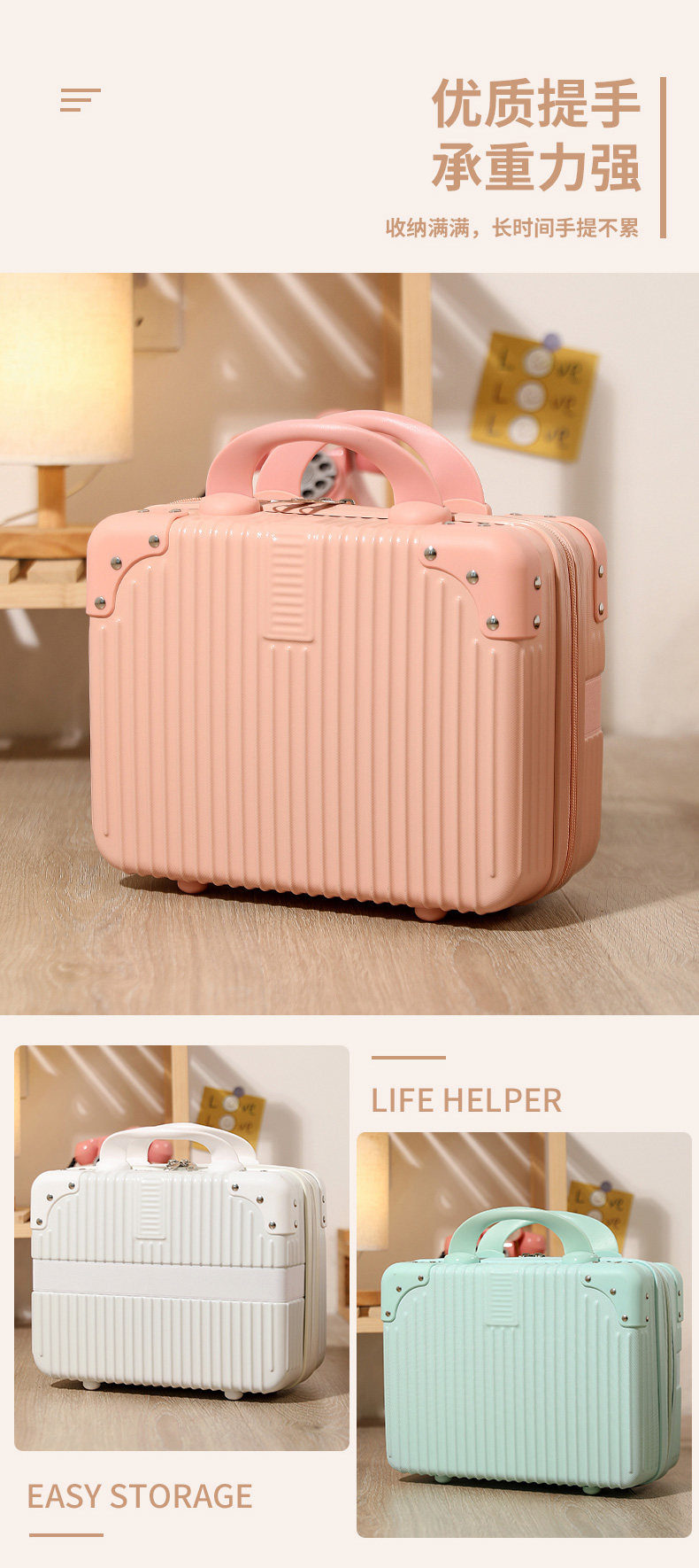 手提箱化妝箱女小箱子14寸大容量密碼箱收納儲物箱小箱子可掛大箱