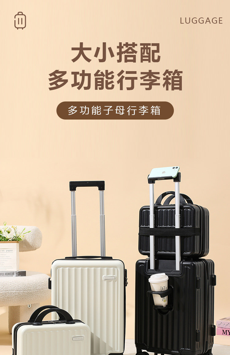 行李箱2025新款拉桿箱20寸18寸子母箱旅行密碼登機皮箱飛機免托運
