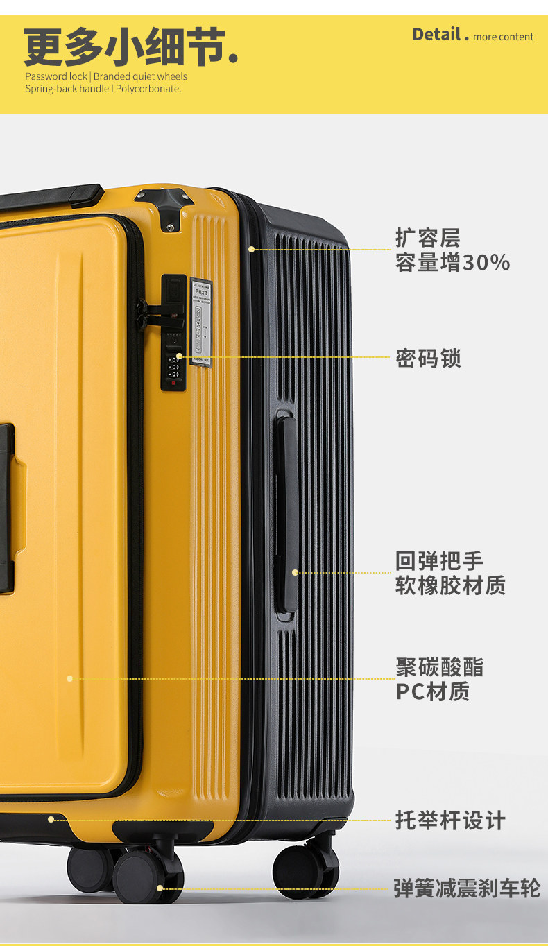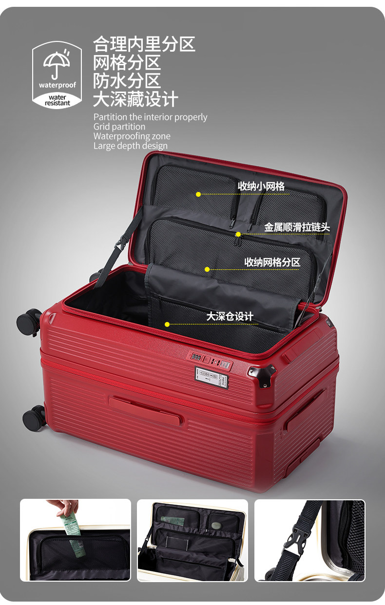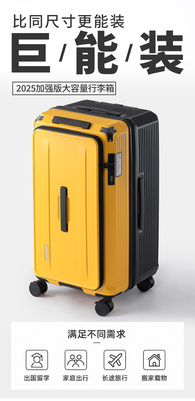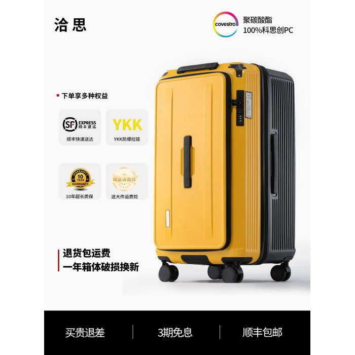【新品】洽思大容量深倉行李箱女結實耐用拉桿箱子男側開口可擴展