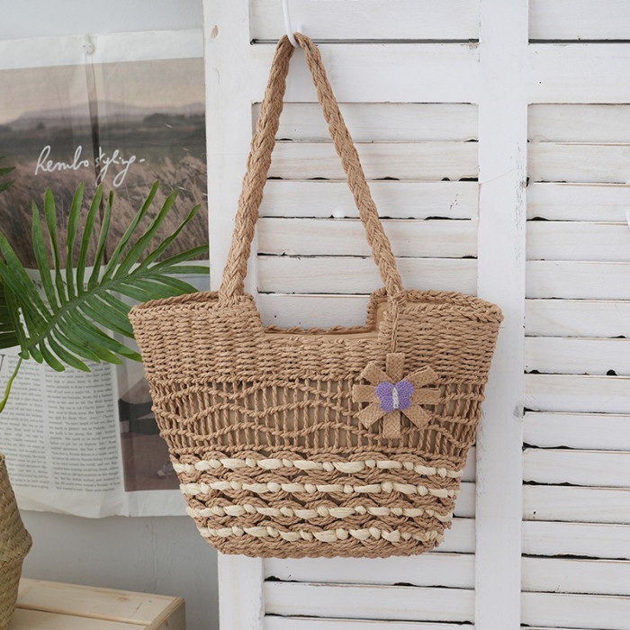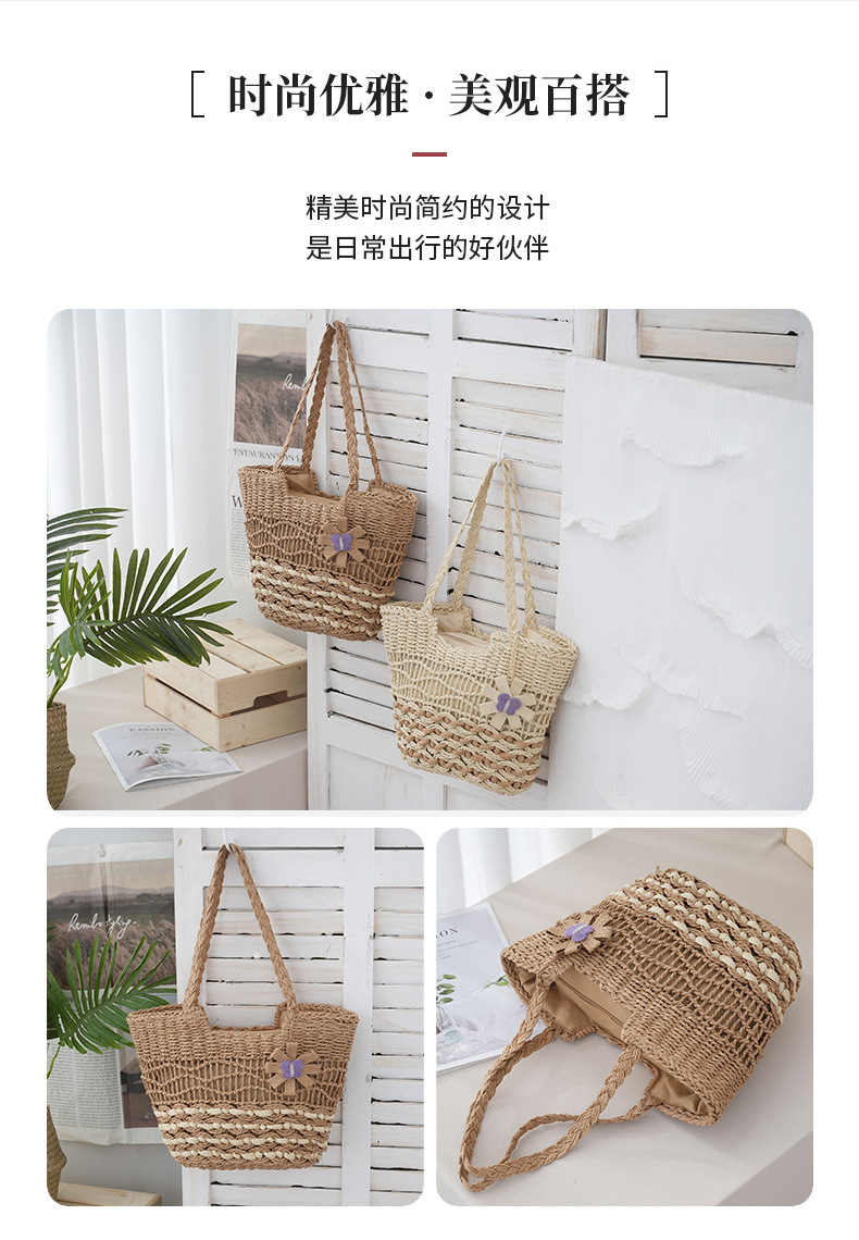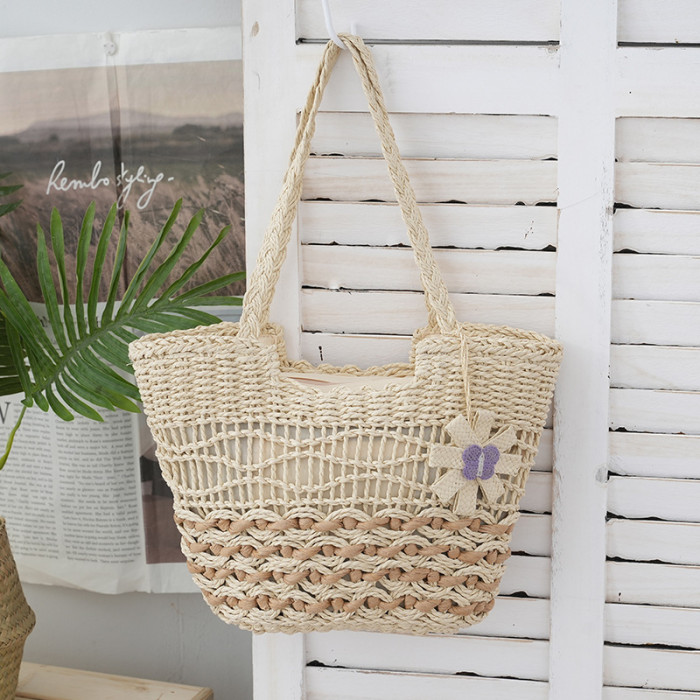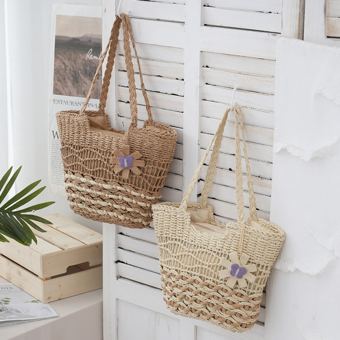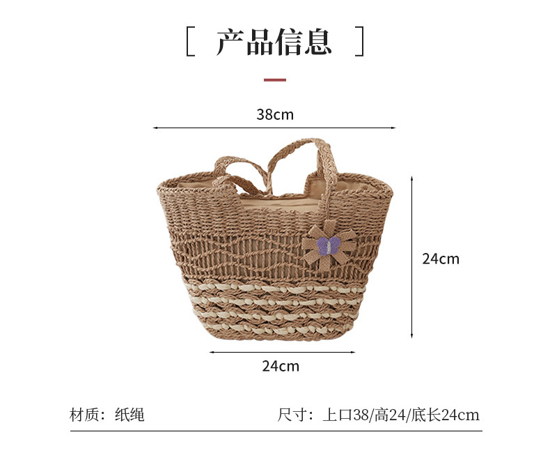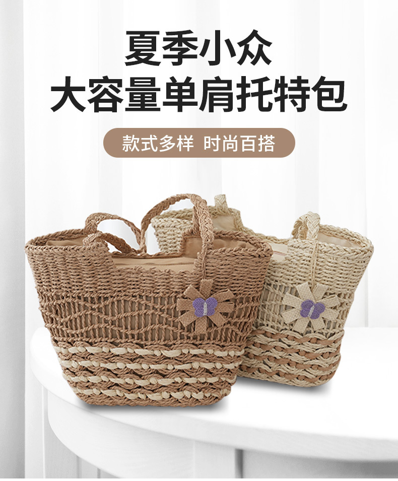 2025新款蝴蝶花朵撞色紙繩編織包單肩草編包休閒女士包沙灘度假