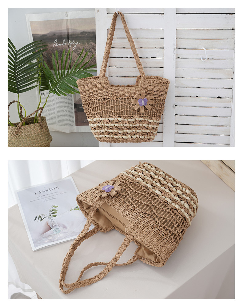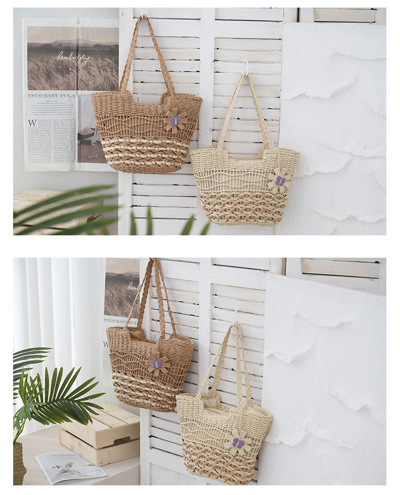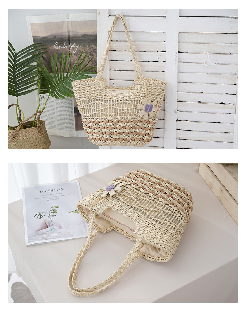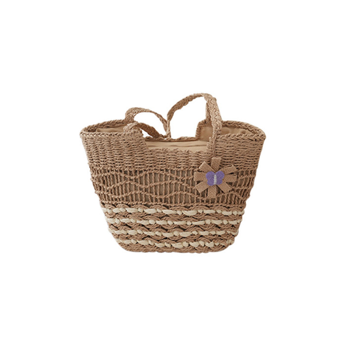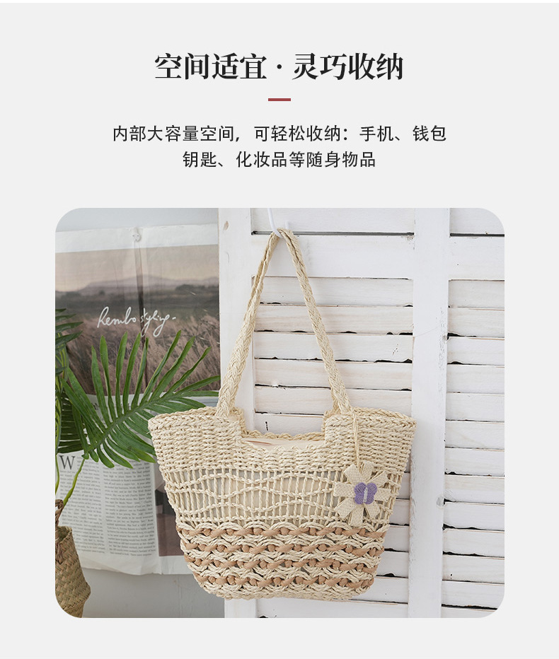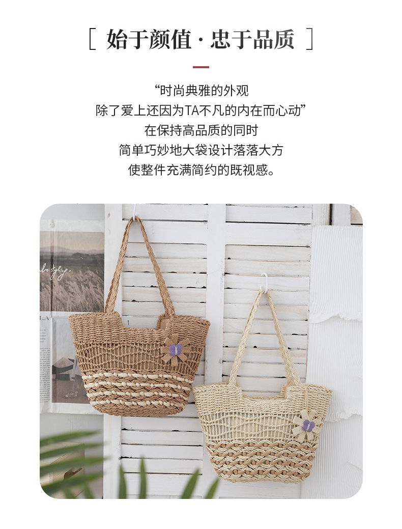 2025新款蝴蝶花朵撞色紙繩編織包單肩草編包休閒女士包沙灘度假