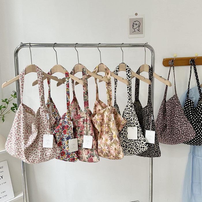 韓國東大門新款清新碎花帆布包女出街百搭腋下包單肩包大容量女包