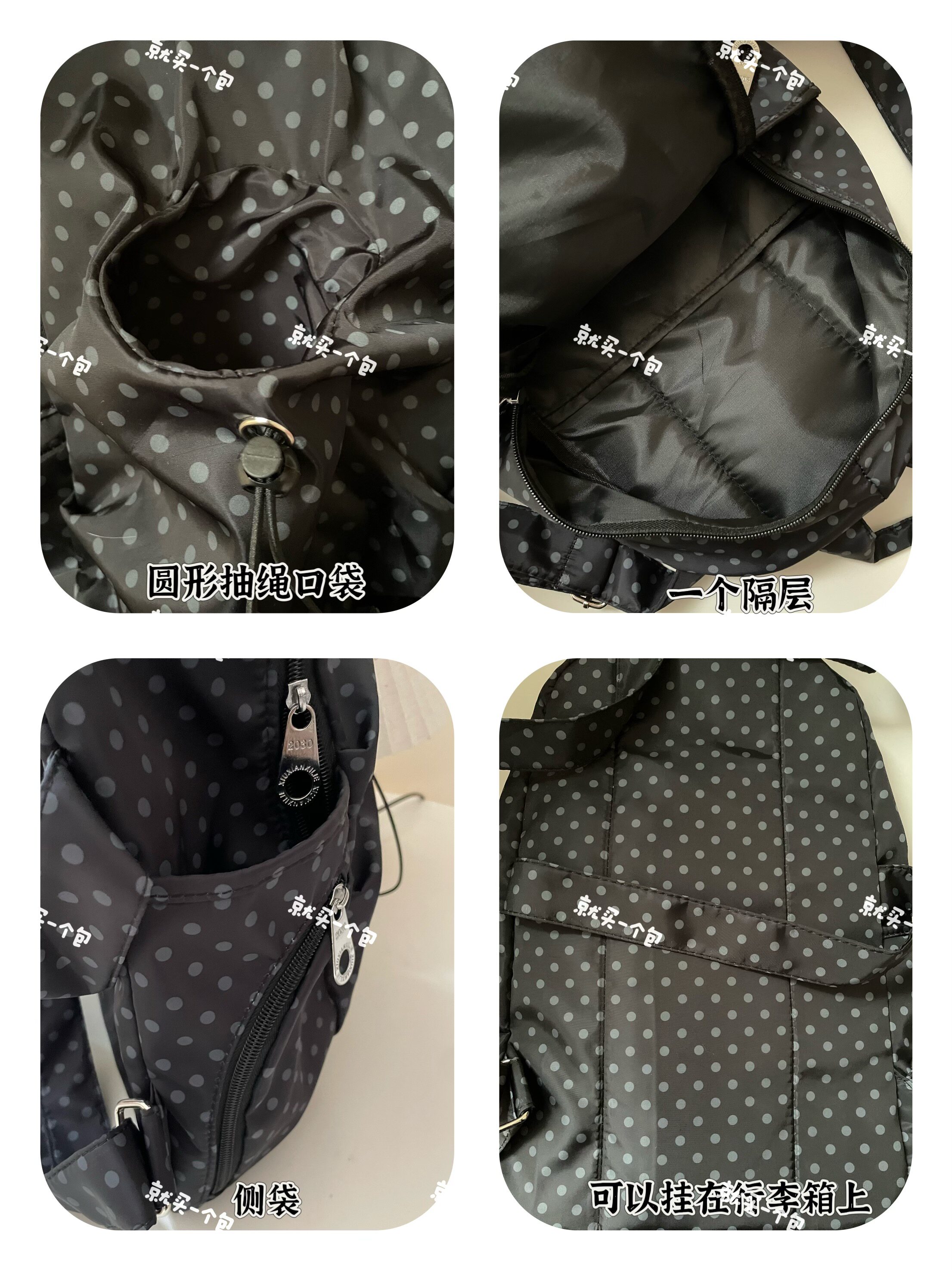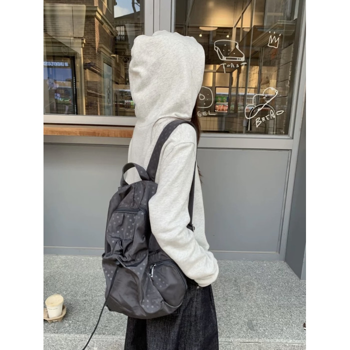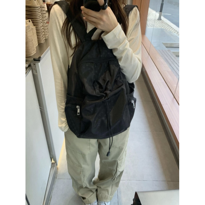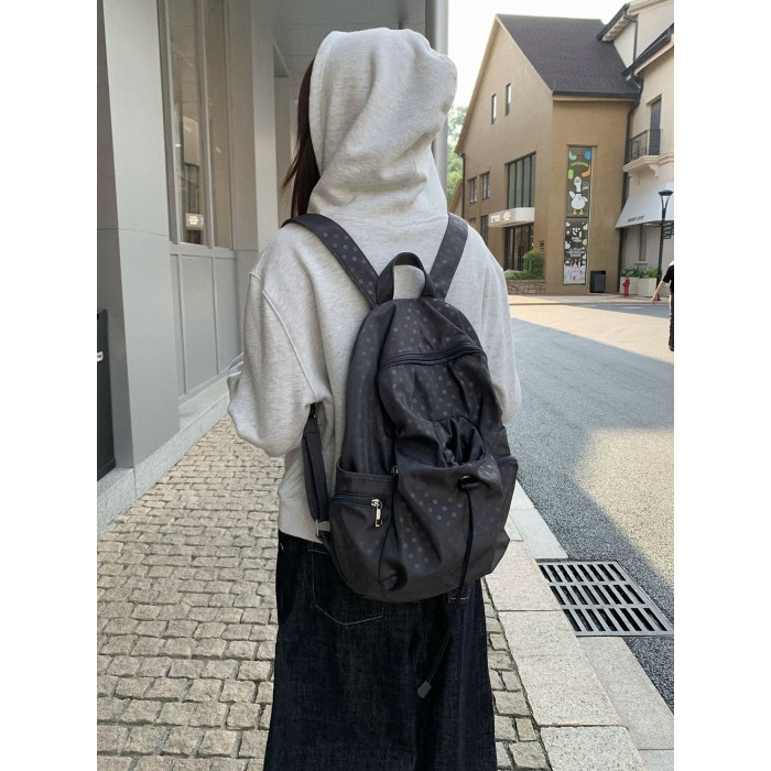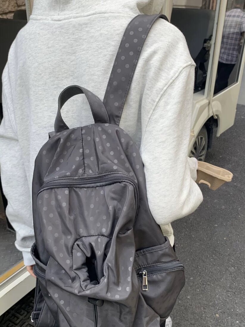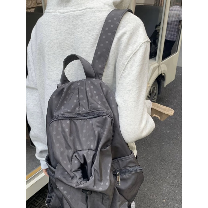 2025韓系新款波點多口袋書包女休閒學院風後後背包高中學生雙肩包
