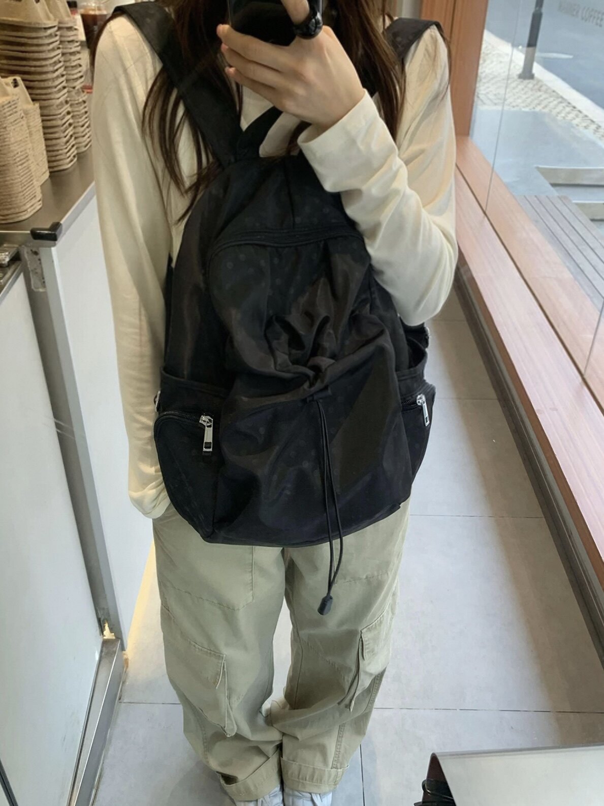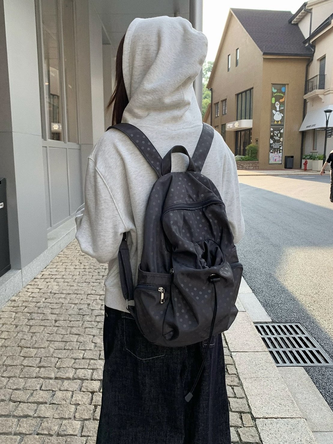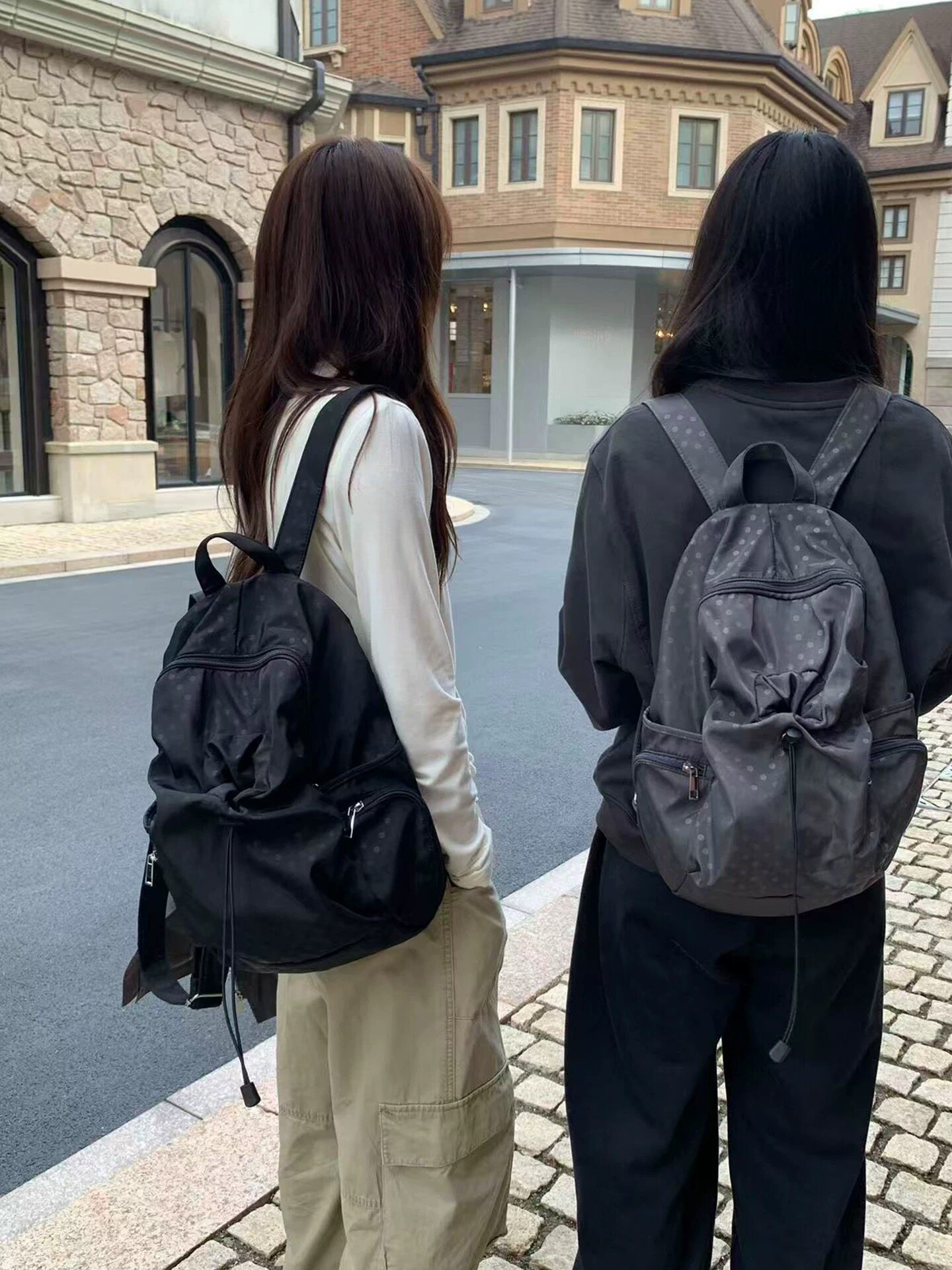 2025韓系新款波點多口袋書包女休閒學院風後後背包高中學生雙肩包