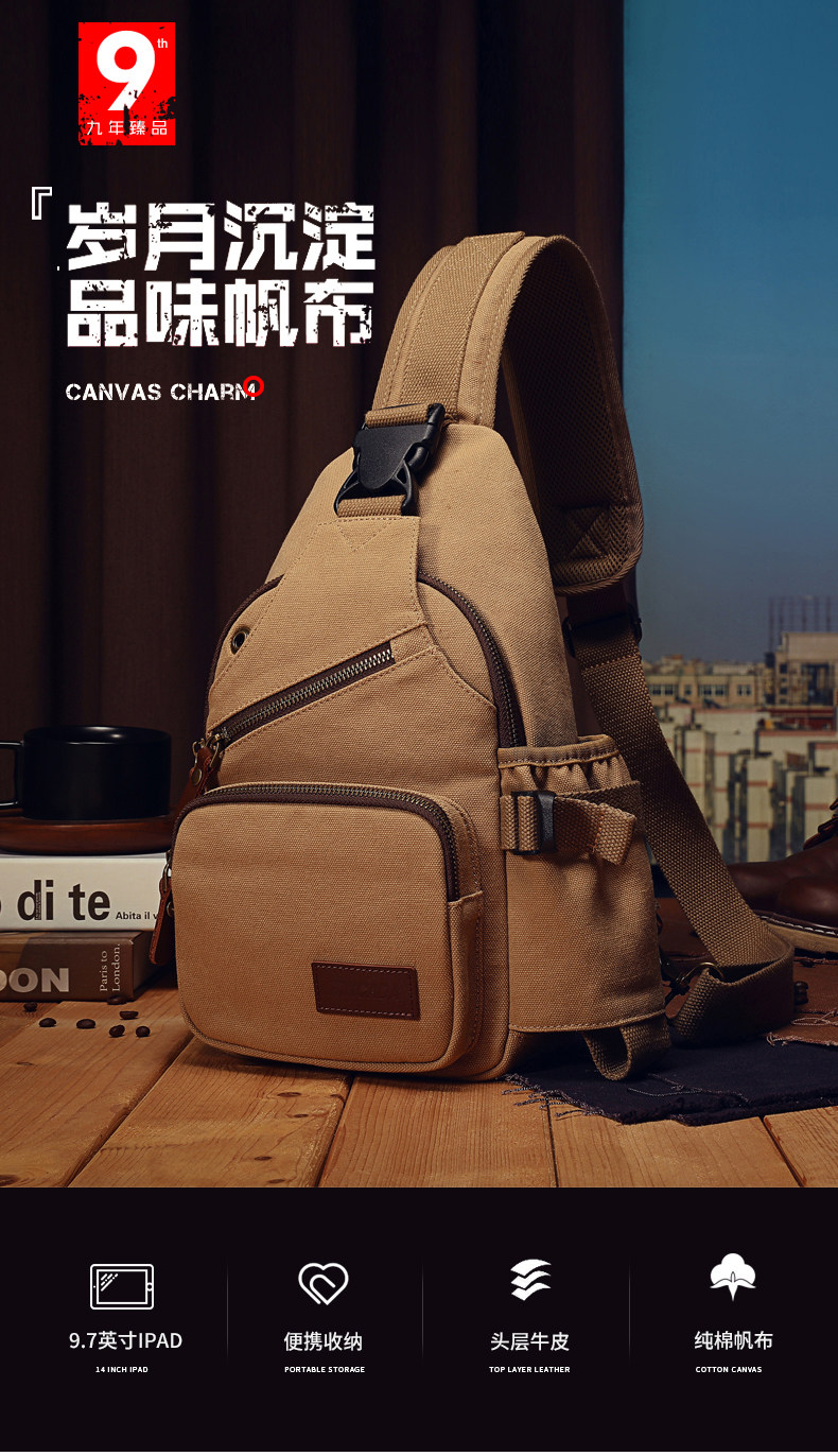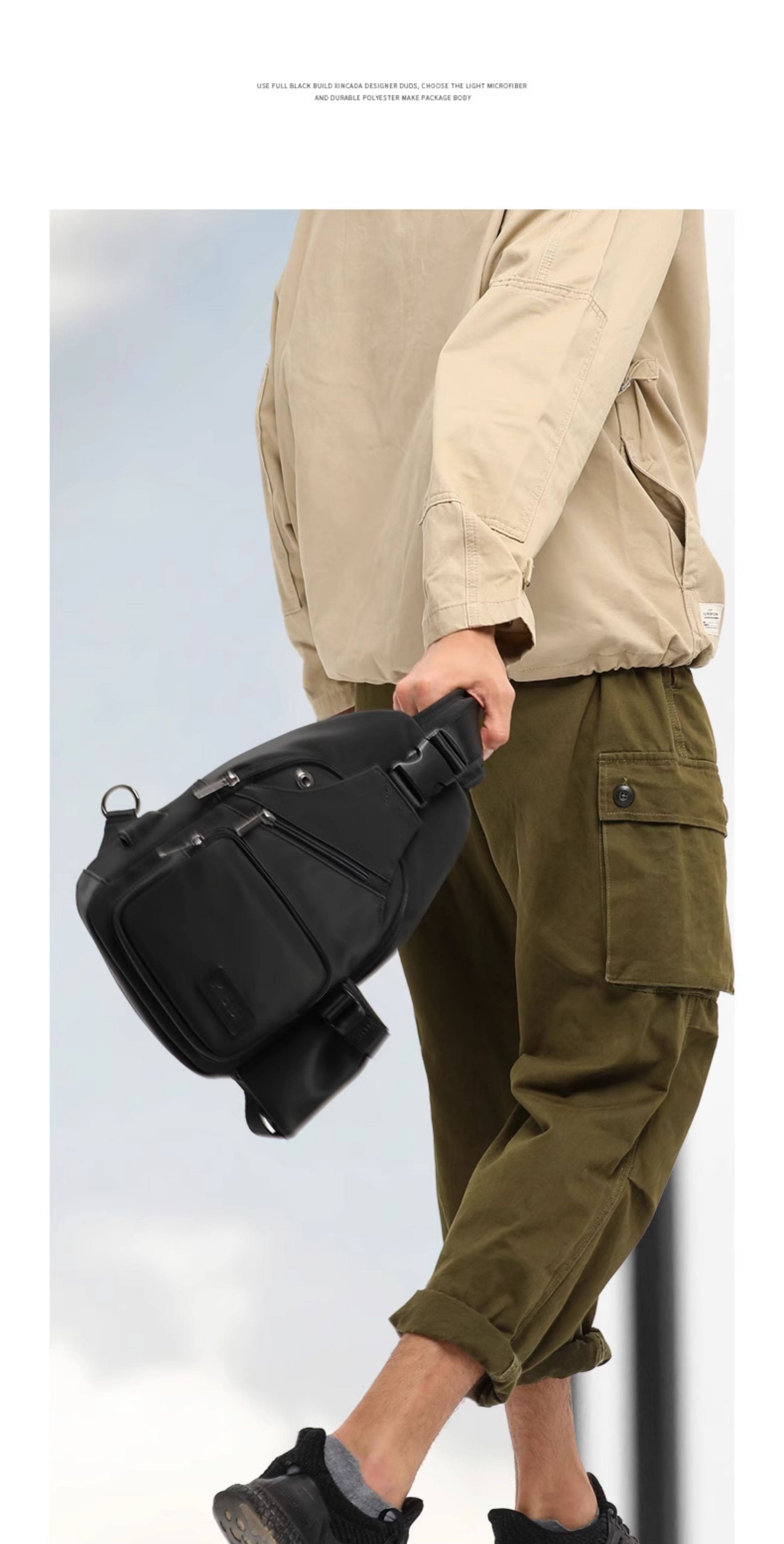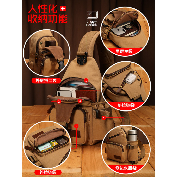 運動休閒男包包胸包潮牌單肩斜背後後背包多功能帆布小包潮流腰包男士