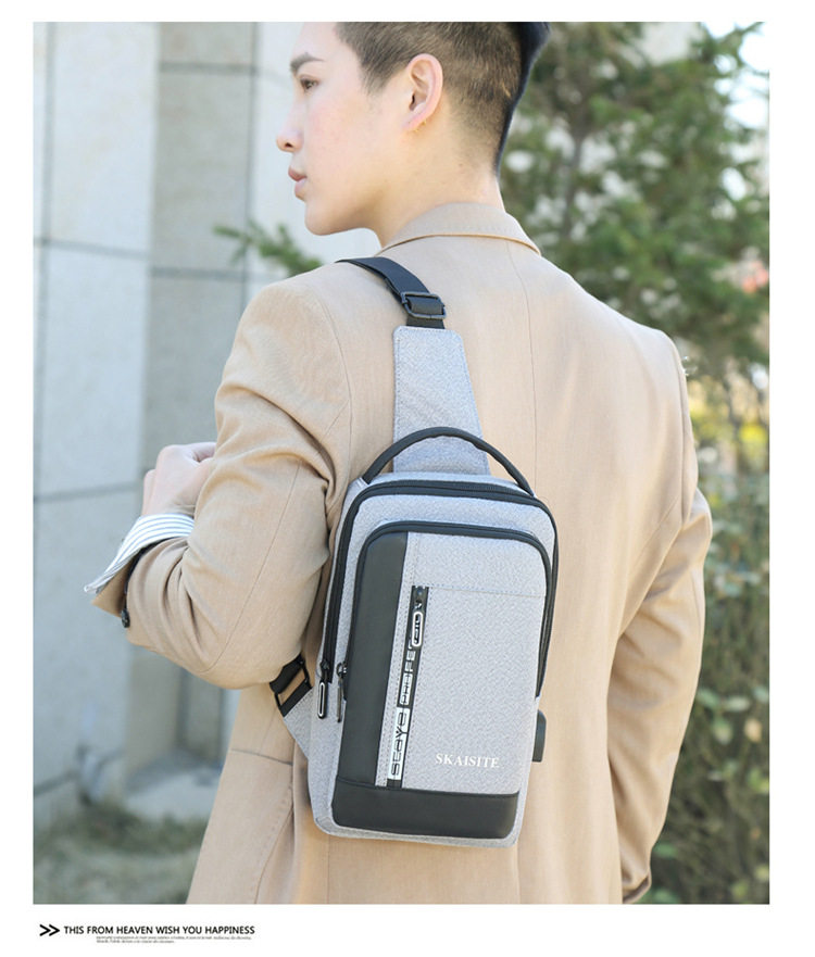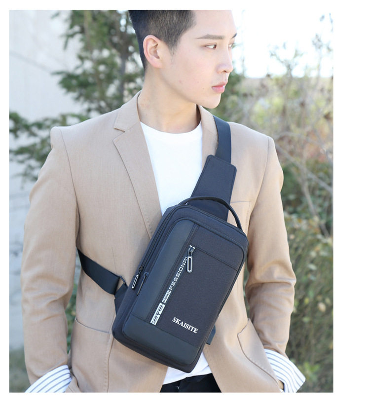 單肩包男斜後後背包潮牌胸包男士包包2024新款潮前休閒小後後背包時尚男包