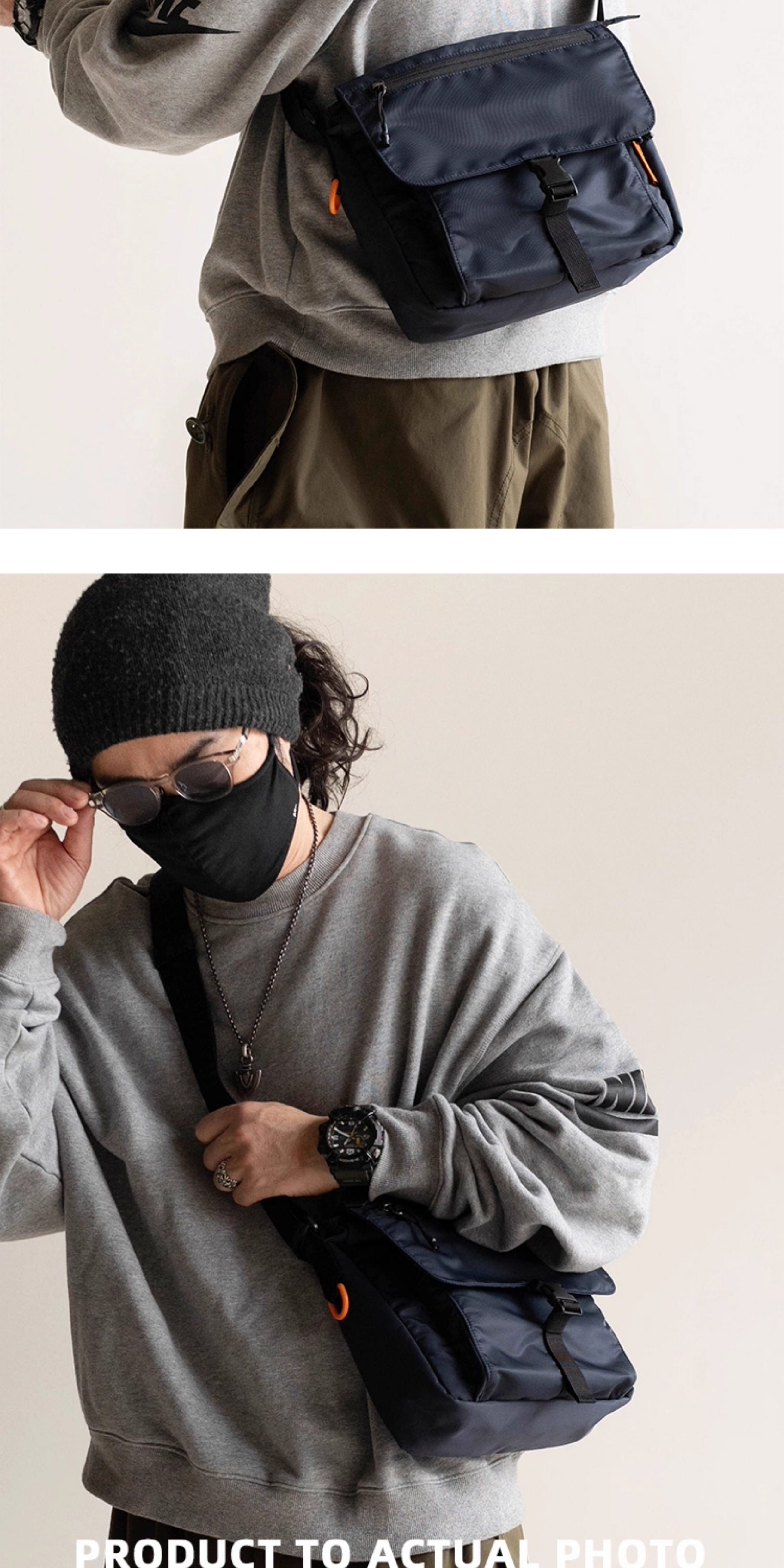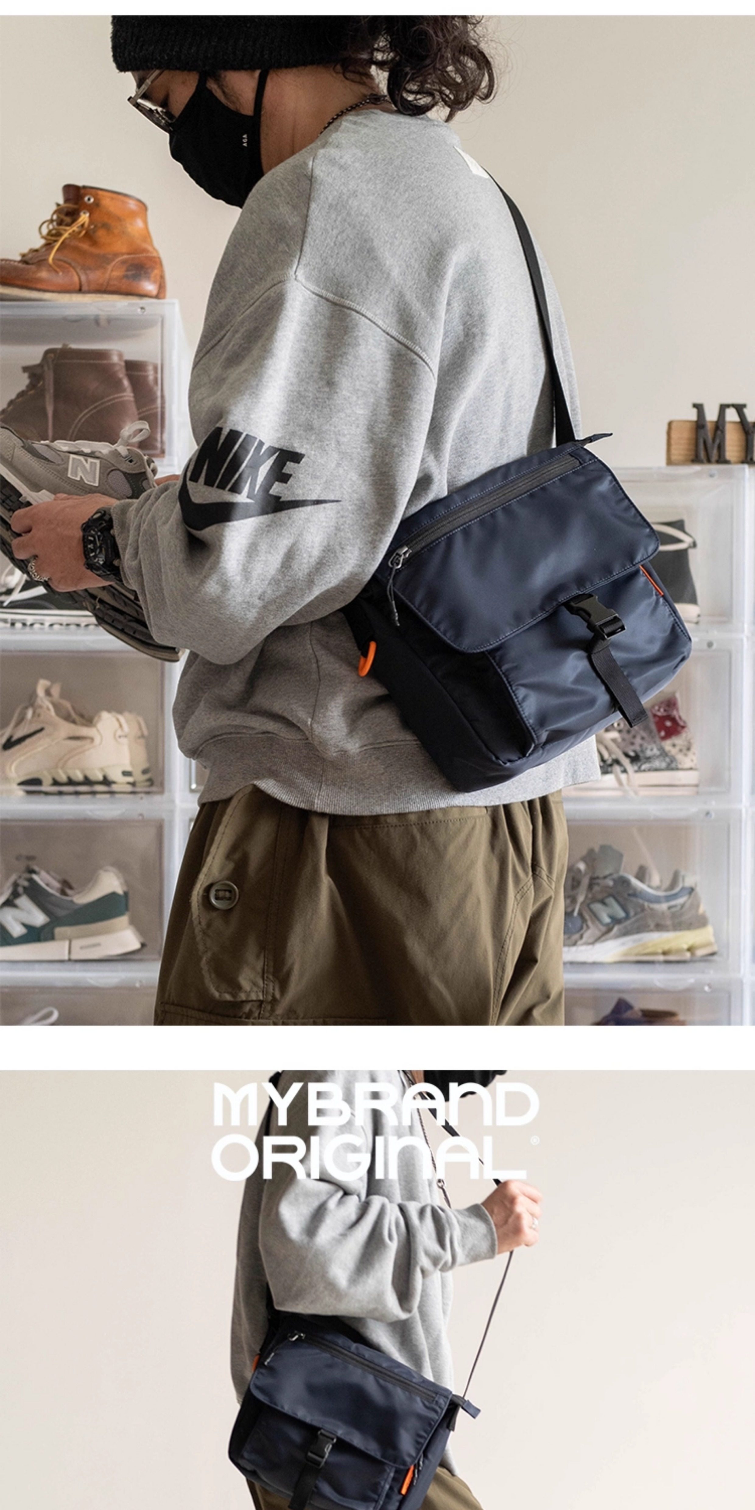MYBRANDORIGINAL 時尚簡約多口袋斜後後背包男士質感通勤包5L M23-9