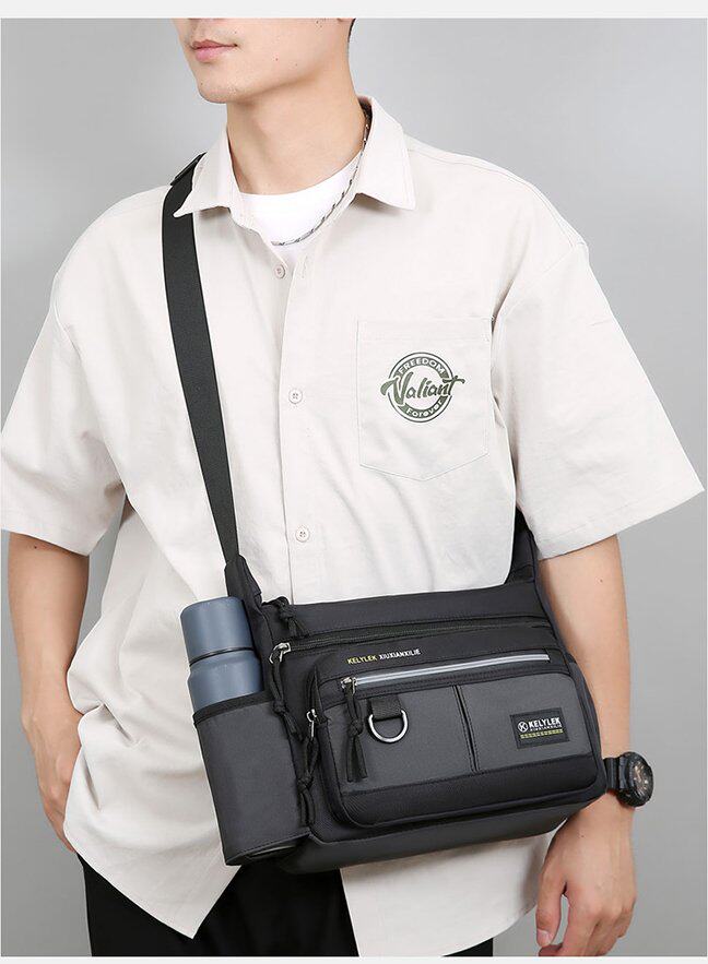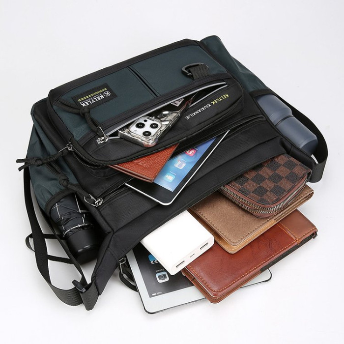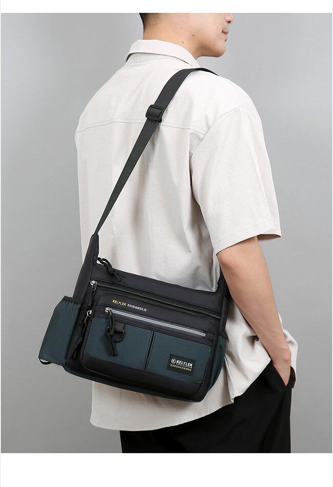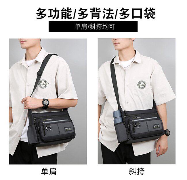 商務單肩包男包牛津布包斜後後背包公文包大容量多功能男士後後背包旅行包
