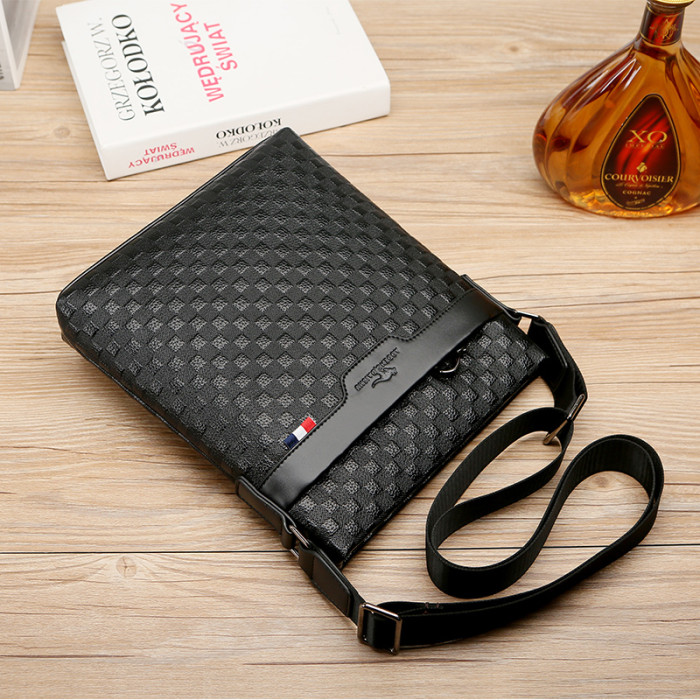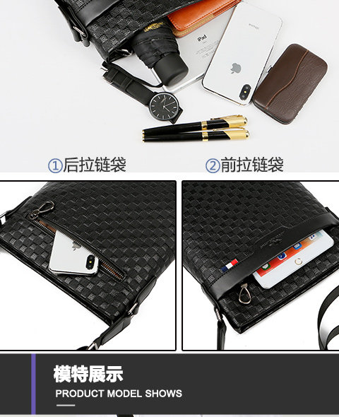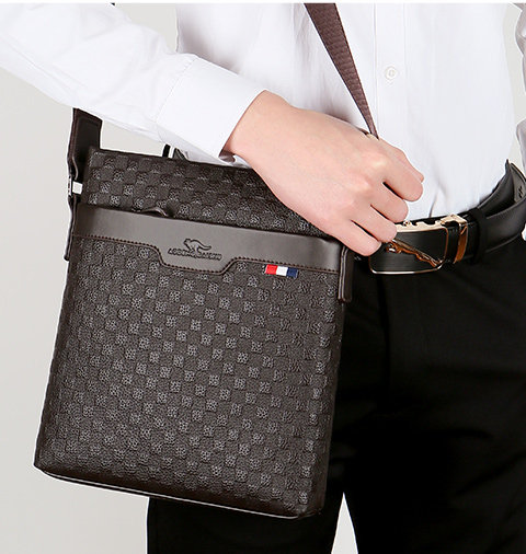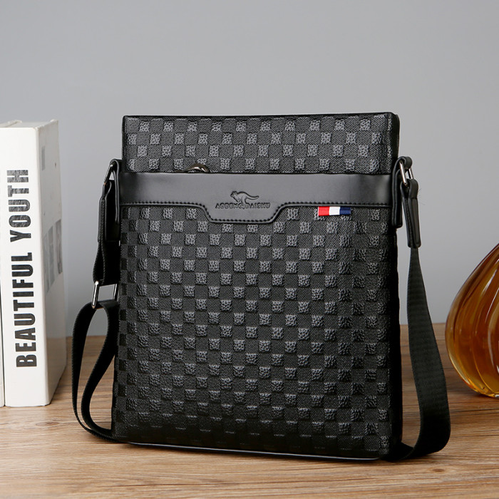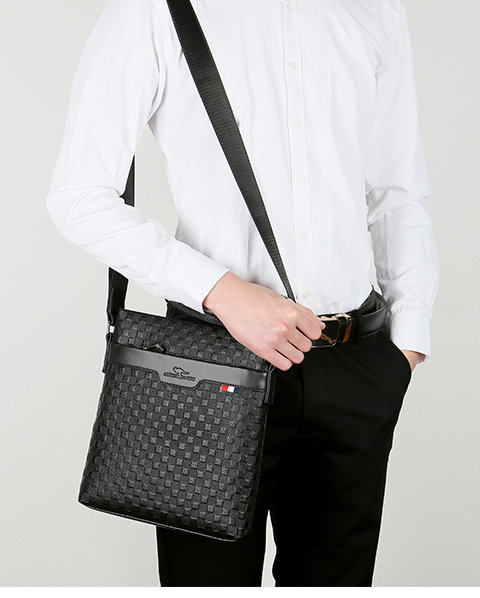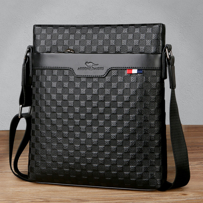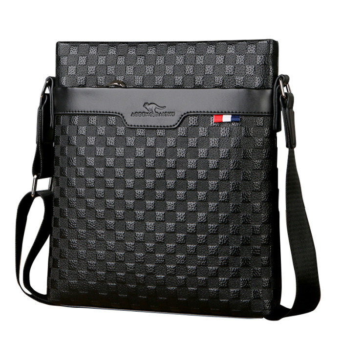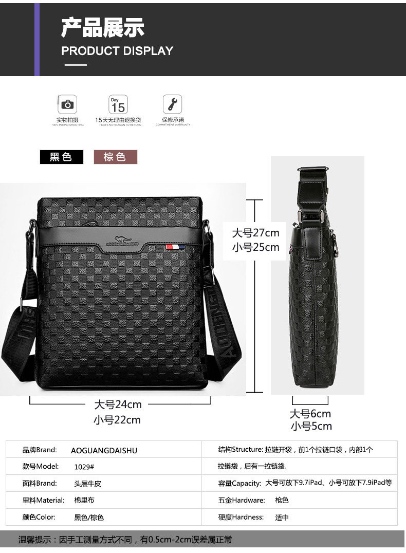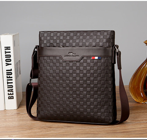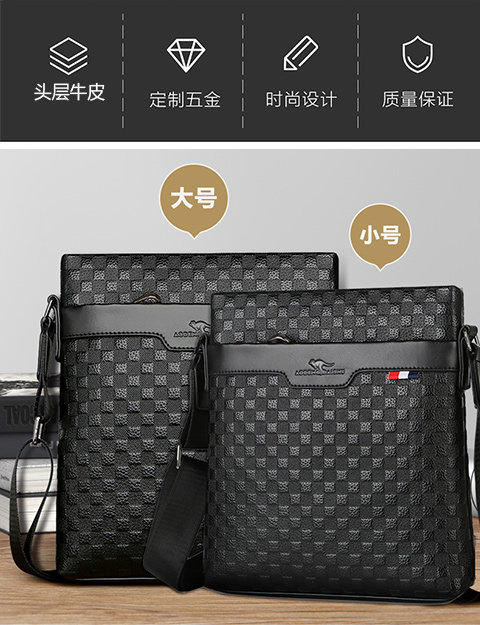 男包真皮商務單肩包頭層牛皮後後背包格子紋皮男士包包軟皮休閒斜後後背包