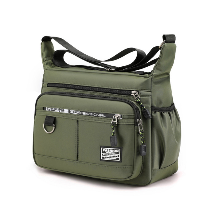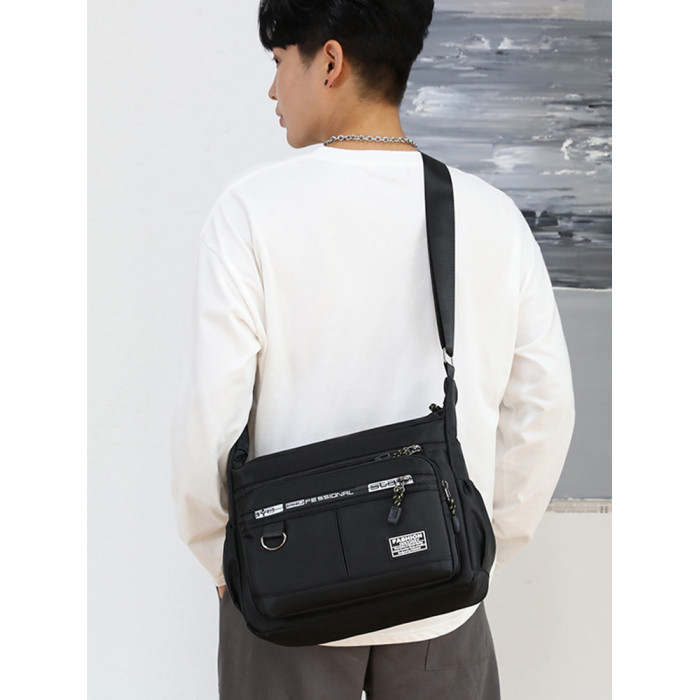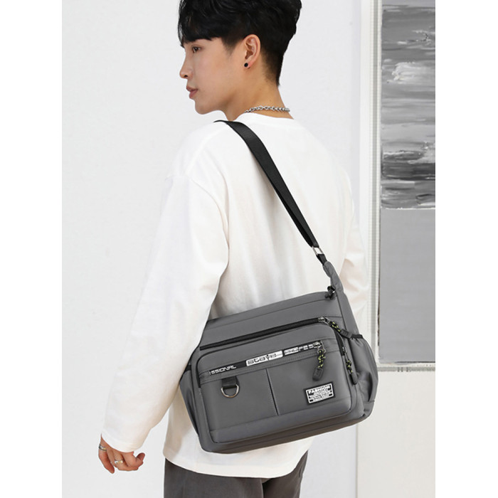 新款大容量單肩包防水耐磨後後背包多口袋做生意包商務休閒男士斜後後背包