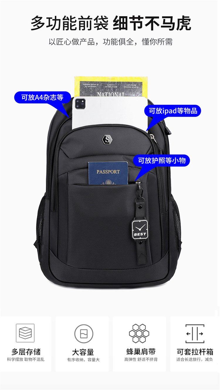 雙肩包商務大容量旅行包男士通勤電腦後後背包初中高中大學生書包